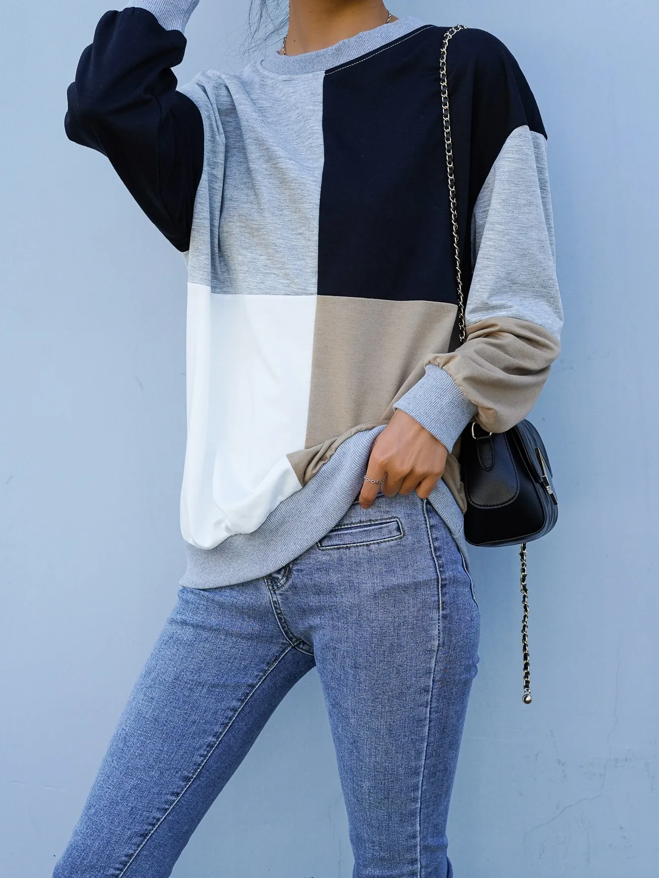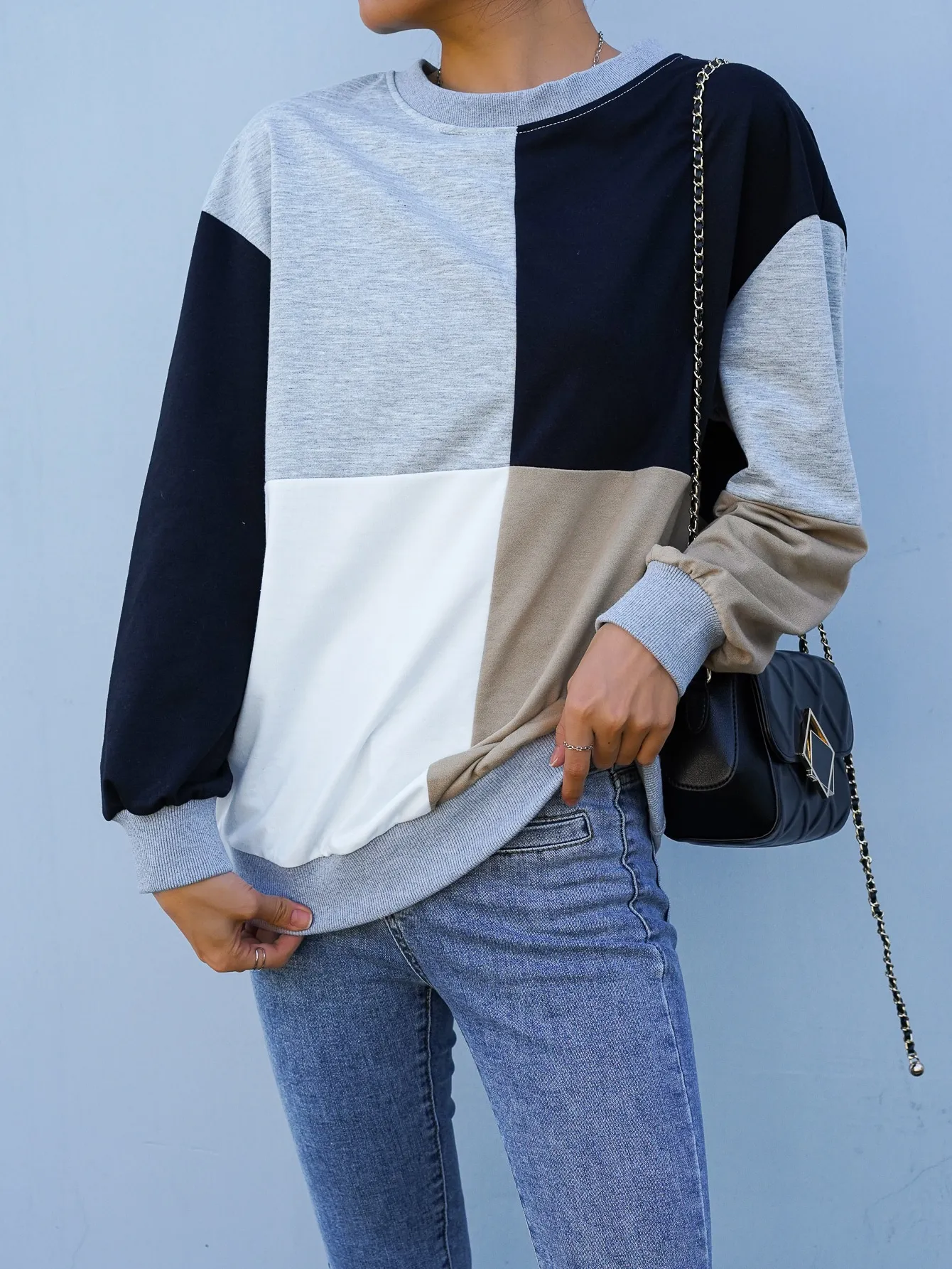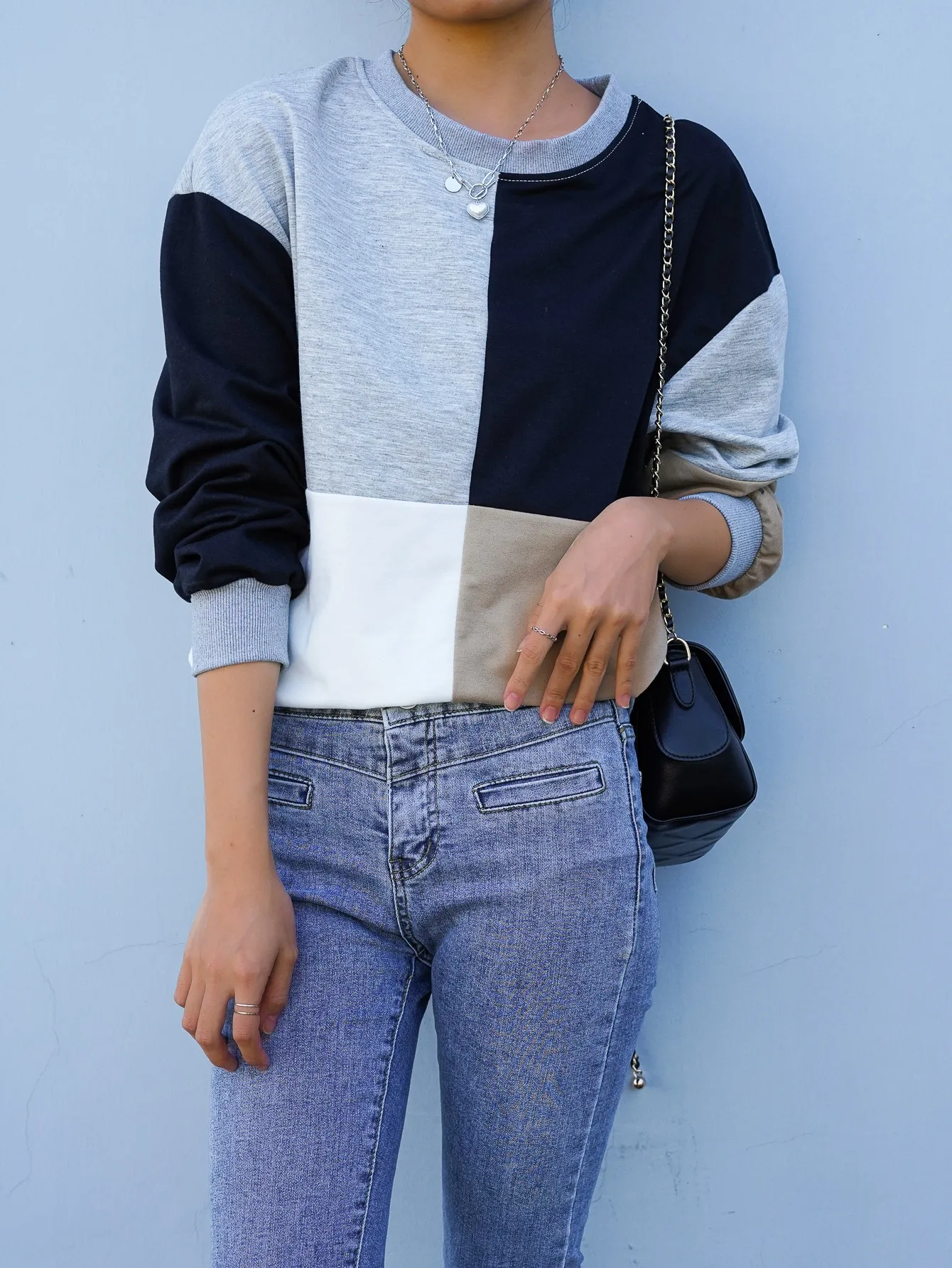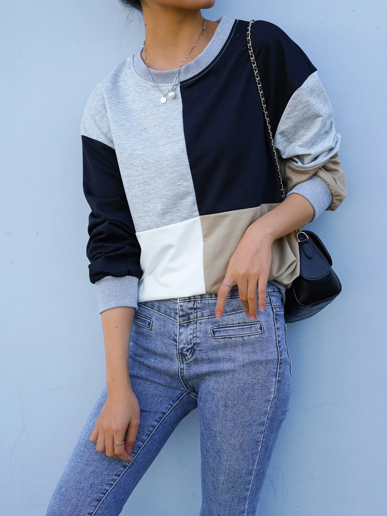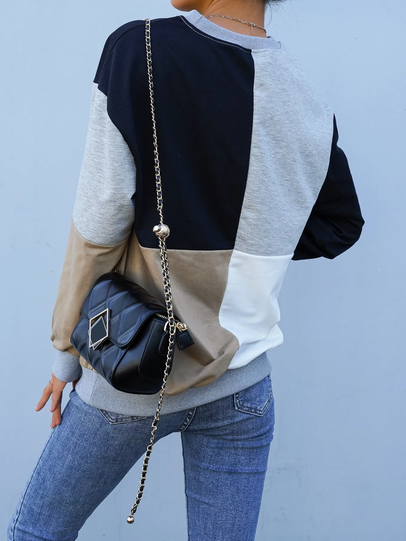 SMY Clasi Women’s Casual Style Round Neck Patchwork Mesh Embroidery Sweatshirt