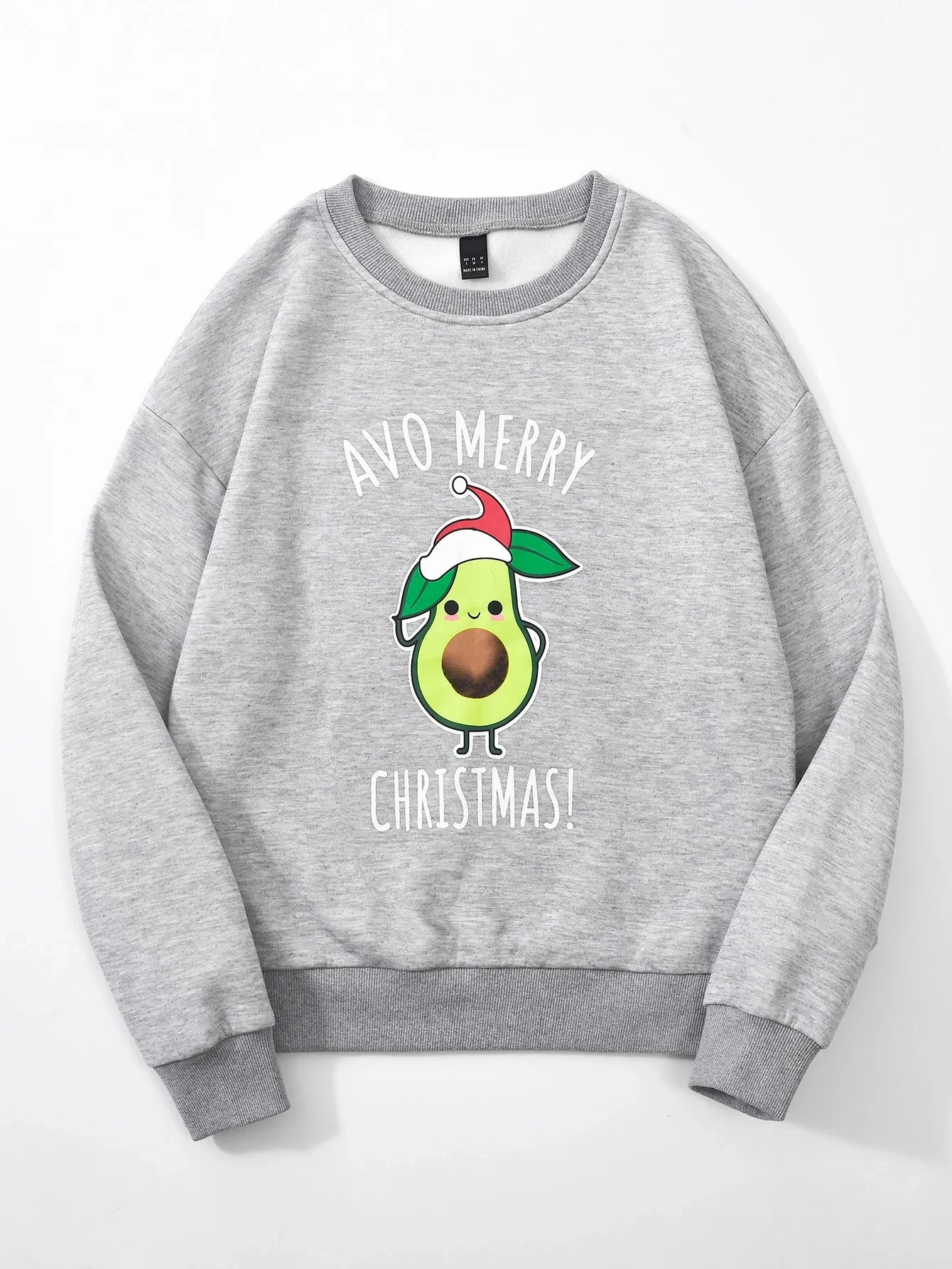 SMY Casual Round Neck Regular Printed Avocado Pattern Christmas Hoodie