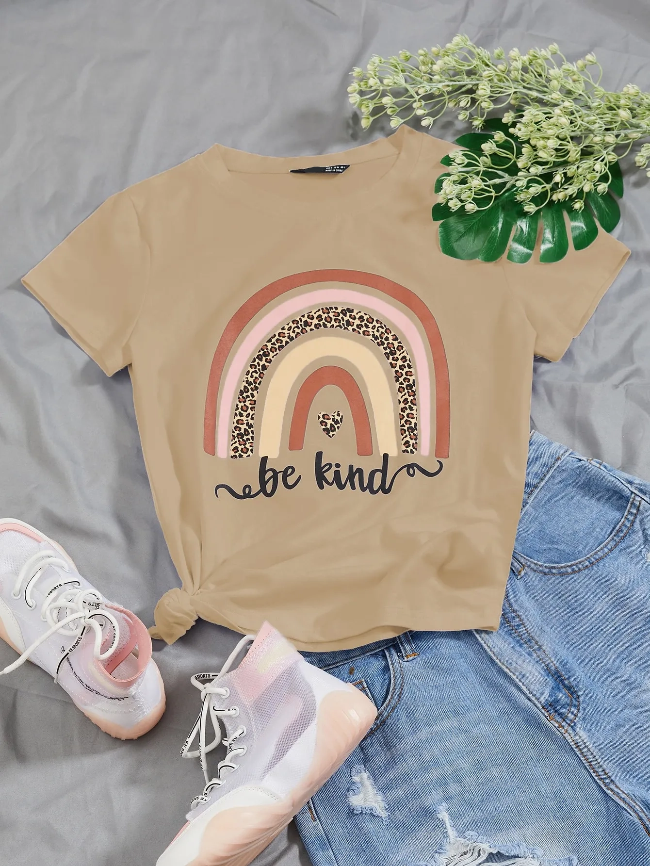 SMY Casual Round Wild Flower Pattern Neck Simple Pattern Printed T-Shirt