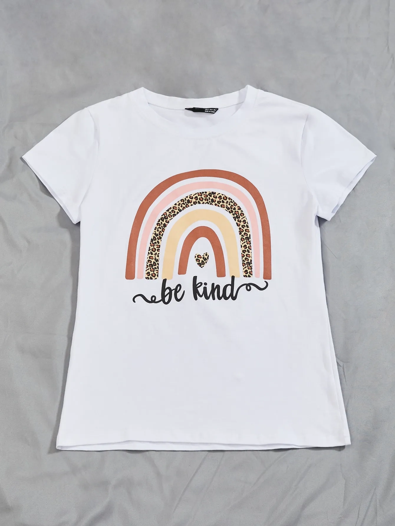 SMY Casual Round Neck Simple Pattern Printed BE KIND T-Shirt