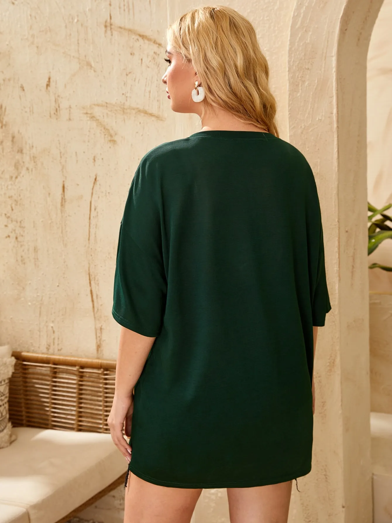 SMY Casual Round Neck Simple Style Plus Size T-Shirt