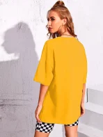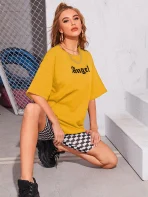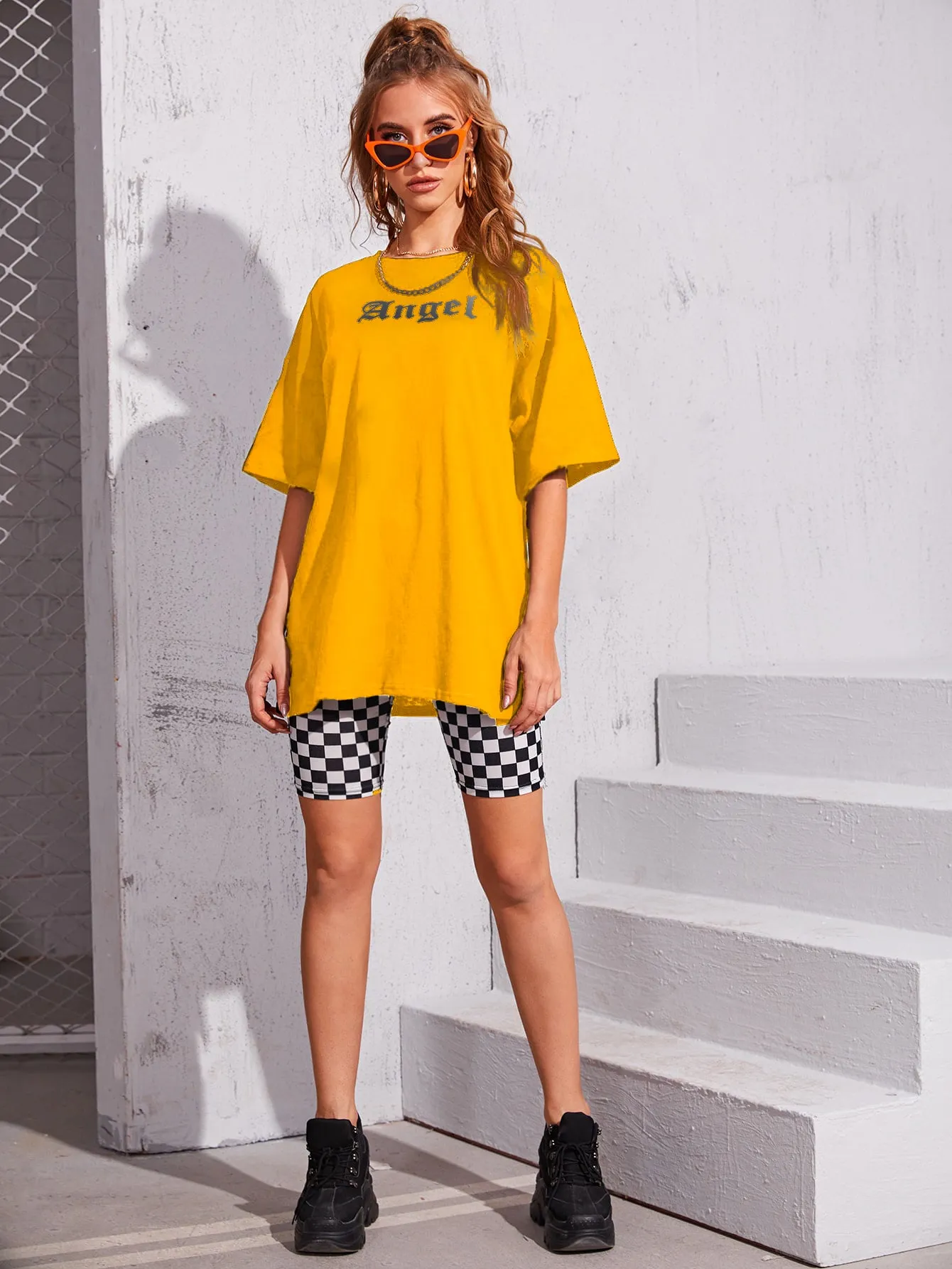 SMY Casual Round Neck Angel Letter Print T-Shirt