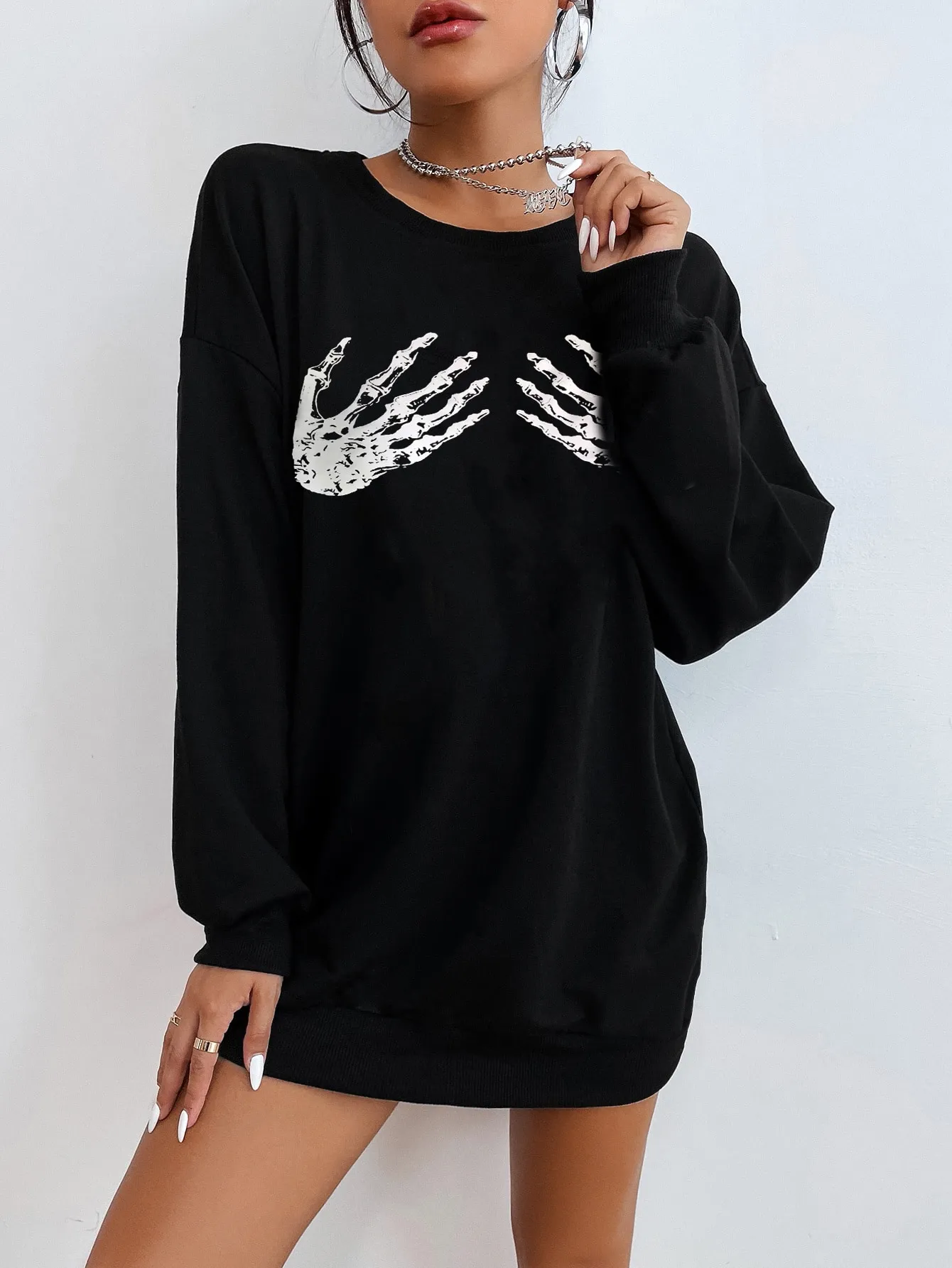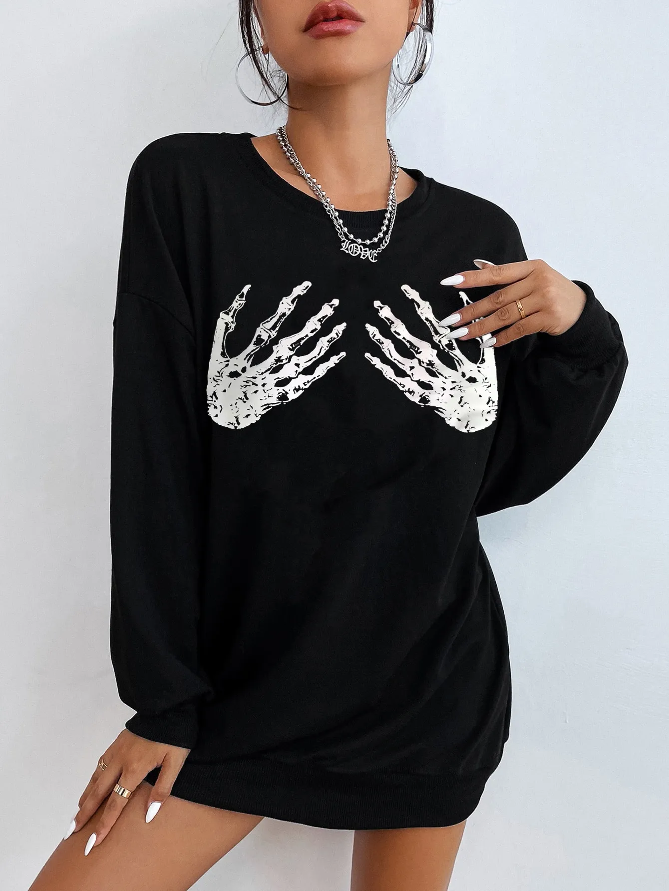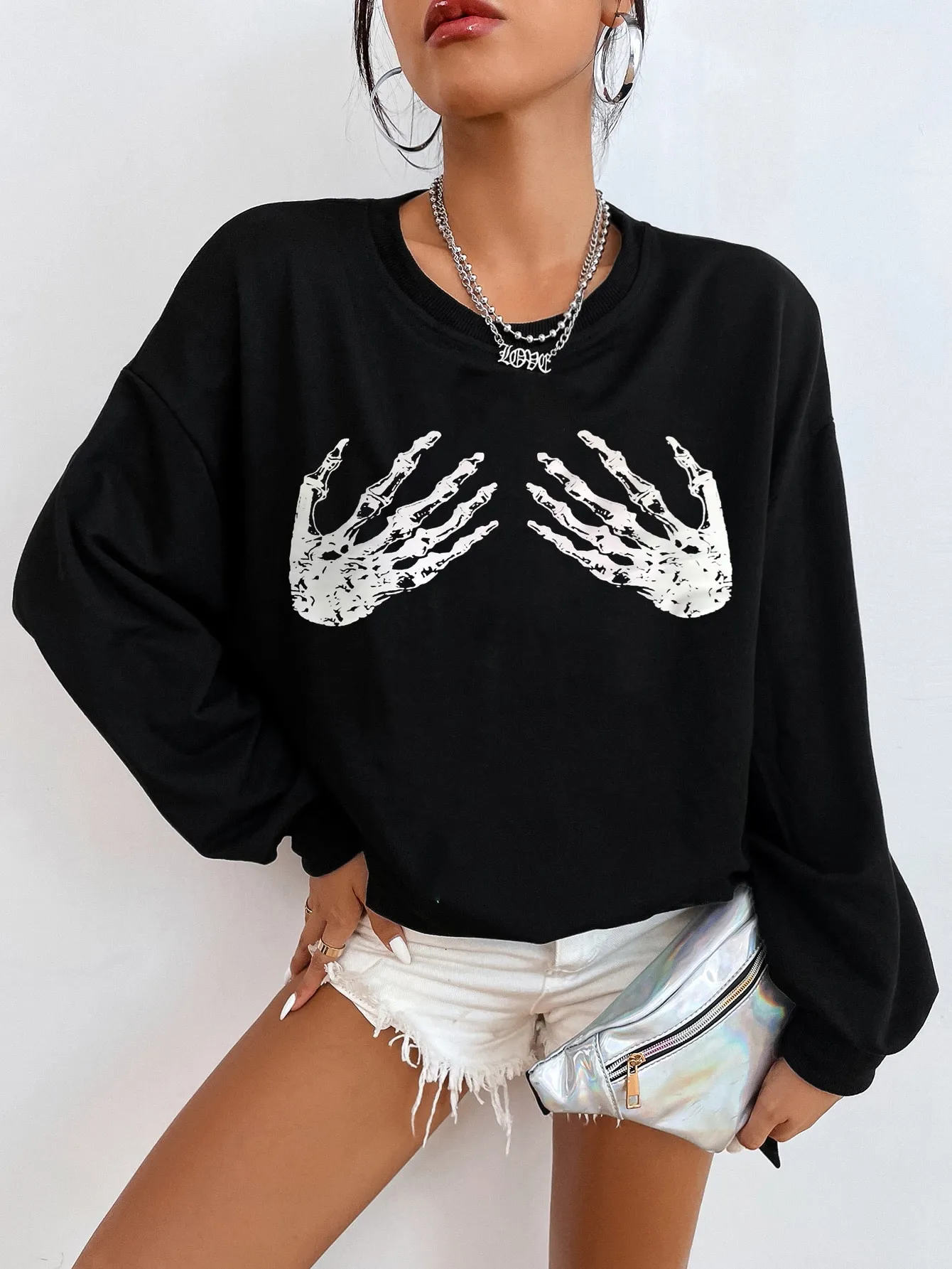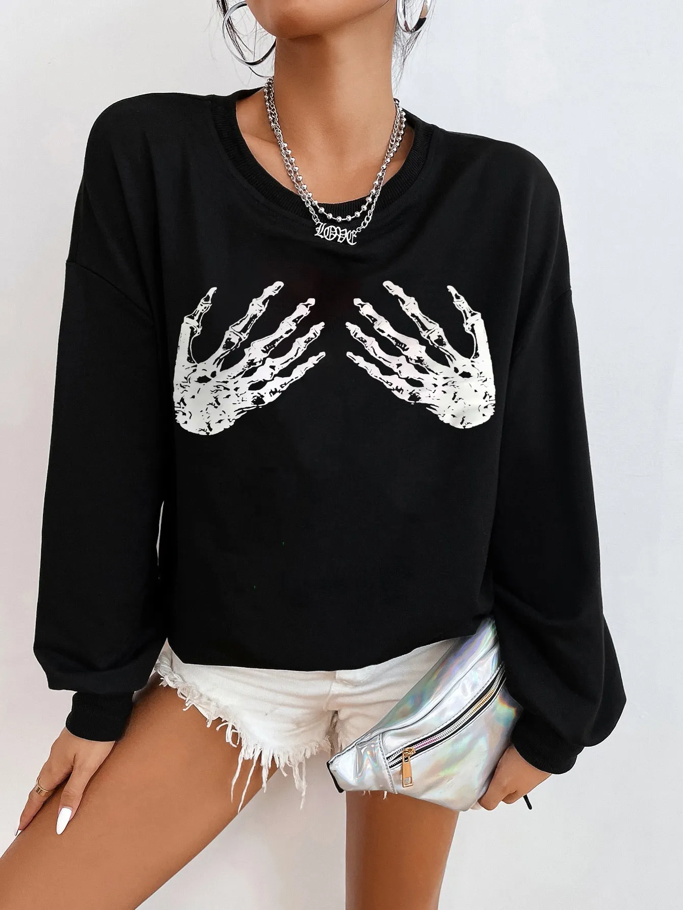 SMY Casual Skeleton Hand Pattern Round Neck Long Hoodie