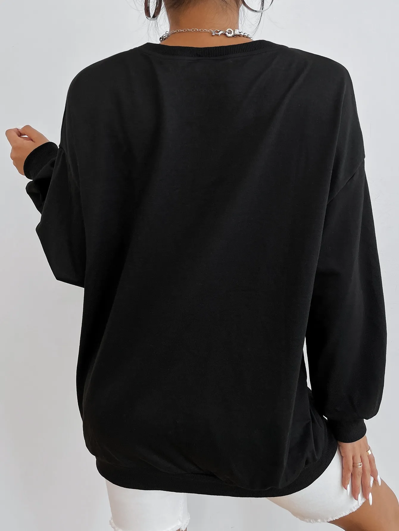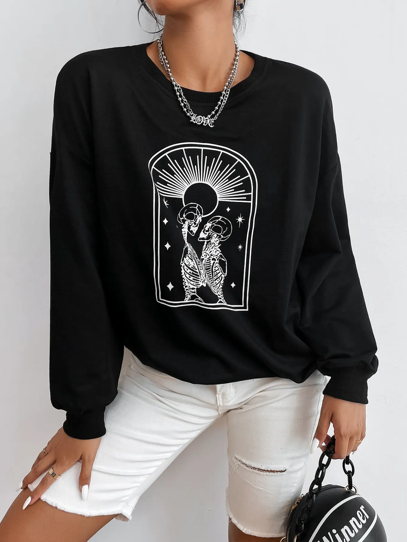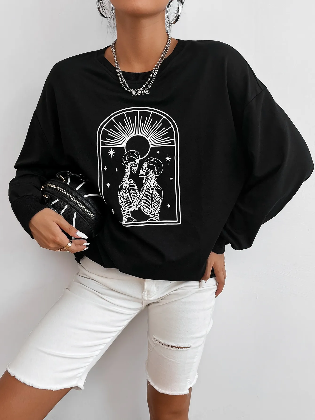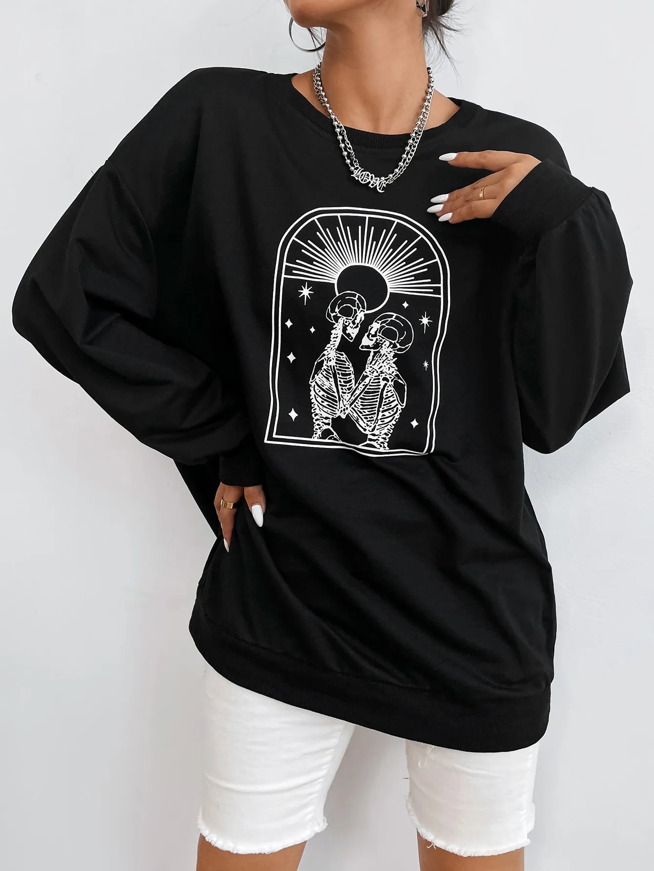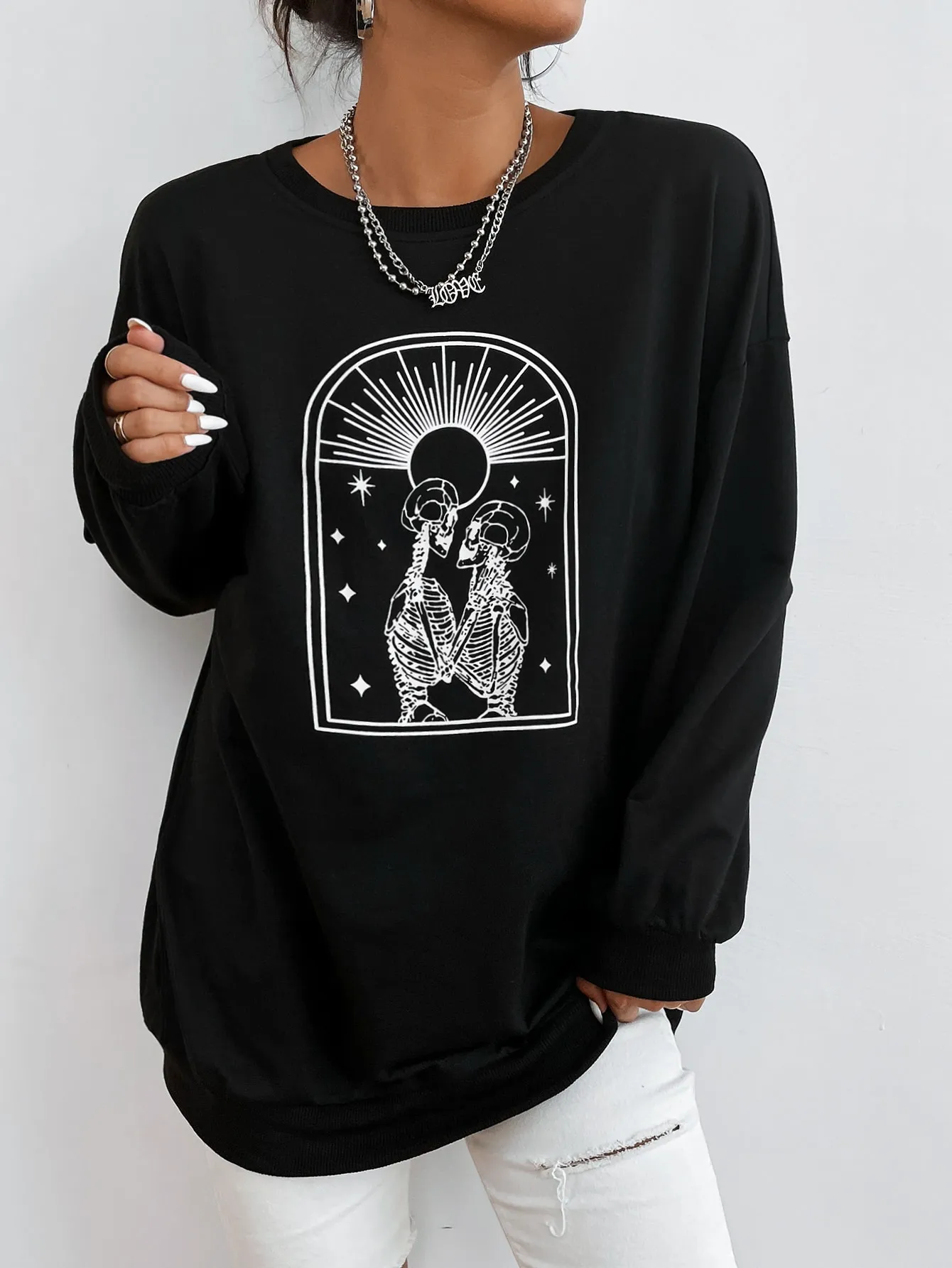 SMY Casual Skeleton Pattern Round Neck Long Hoodie