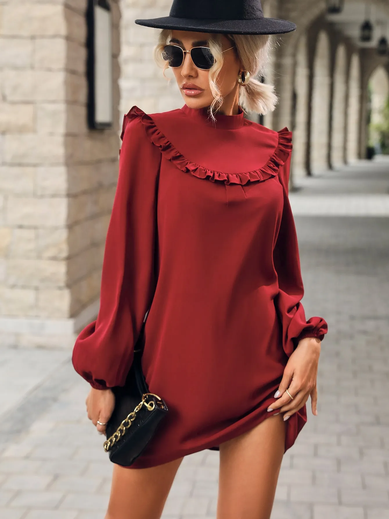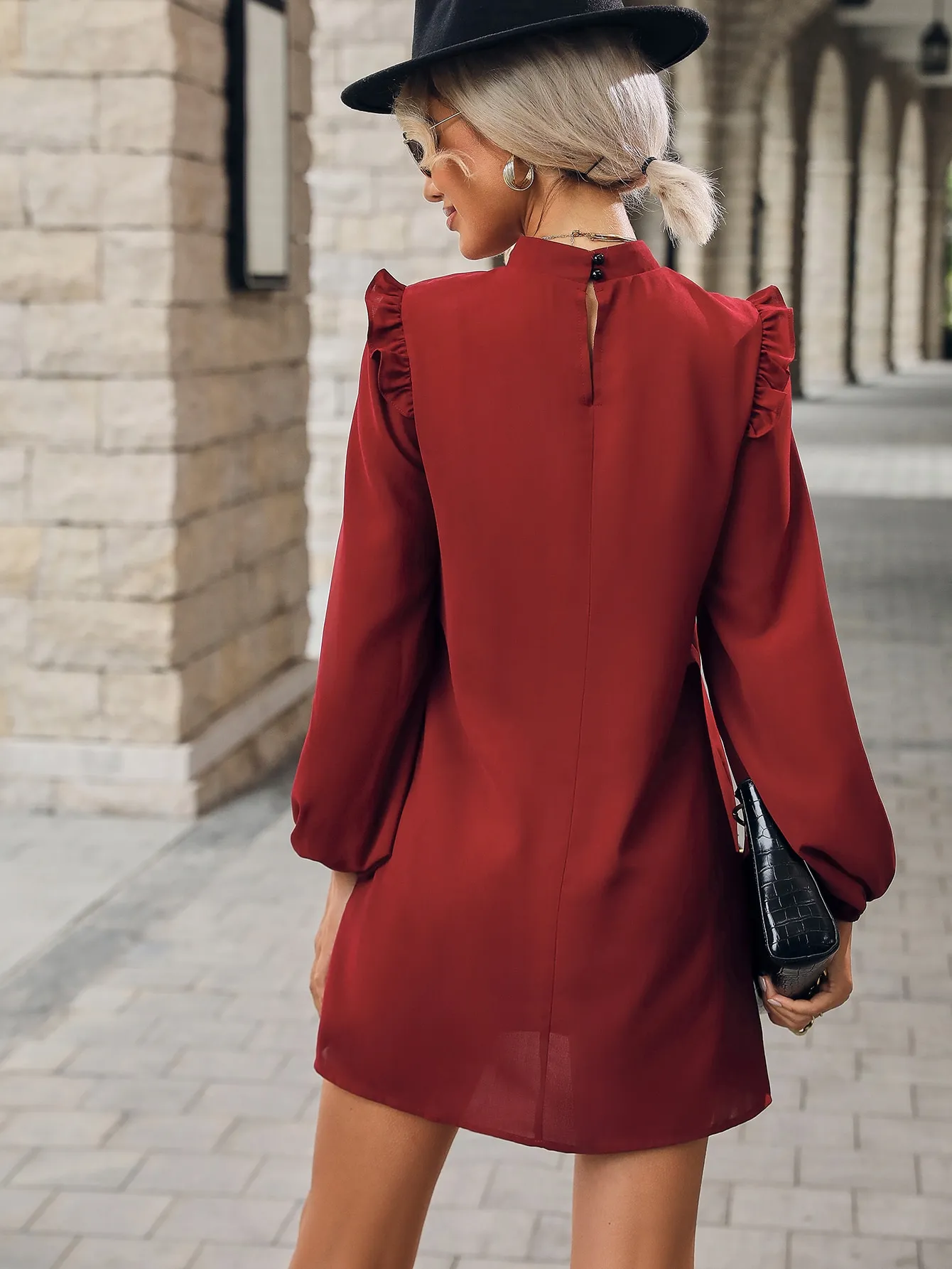 SMY Casual Stand Up Collar Long Sleeved Dress