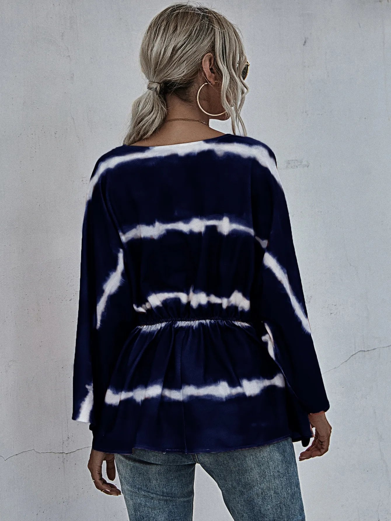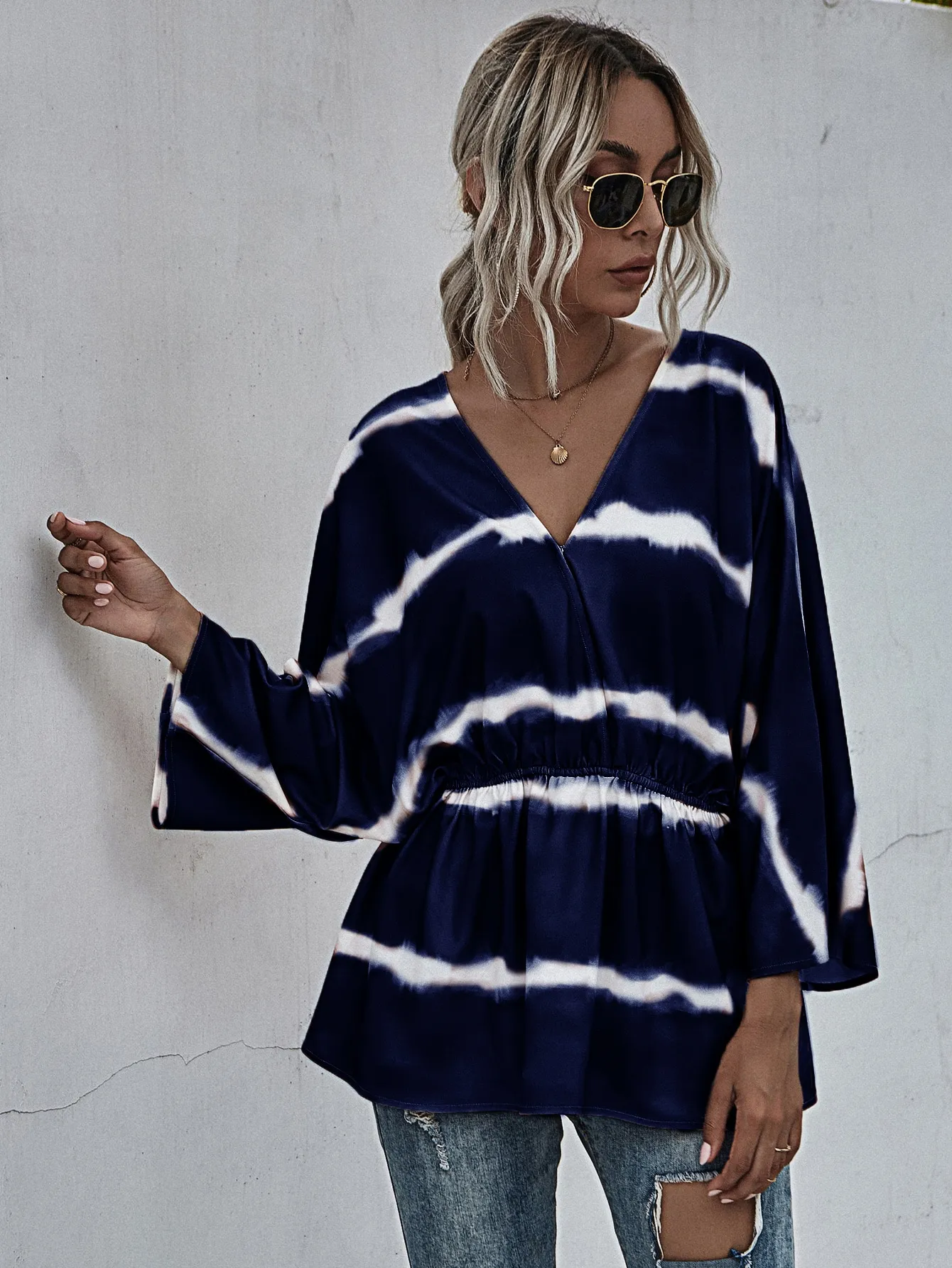 SMY Women’s Solid Color Crossover V-Neck Long Sleeve Pleated Casual T-Shirt