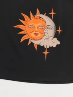 SMY Casual Sun and Moon Pattern Round Neck Vest