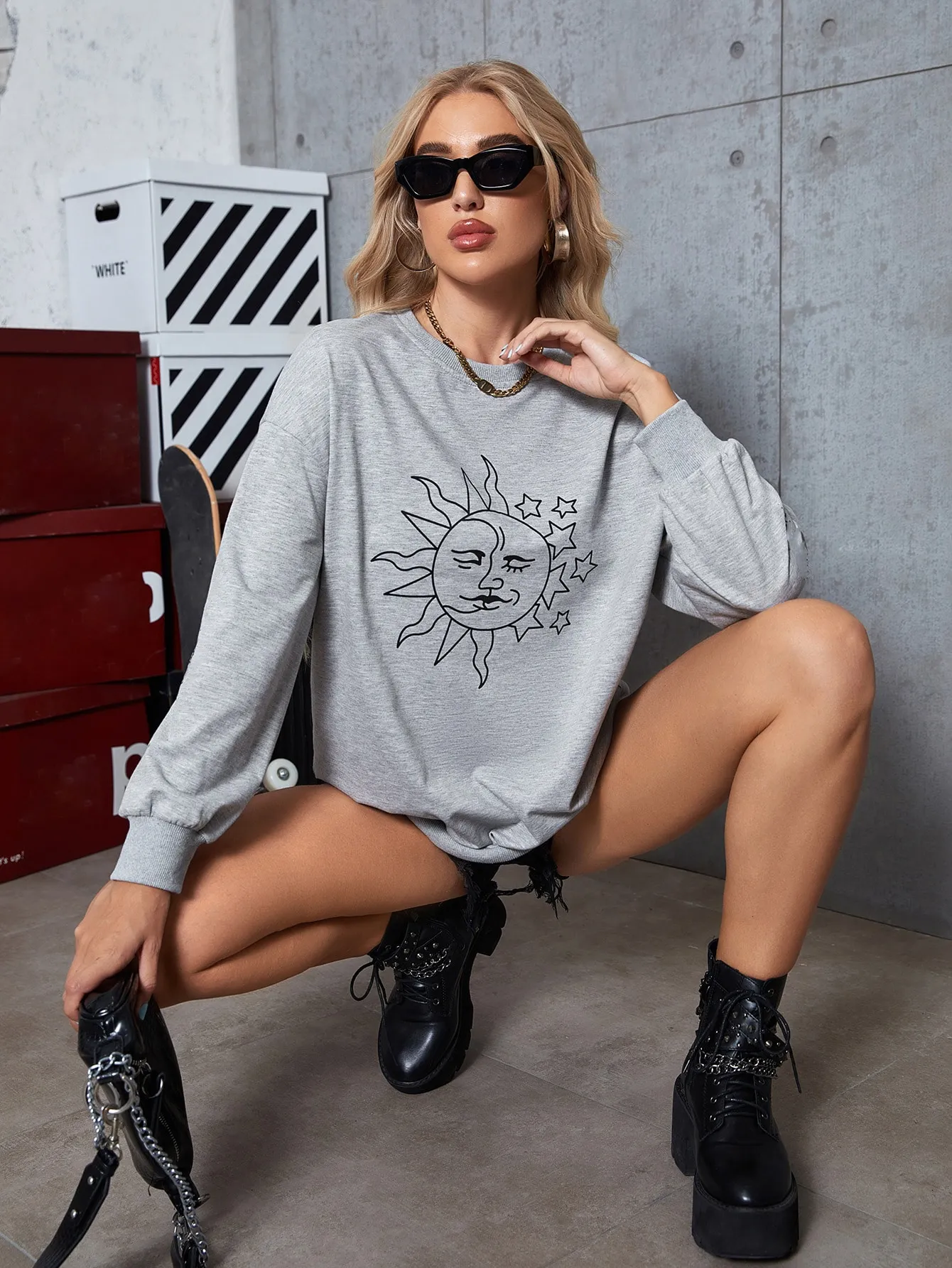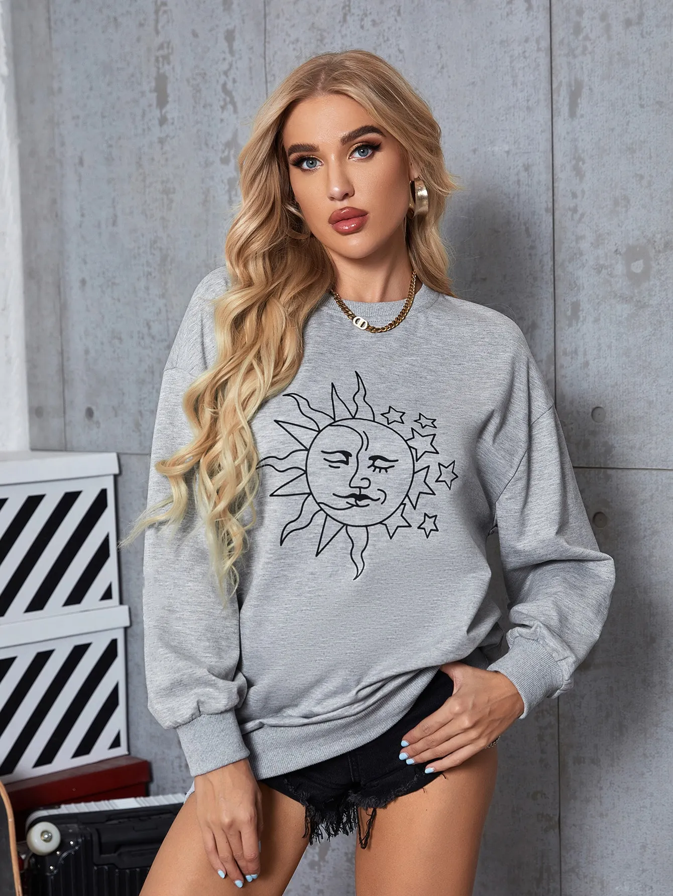 SMY Casual Sun Pattern Round Neck Long Hoodie