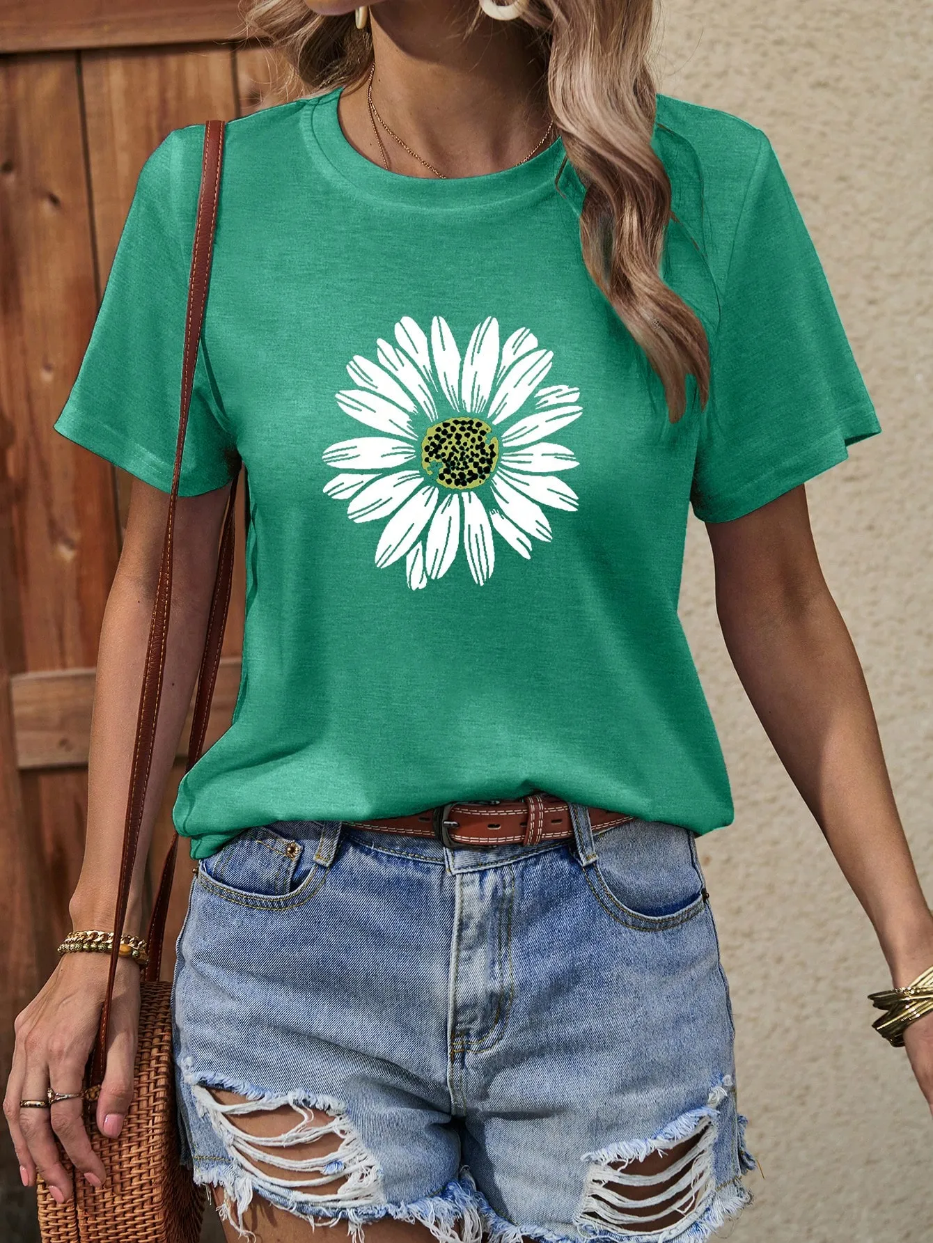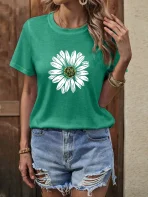 SMY Casual Sunflower Pattern Trend Small Round Neck T-Shirt