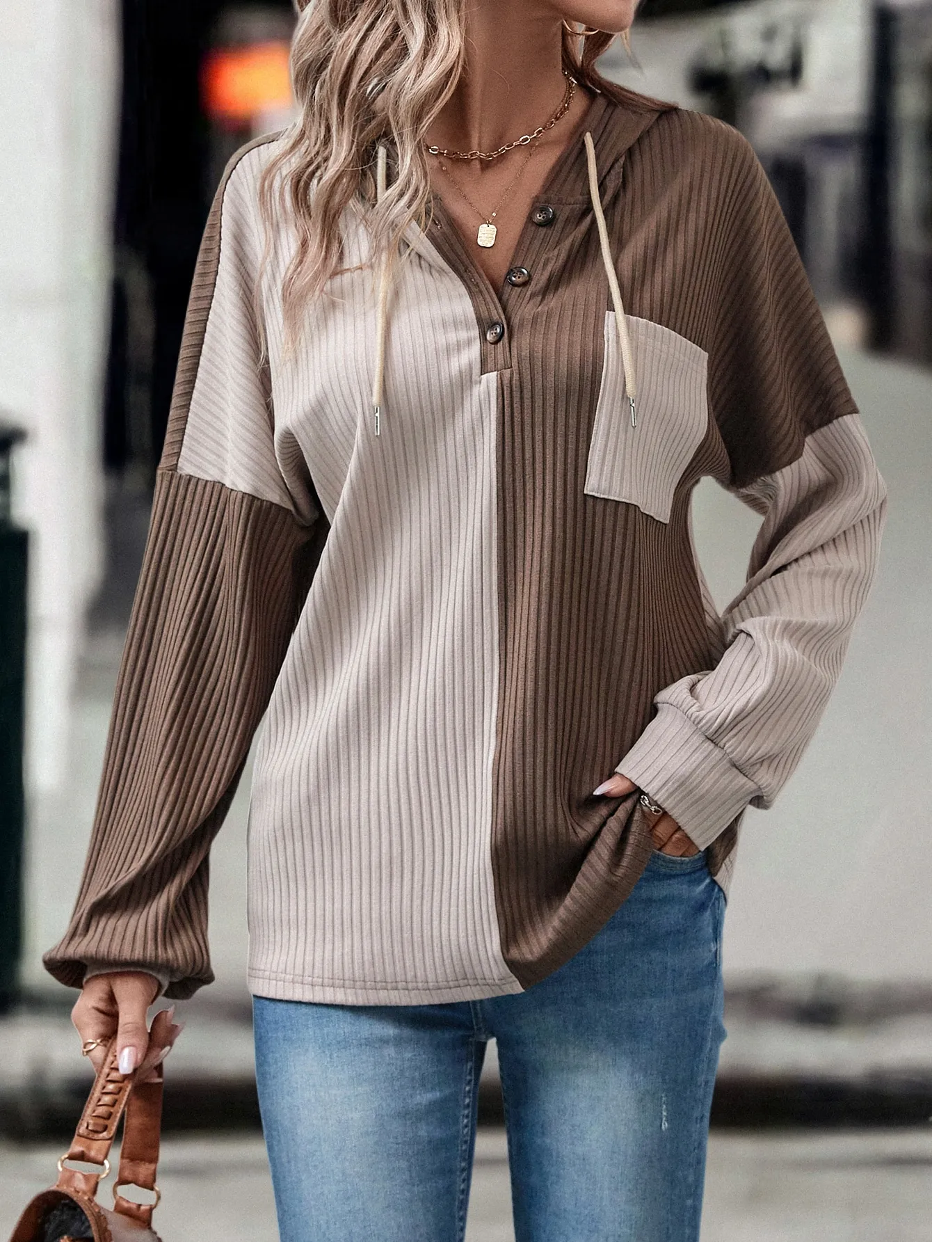 SMY Half Button Kangaroo Pocket Drop Shoulder Drawstring Hoodie