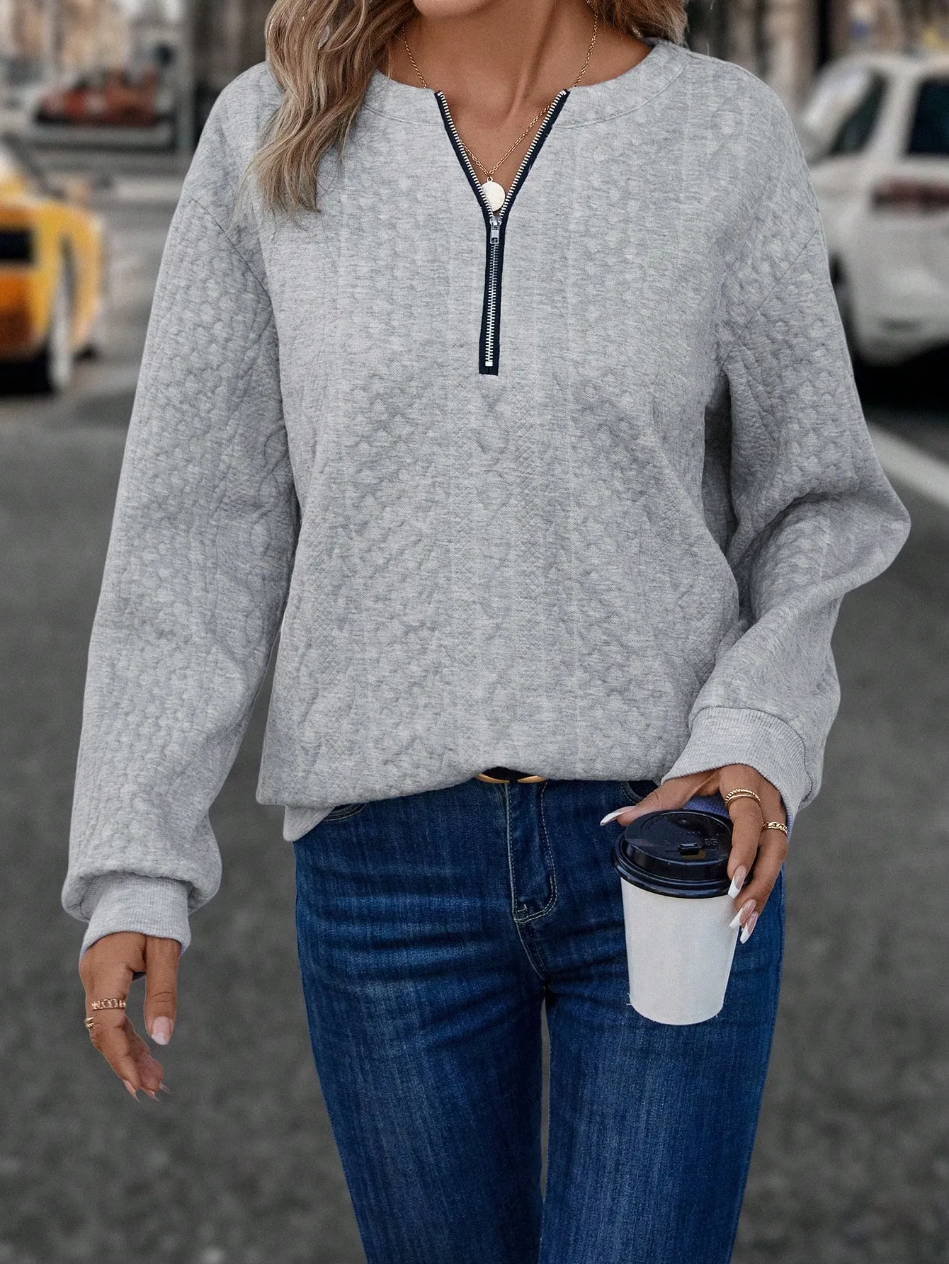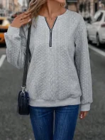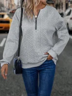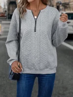 SMY Casual Trend Front Zipper Small Round Neck Long Sleeved Sweatshirt
