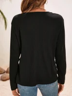 SMY Women’s Solid Color Crossover V-Neck Long Sleeve Pleated Casual T-Shirt
