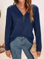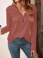 SMY Casual Trend Half Zip Small V-Neck Long Sleeved T-Shirt