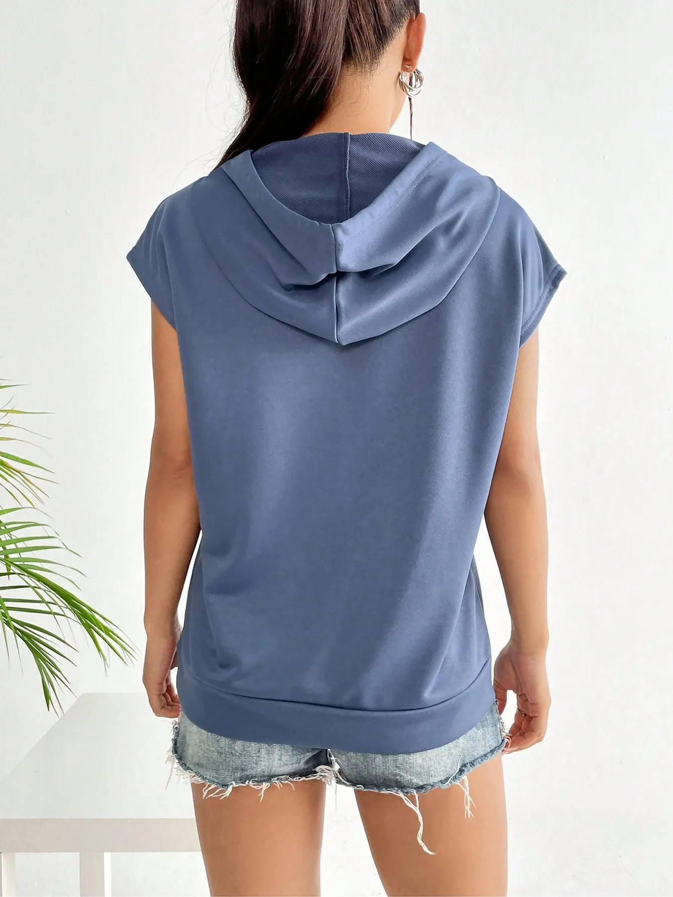 SMY Half Button Kangaroo Pocket Drop Shoulder Drawstring Hoodie