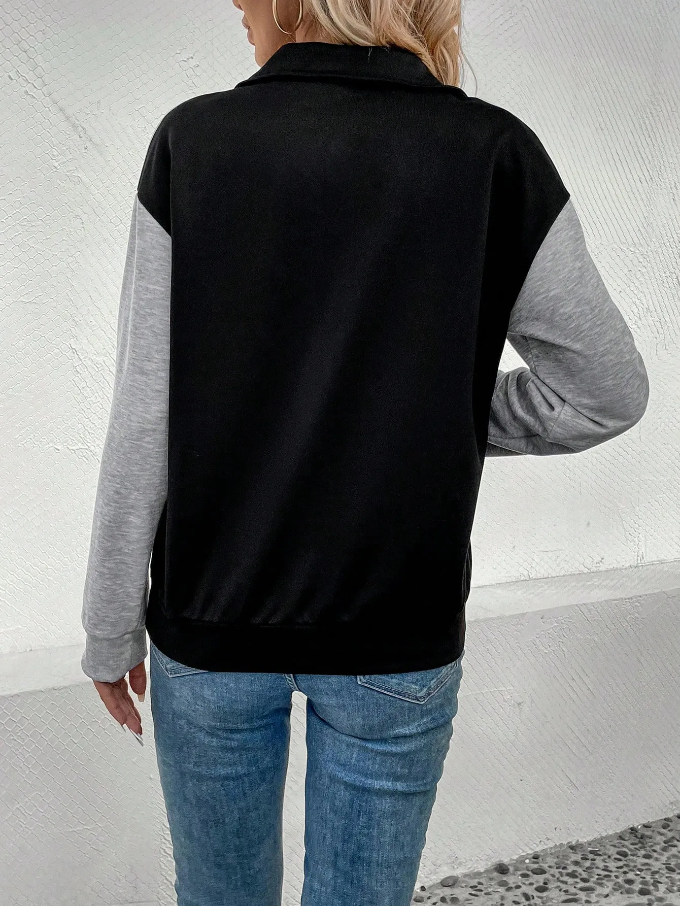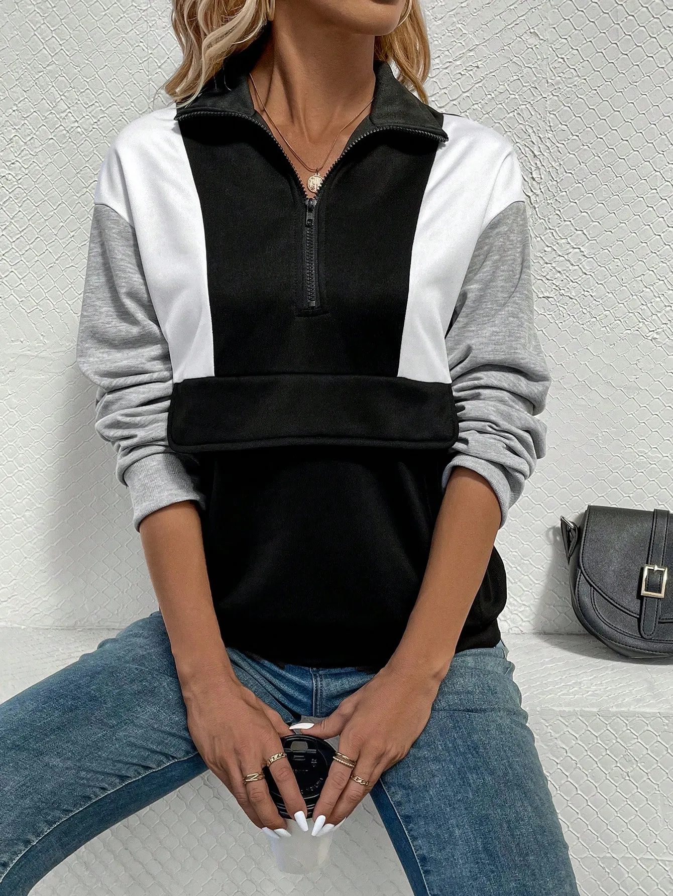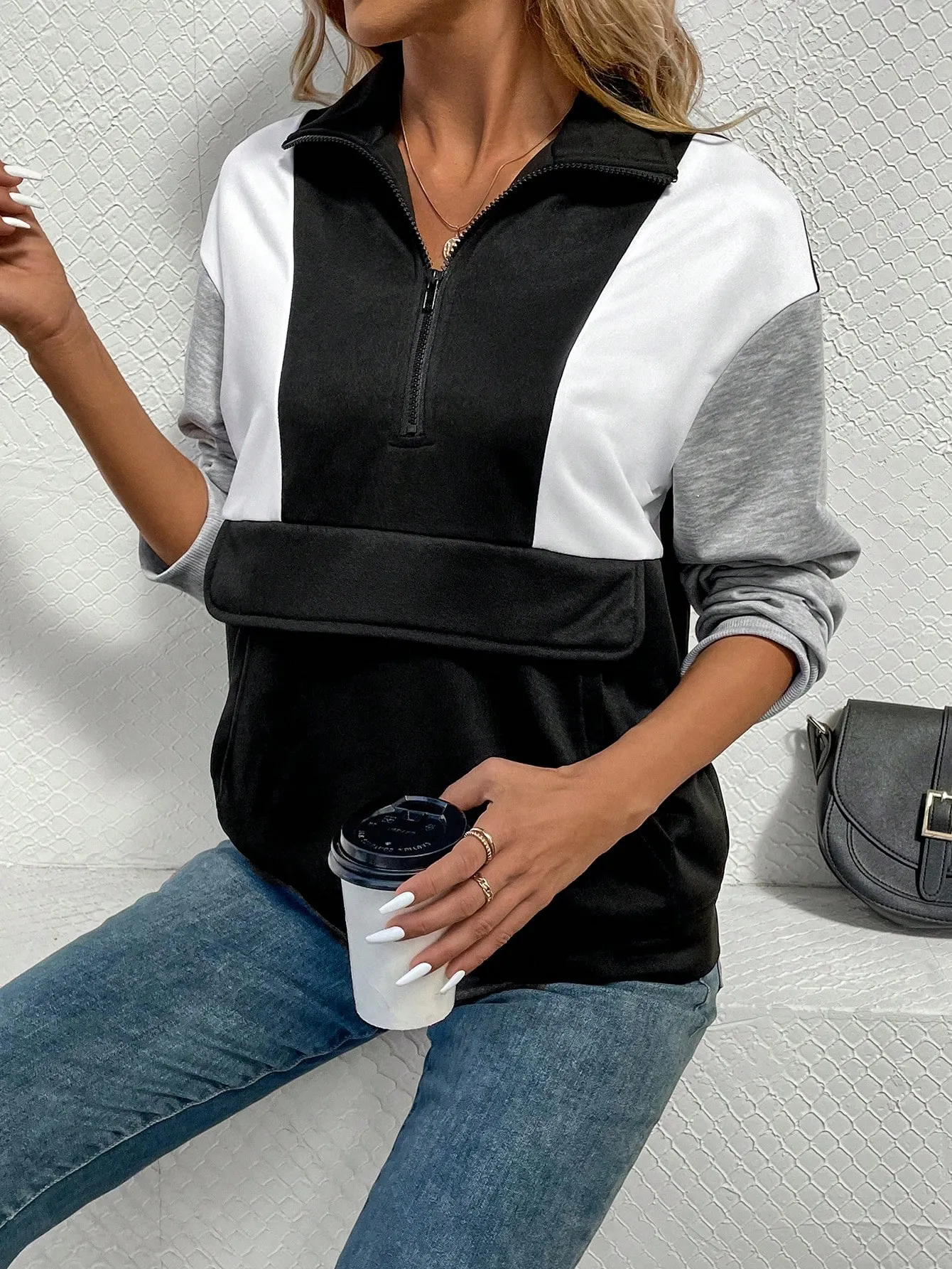 SMY Casual Trend Lapel Long Sleeved Half Zip Sweatshirt