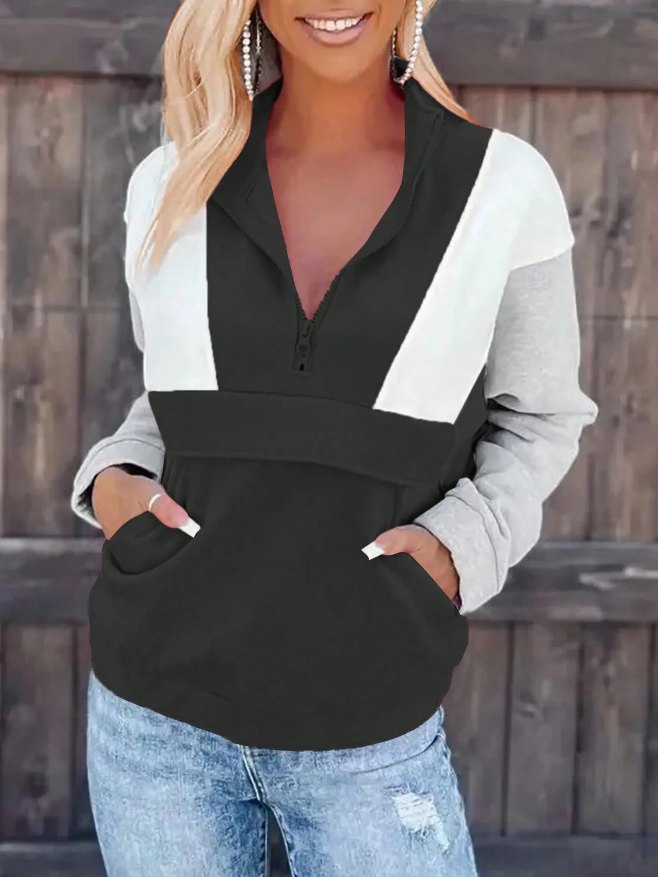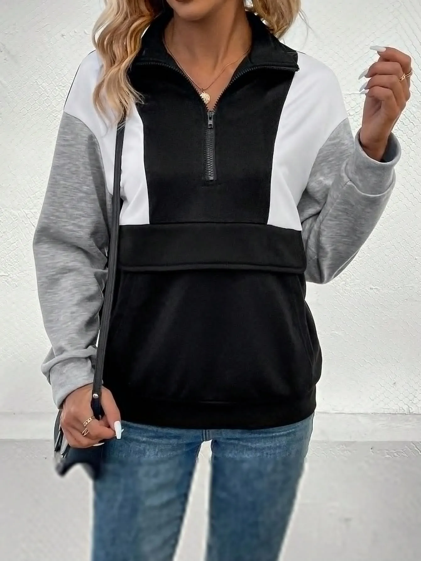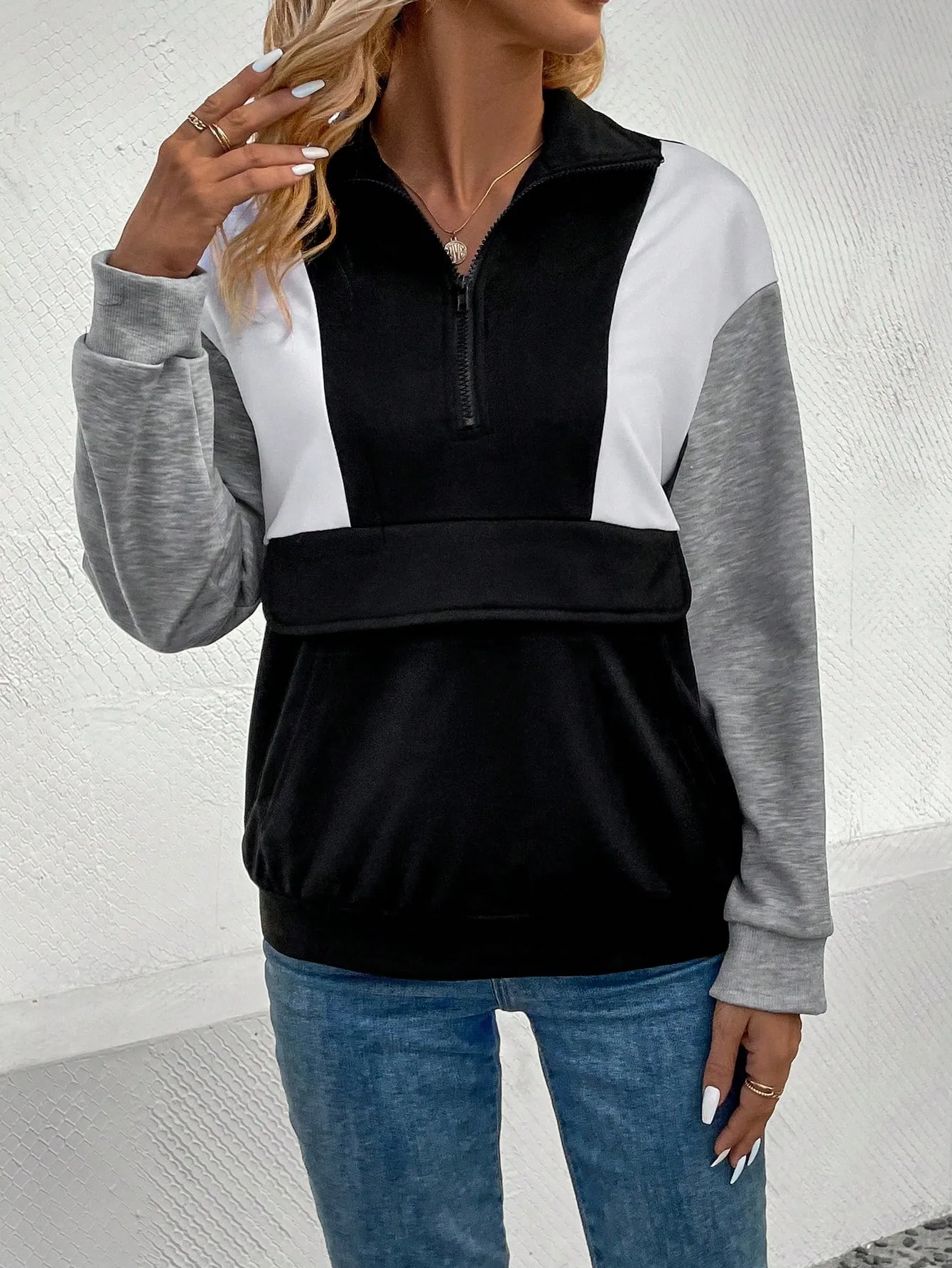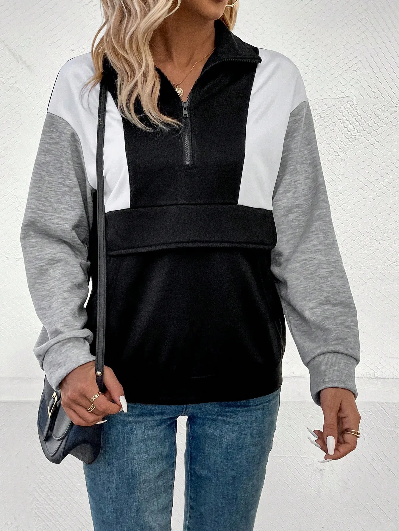 SMY Casual Trend Lapel Long Sleeved Half Zip Sweatshirt