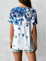 SMY Casual Trend Small Round Floral Print Neck T-Shirt