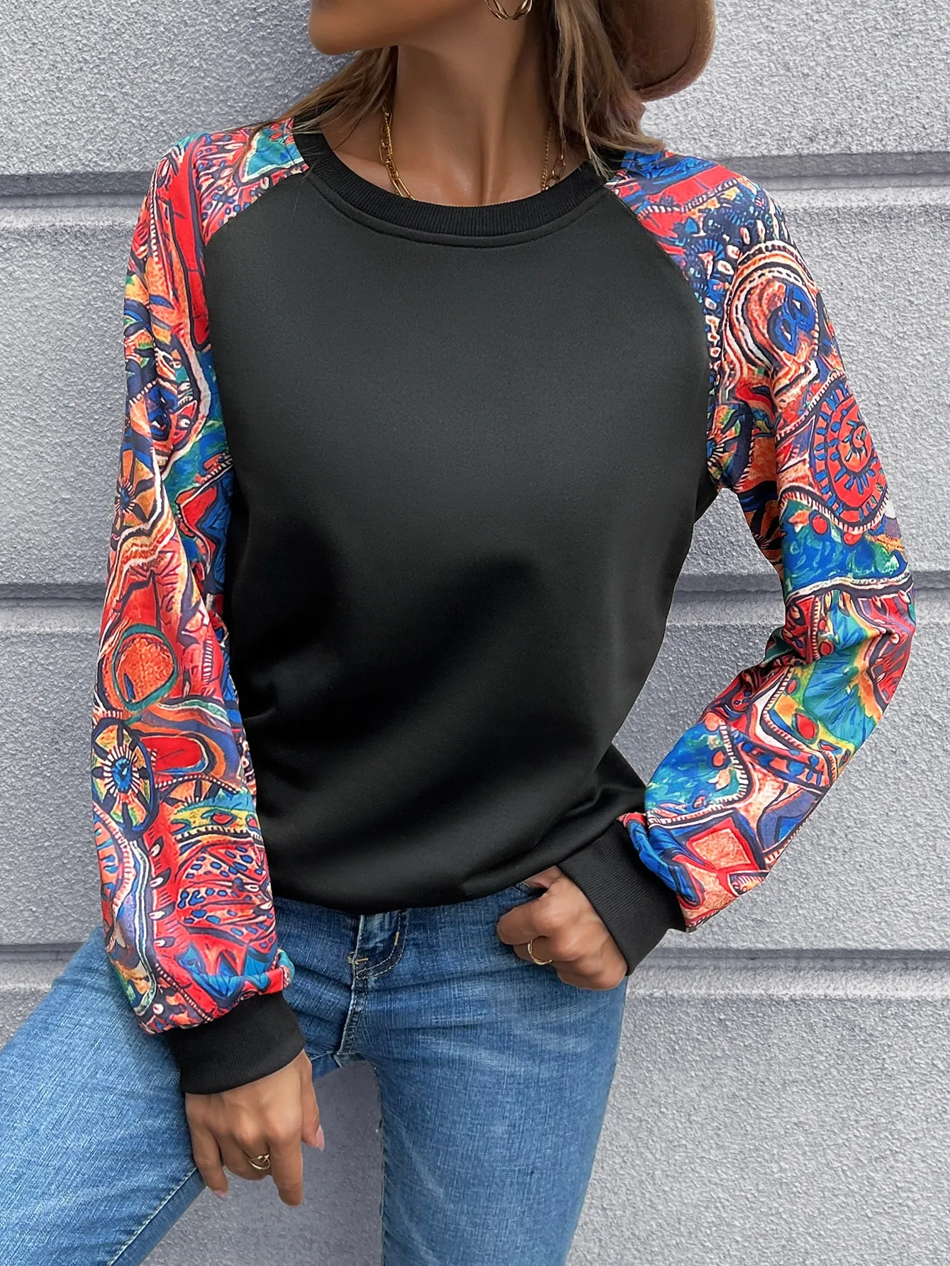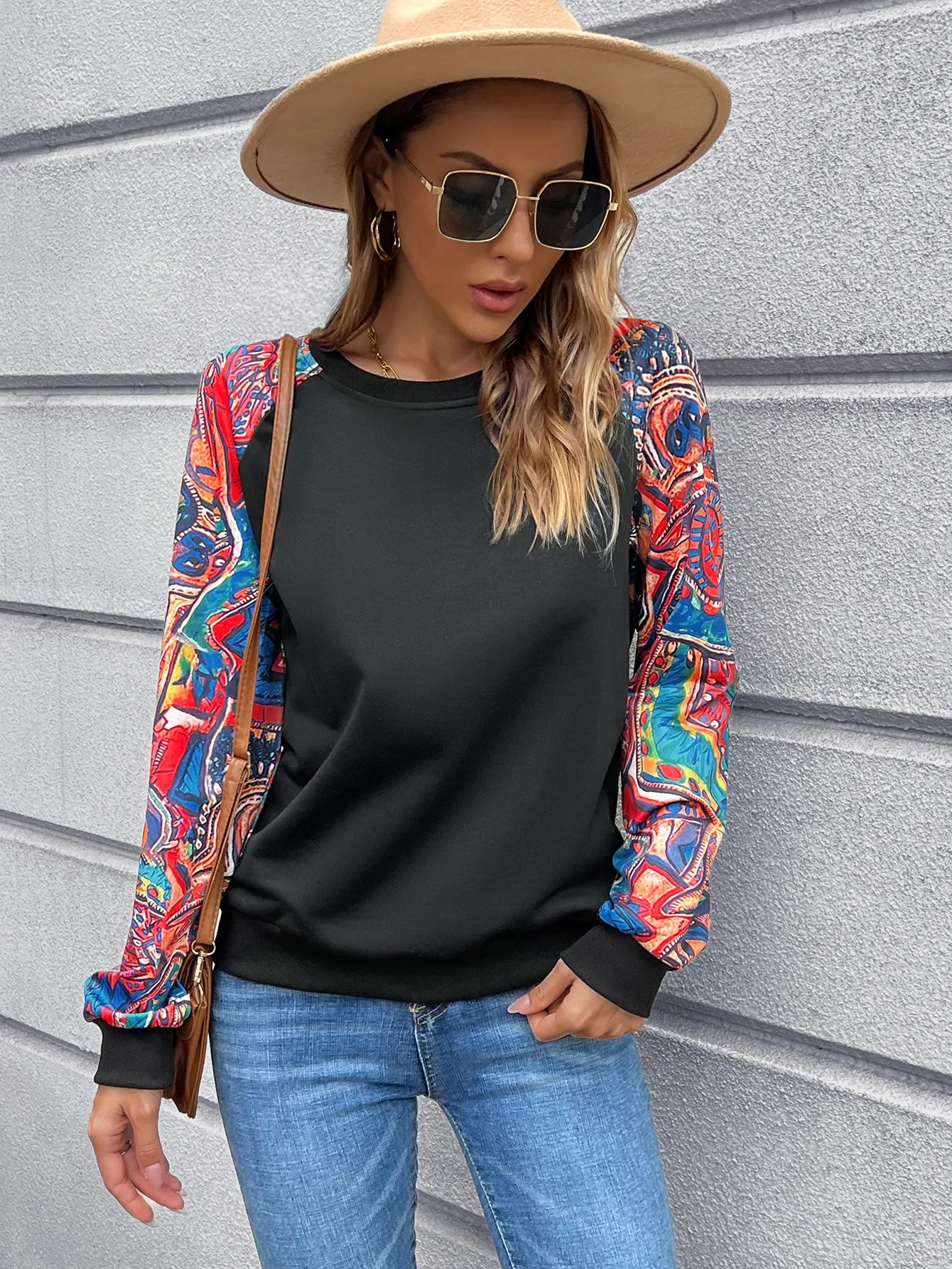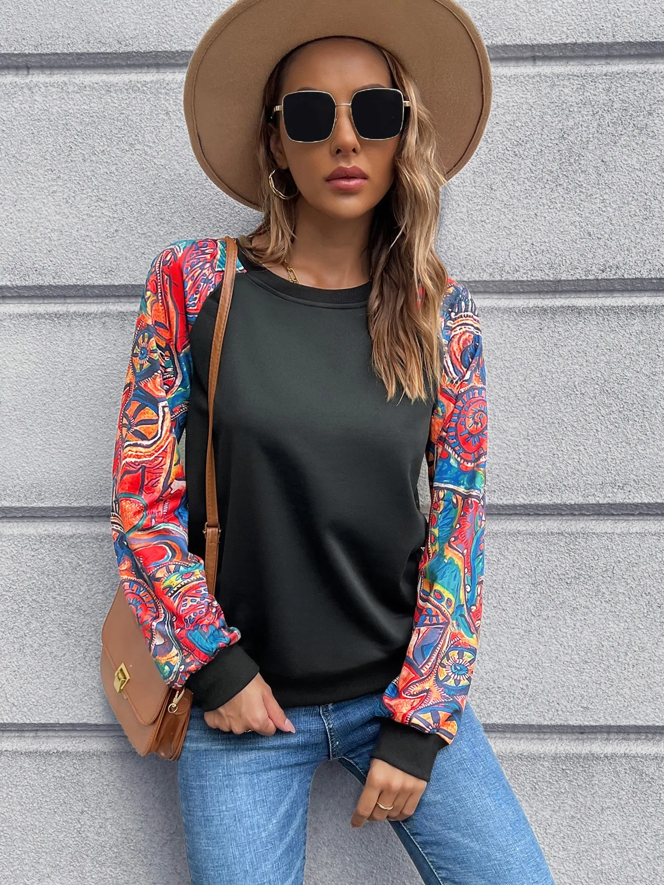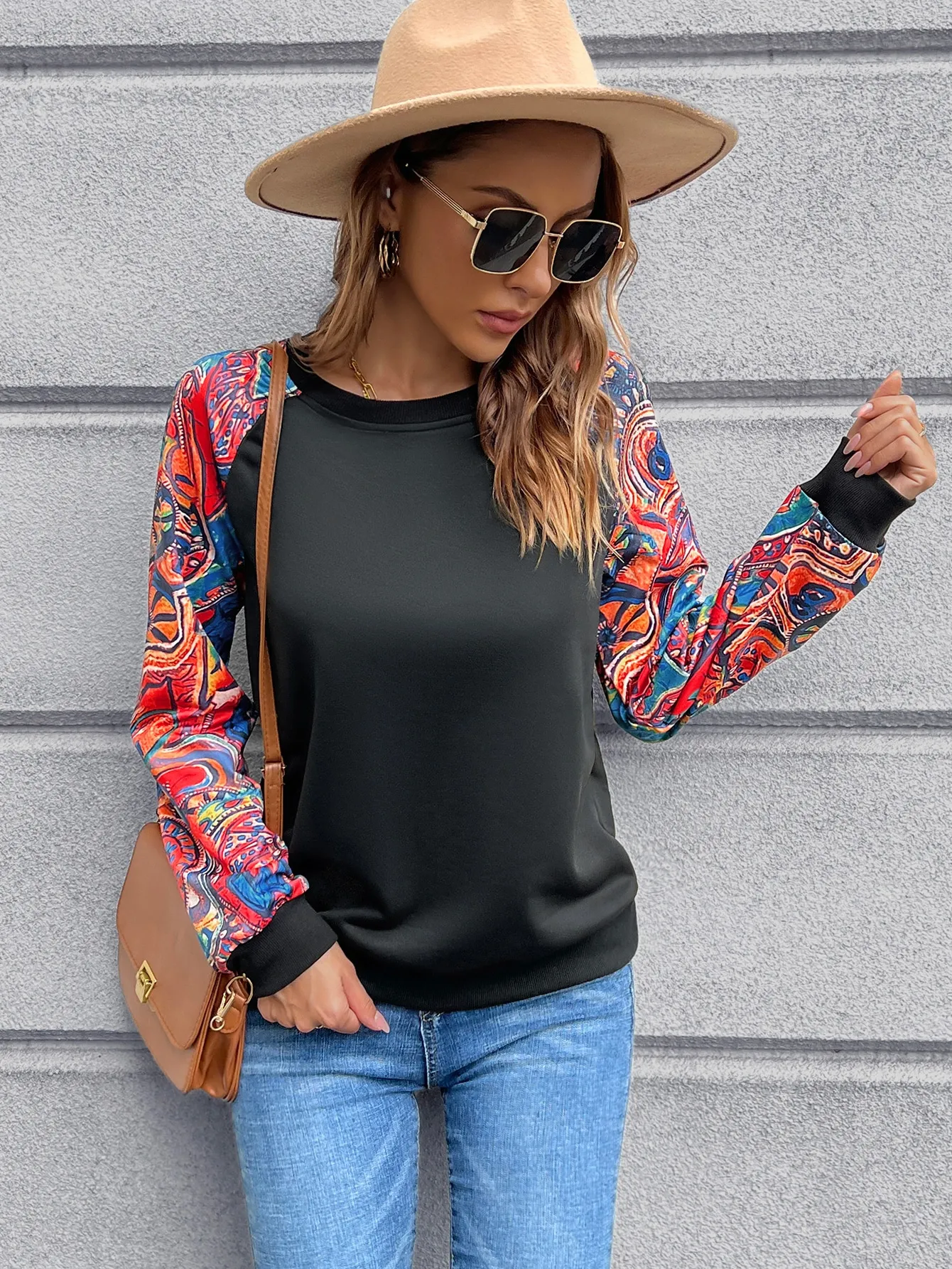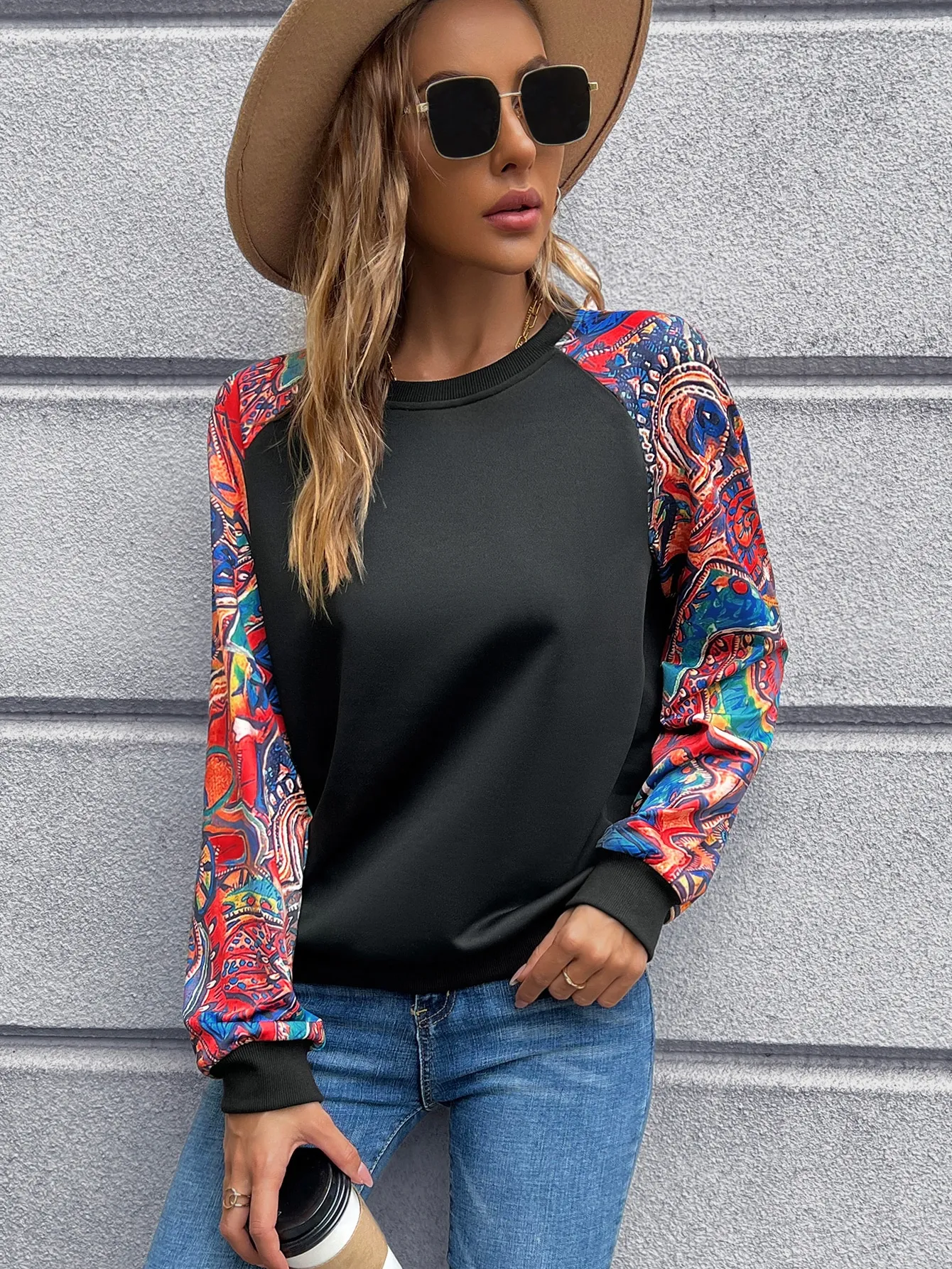 SMY Women’s Casual Contrast Color Patchwork Design Pullover Sweatshirt