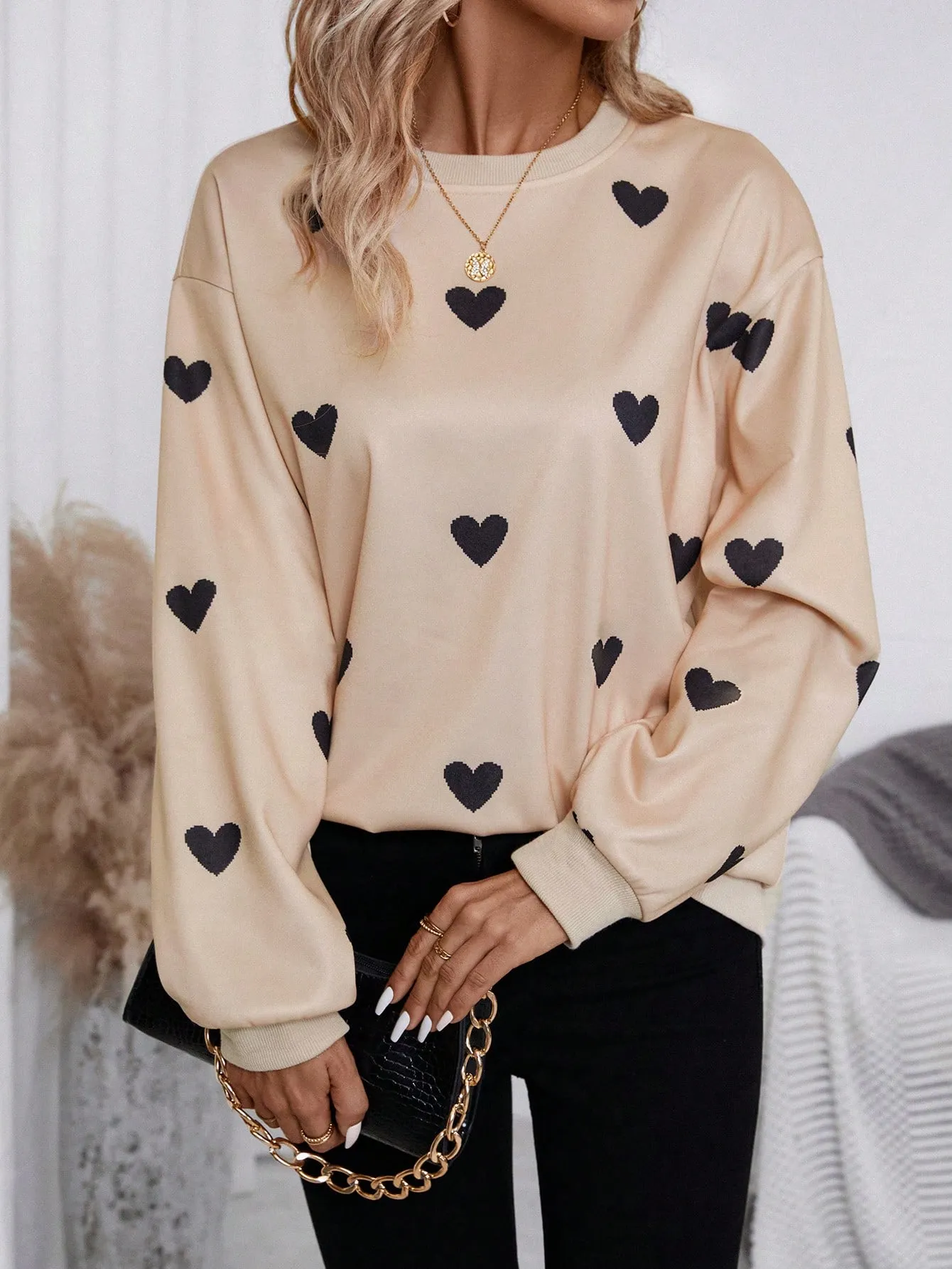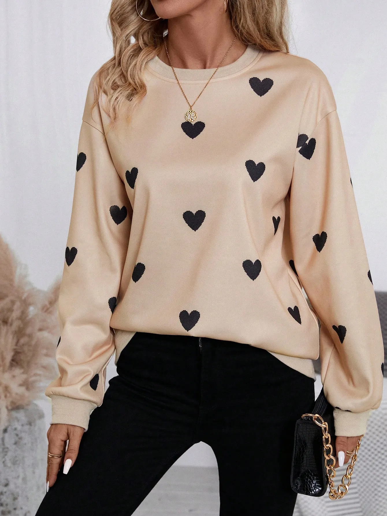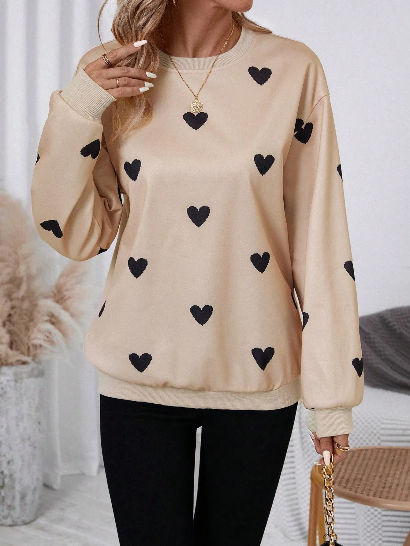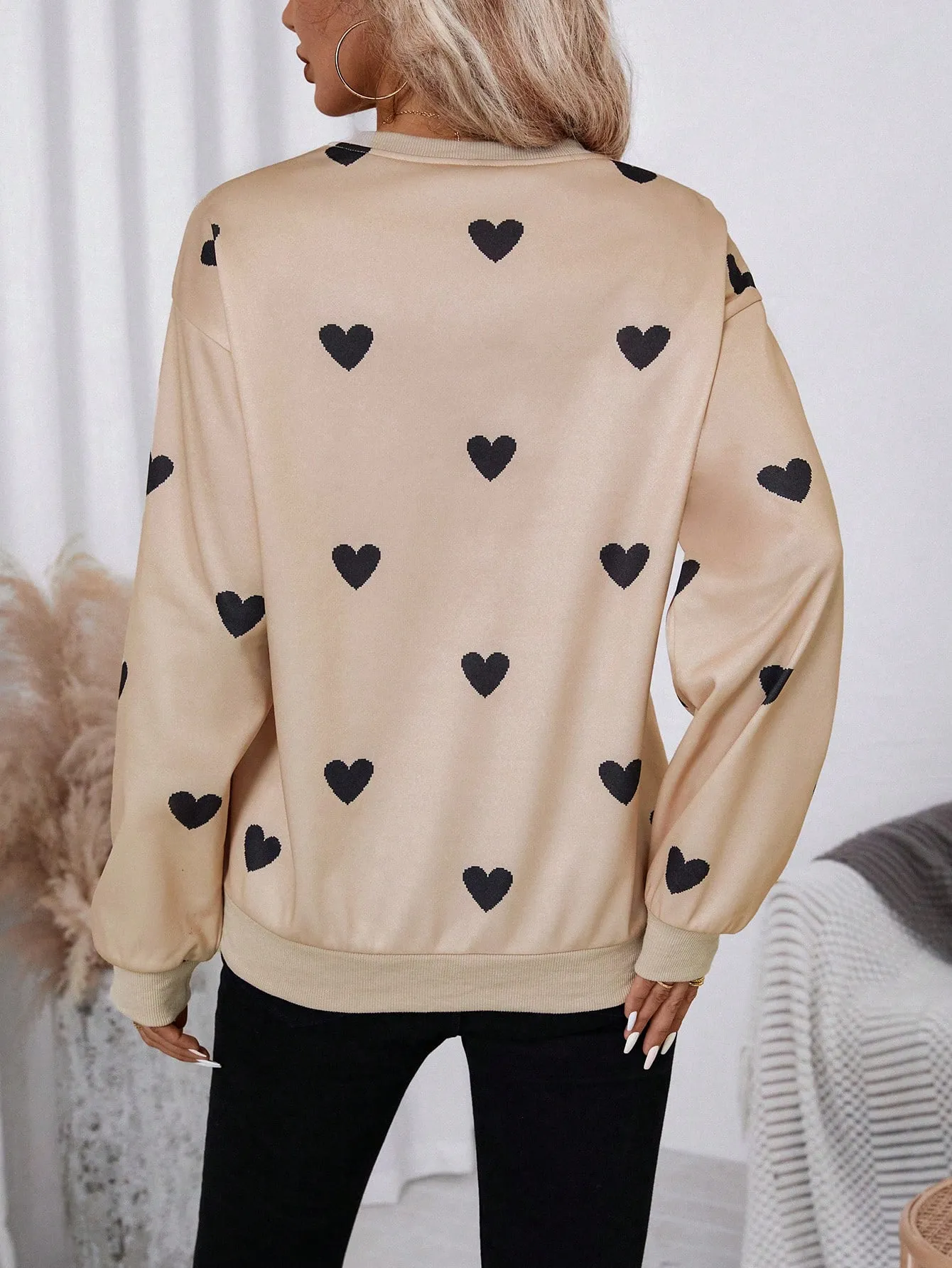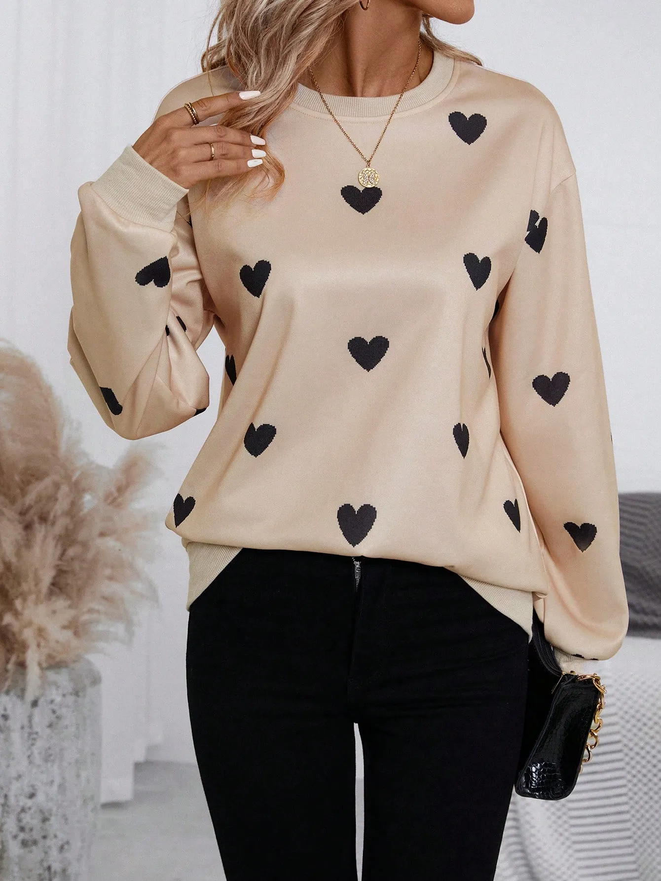 SMY Casual Trend Small Round Neck Love Pattern Hoodie
