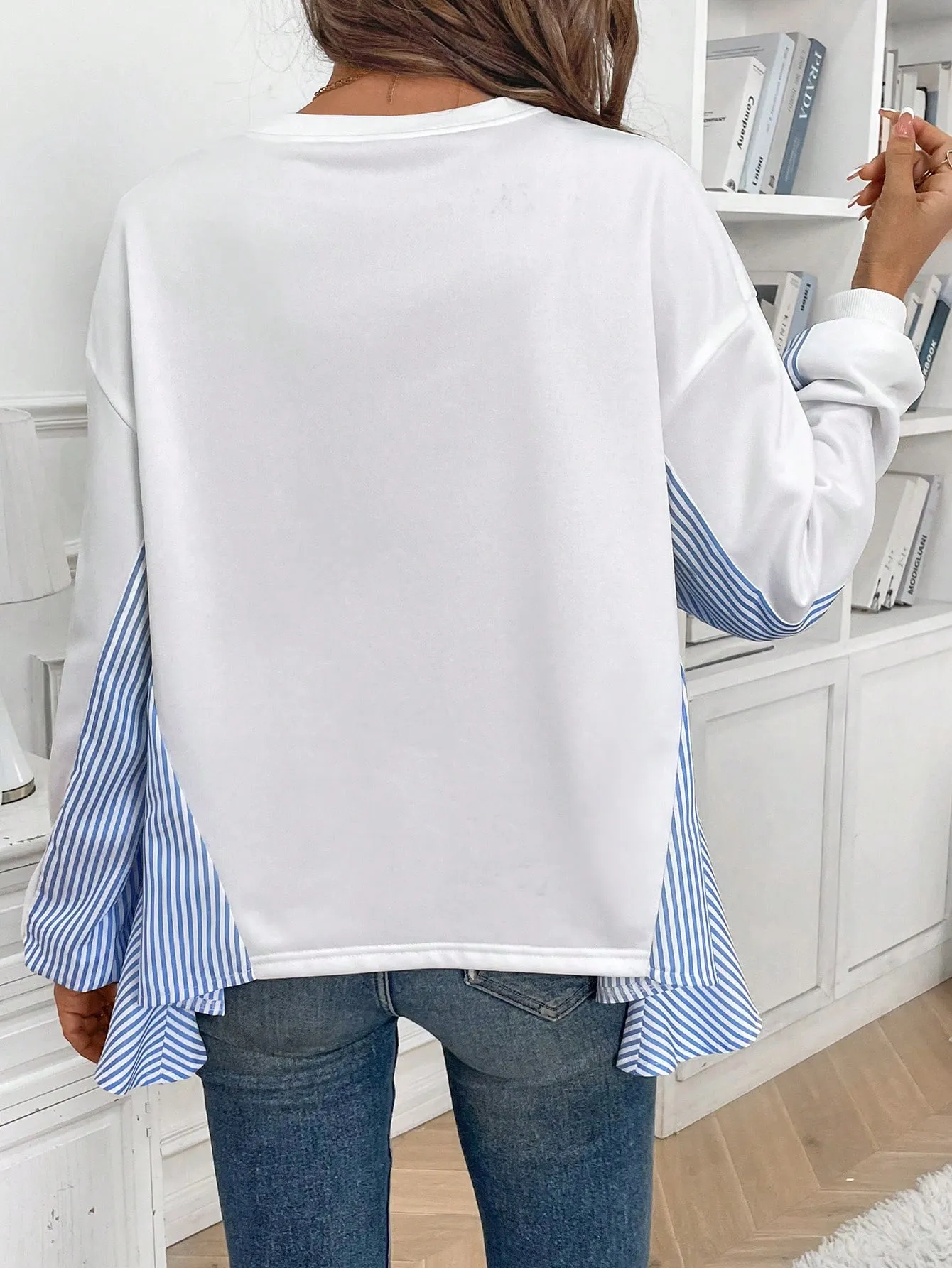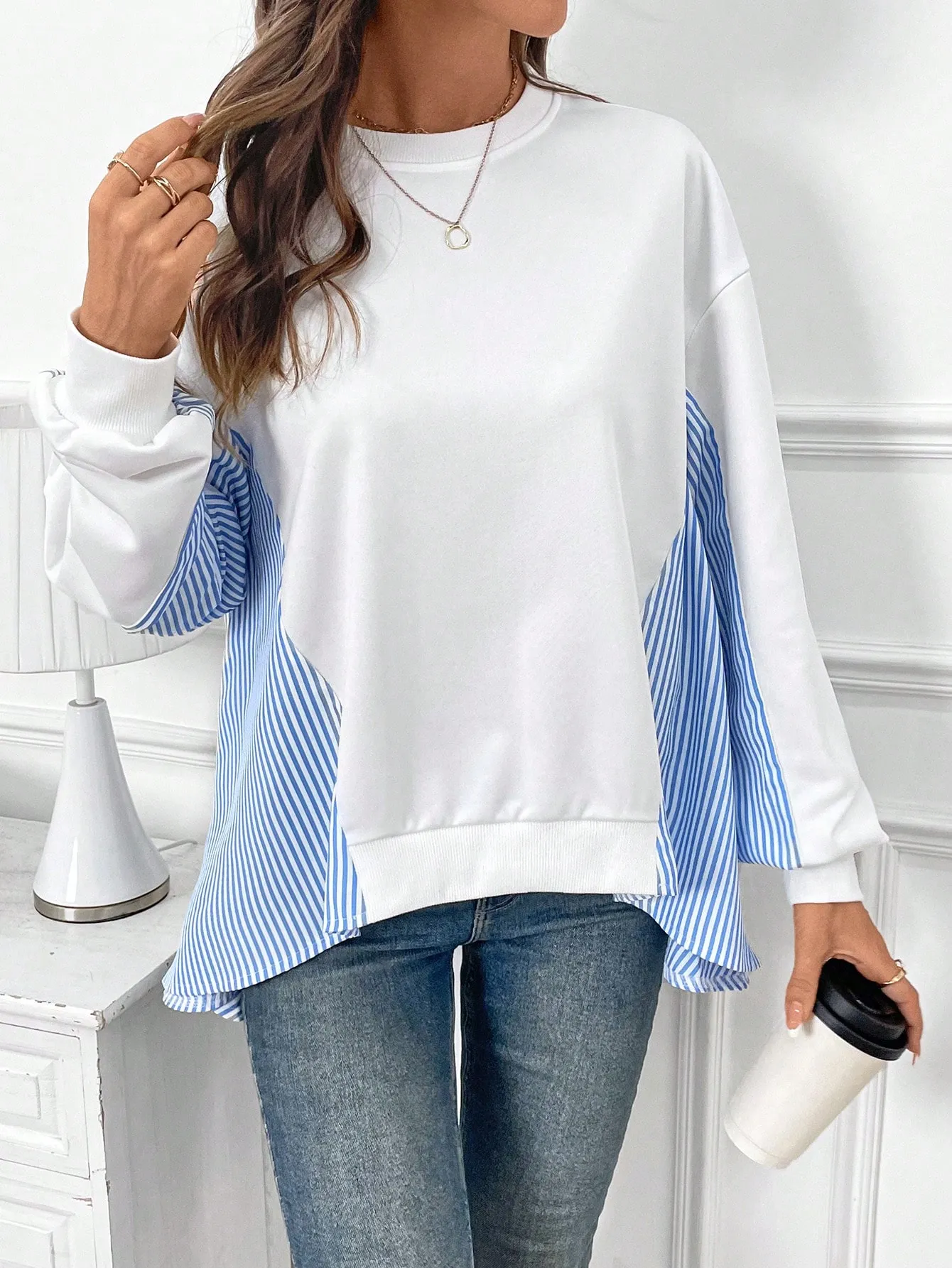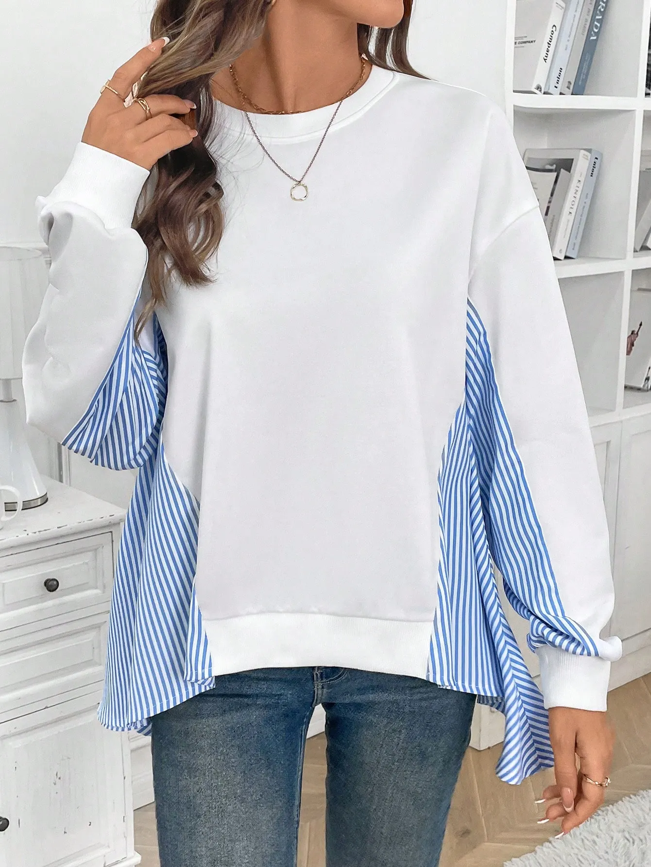 SMY Casual Trend Small Round Neck Women’S Casual Contrasting Striped Patchwork Hoodie