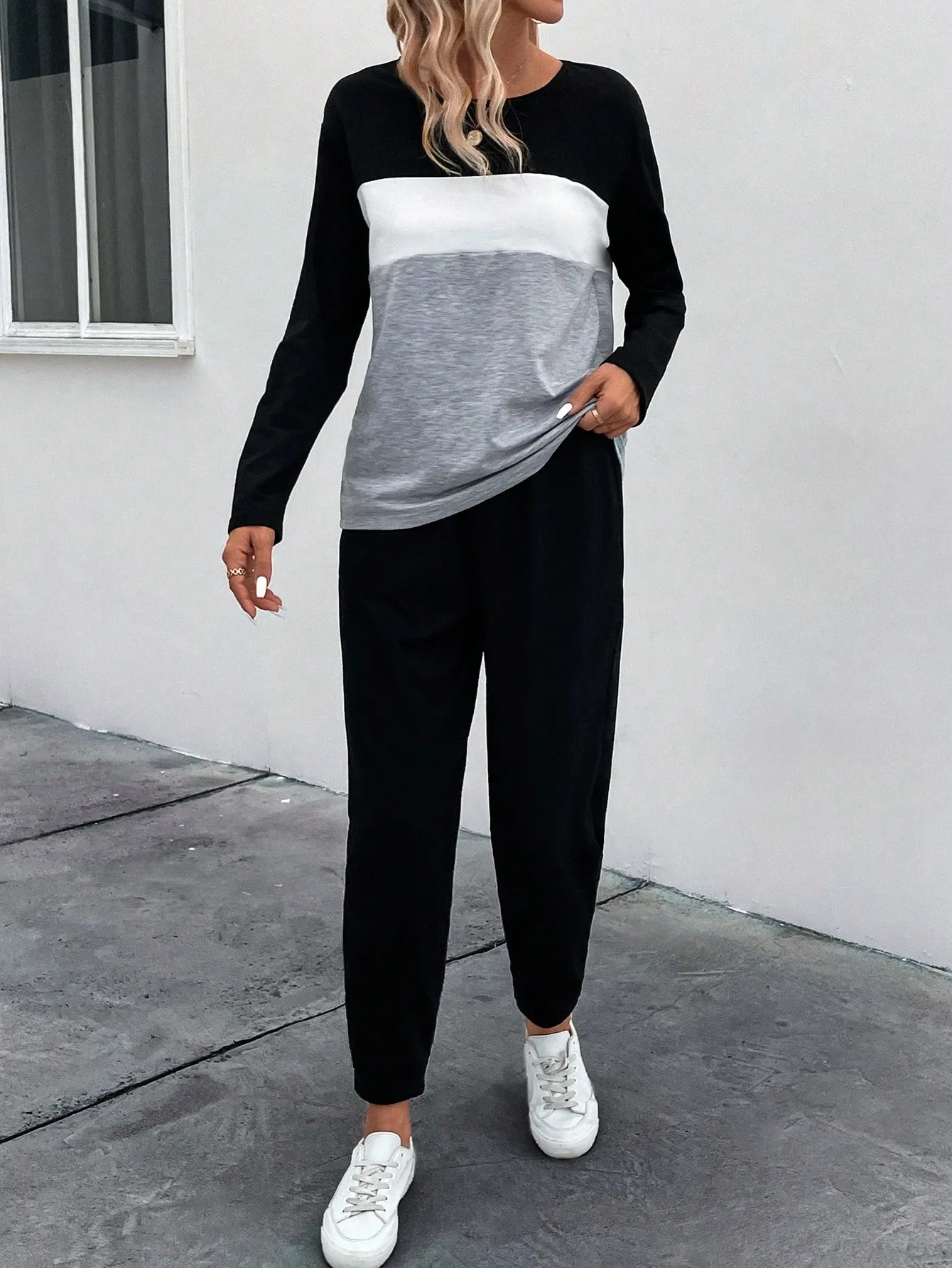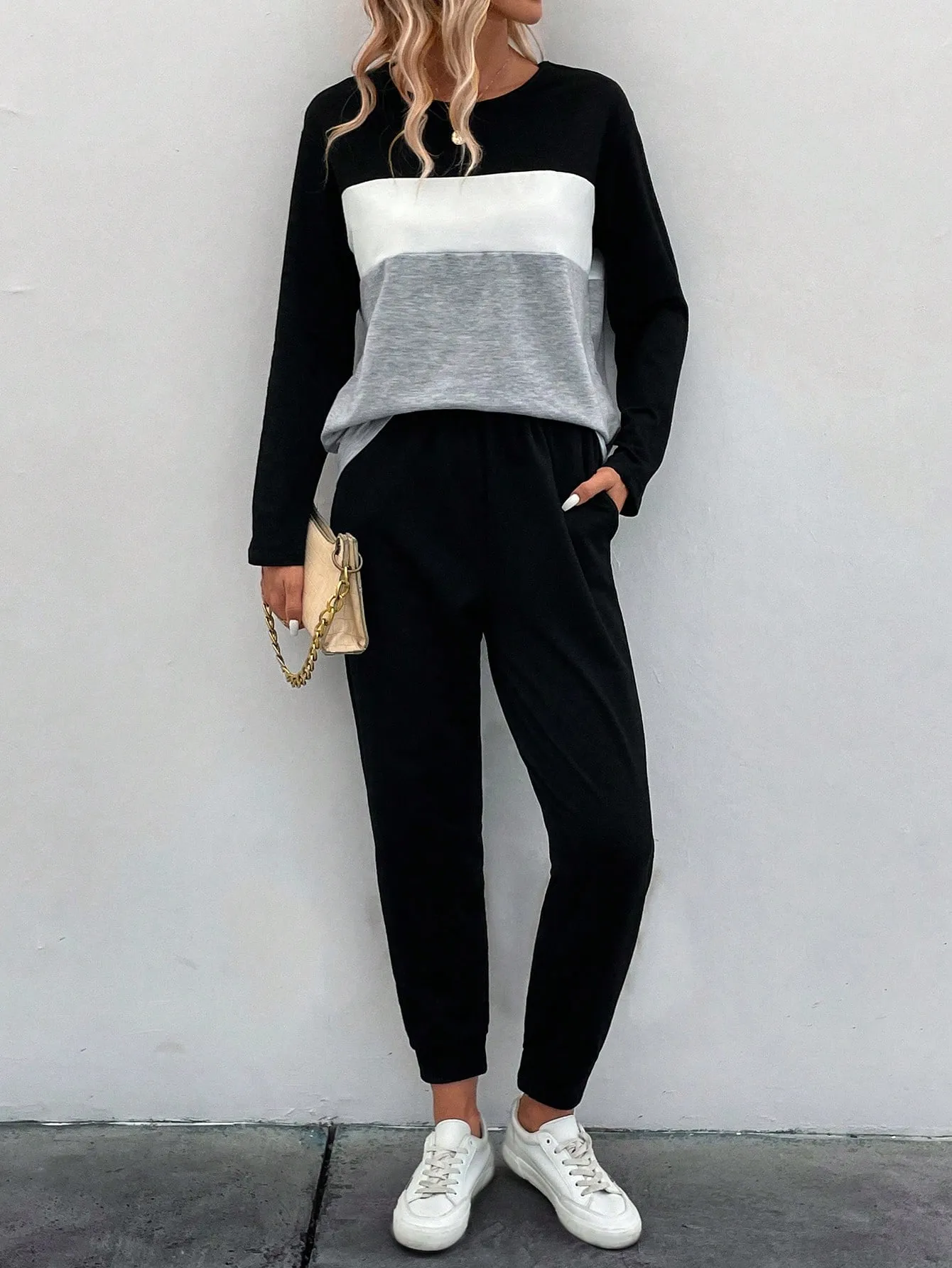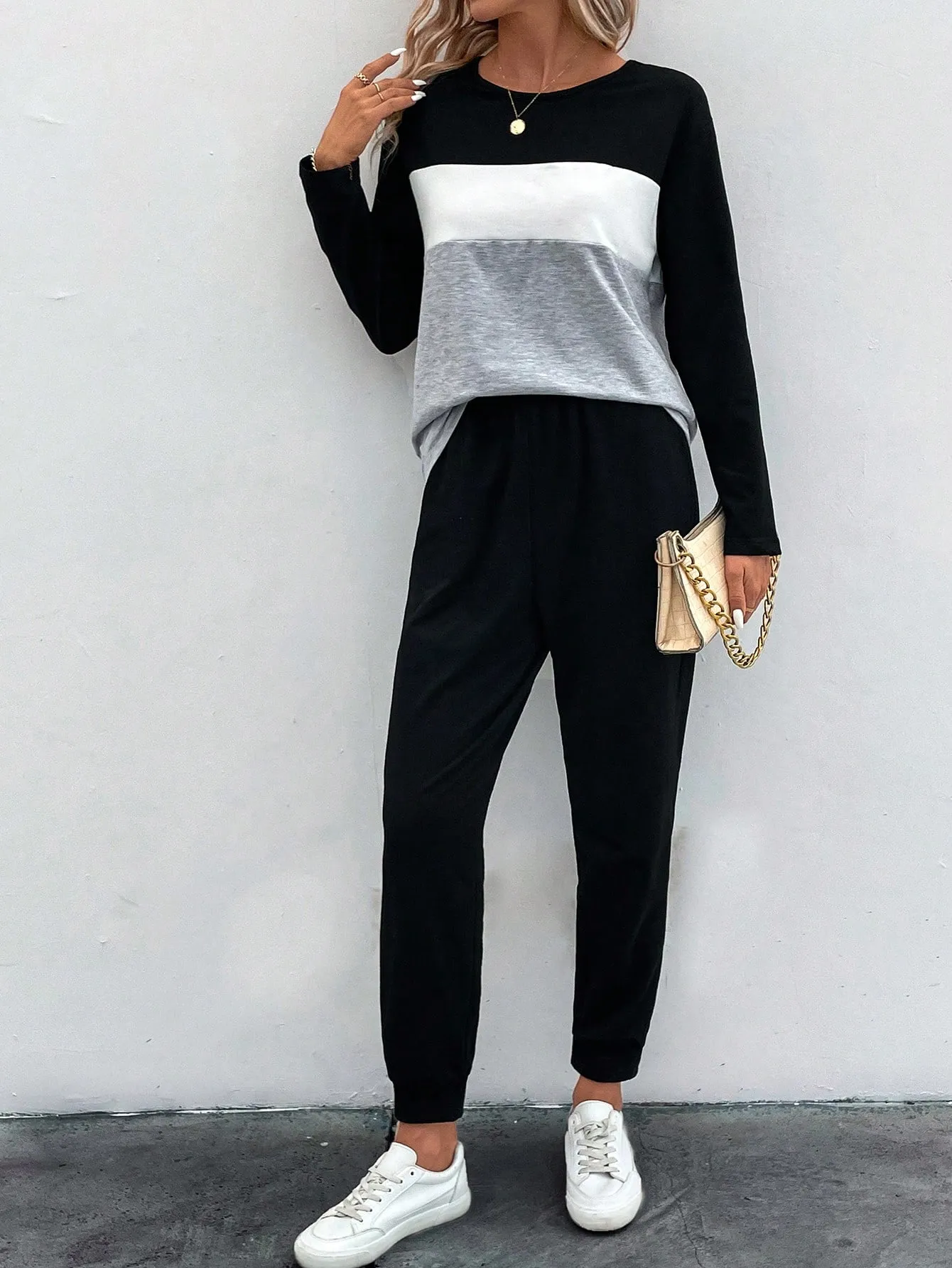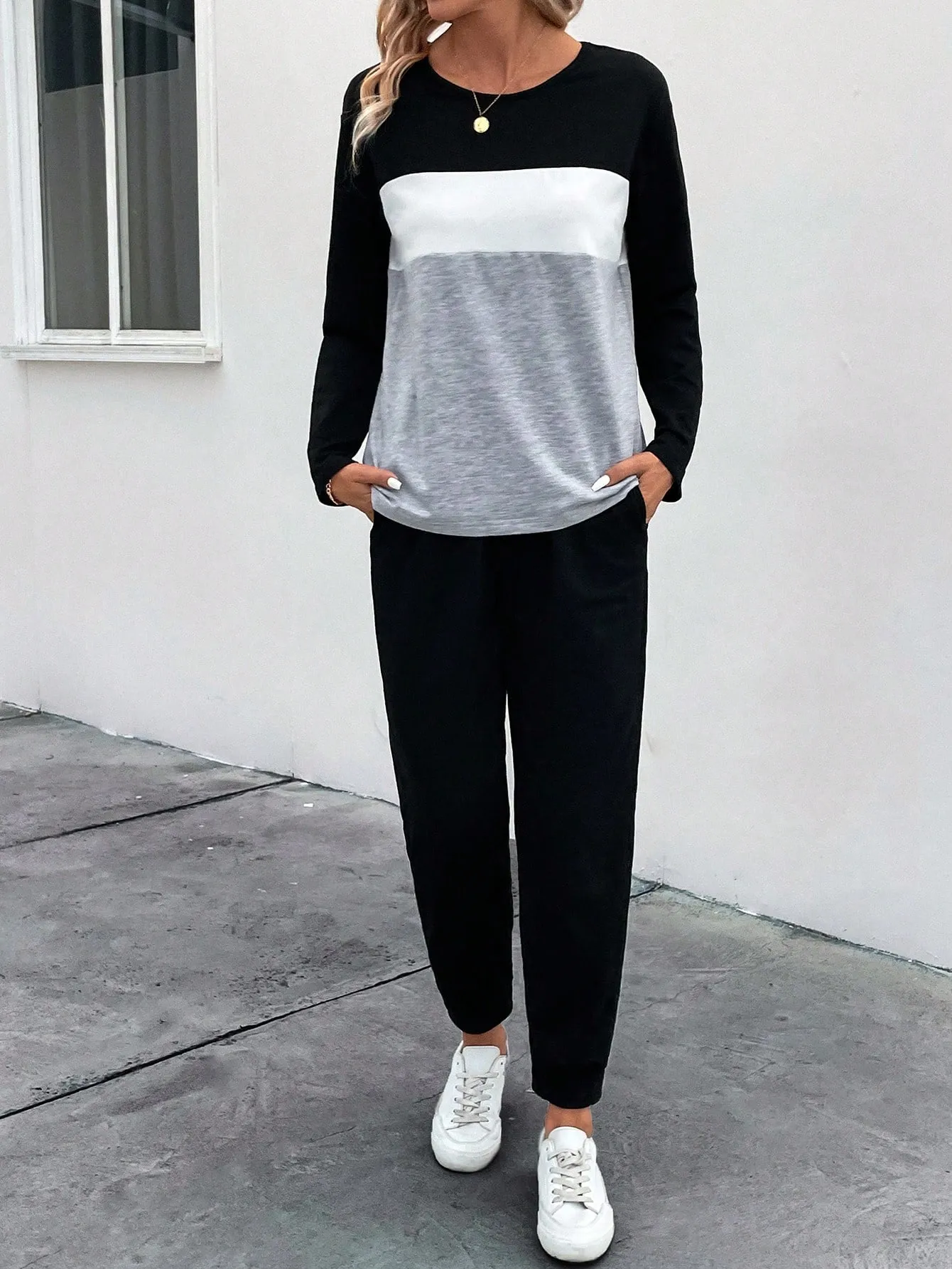 SMY Casual Trend Small Round Neck Women’s Two Piece Set For Spring, Autumn