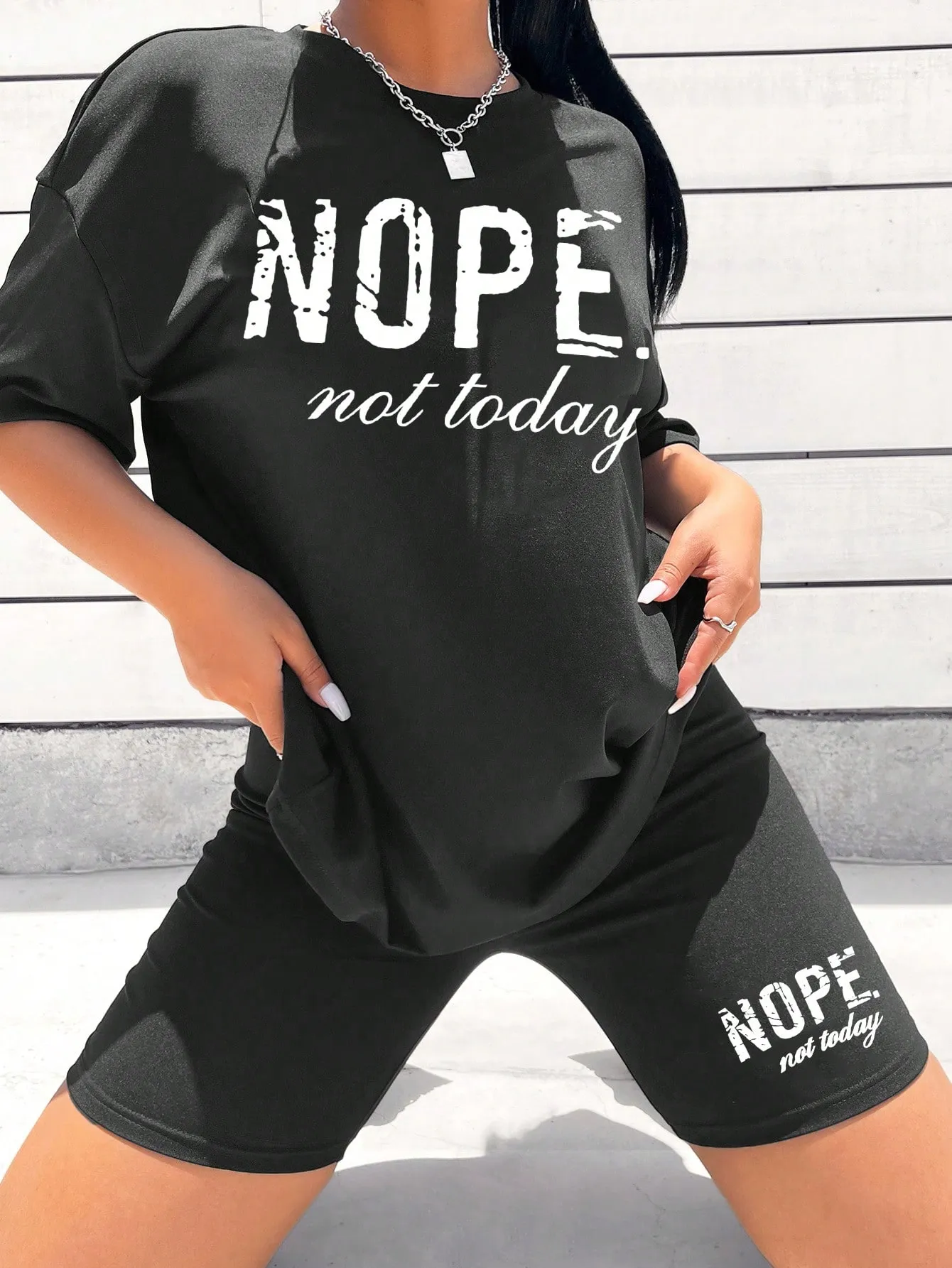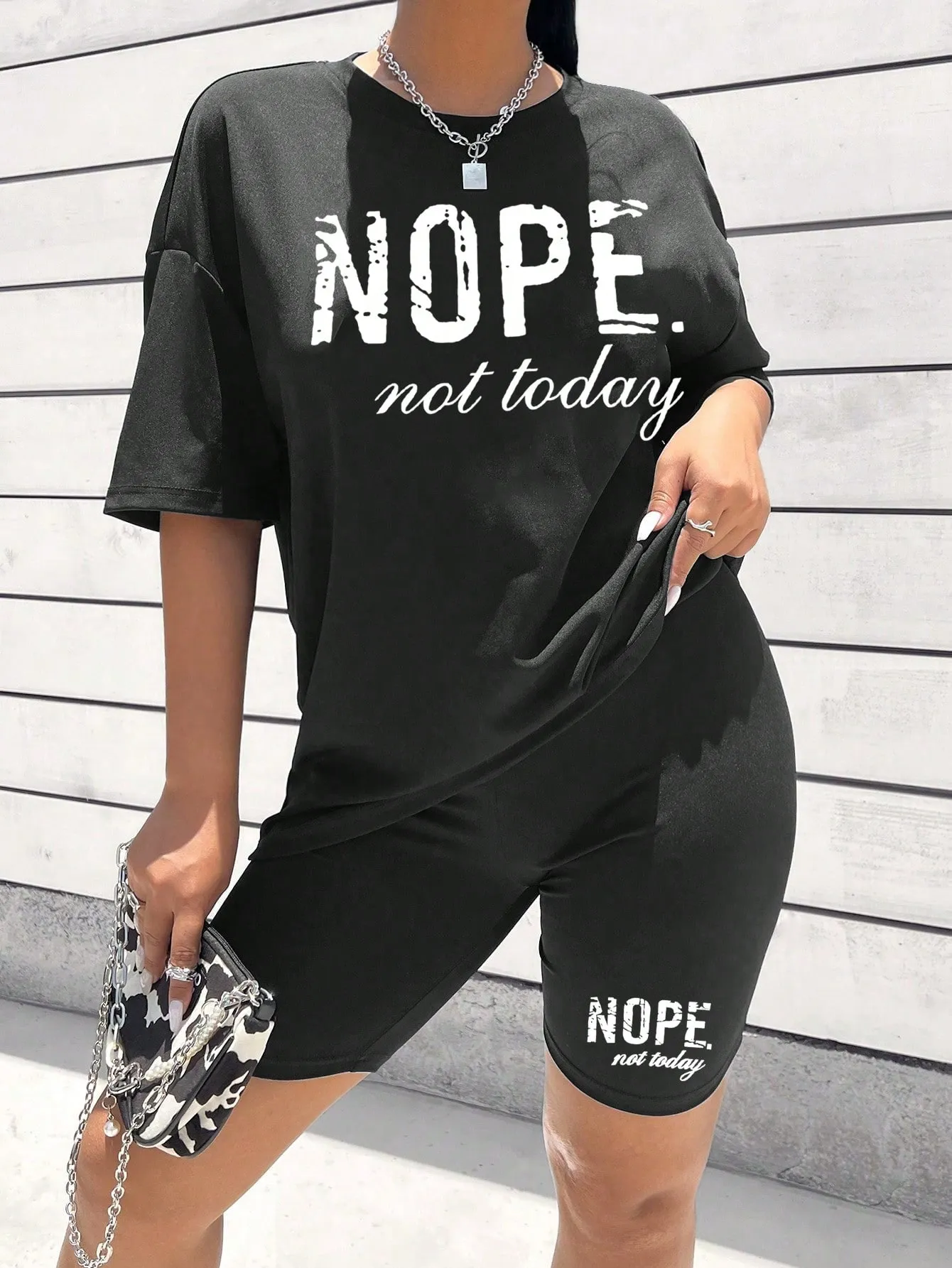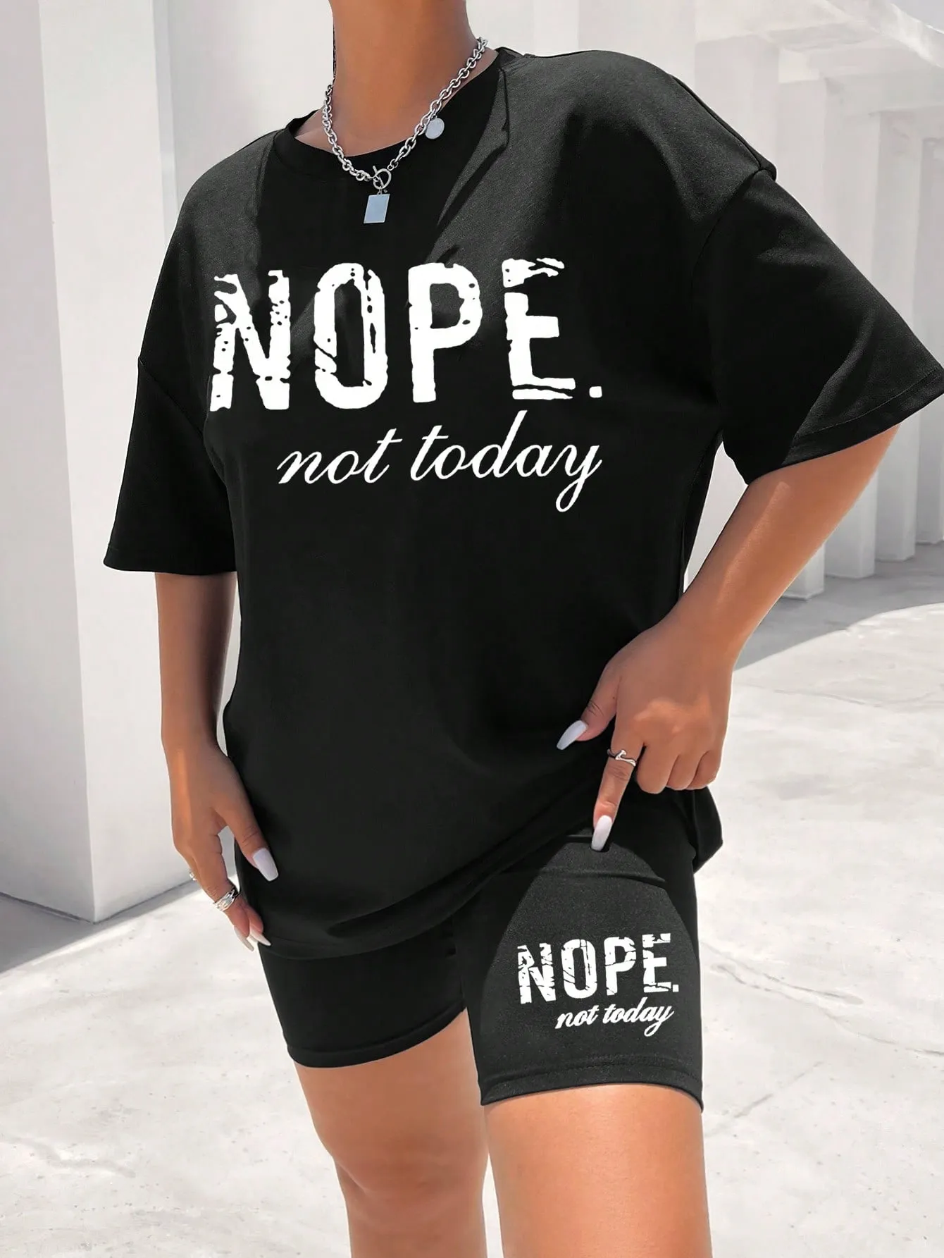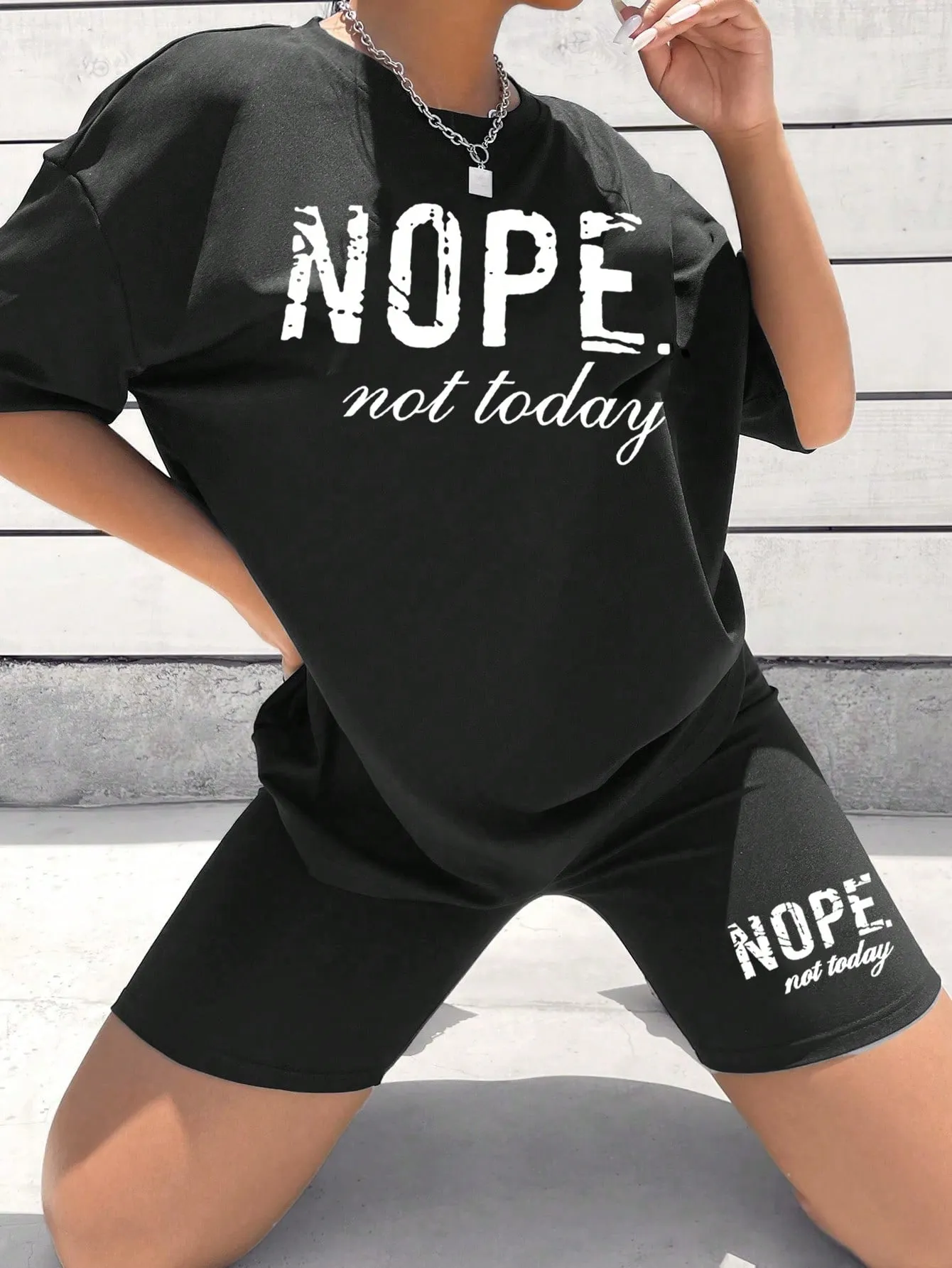 SMY Casual Trend Small Round Neck Women’s Two Piece Set With Letter Print NOPE NOT TODAY