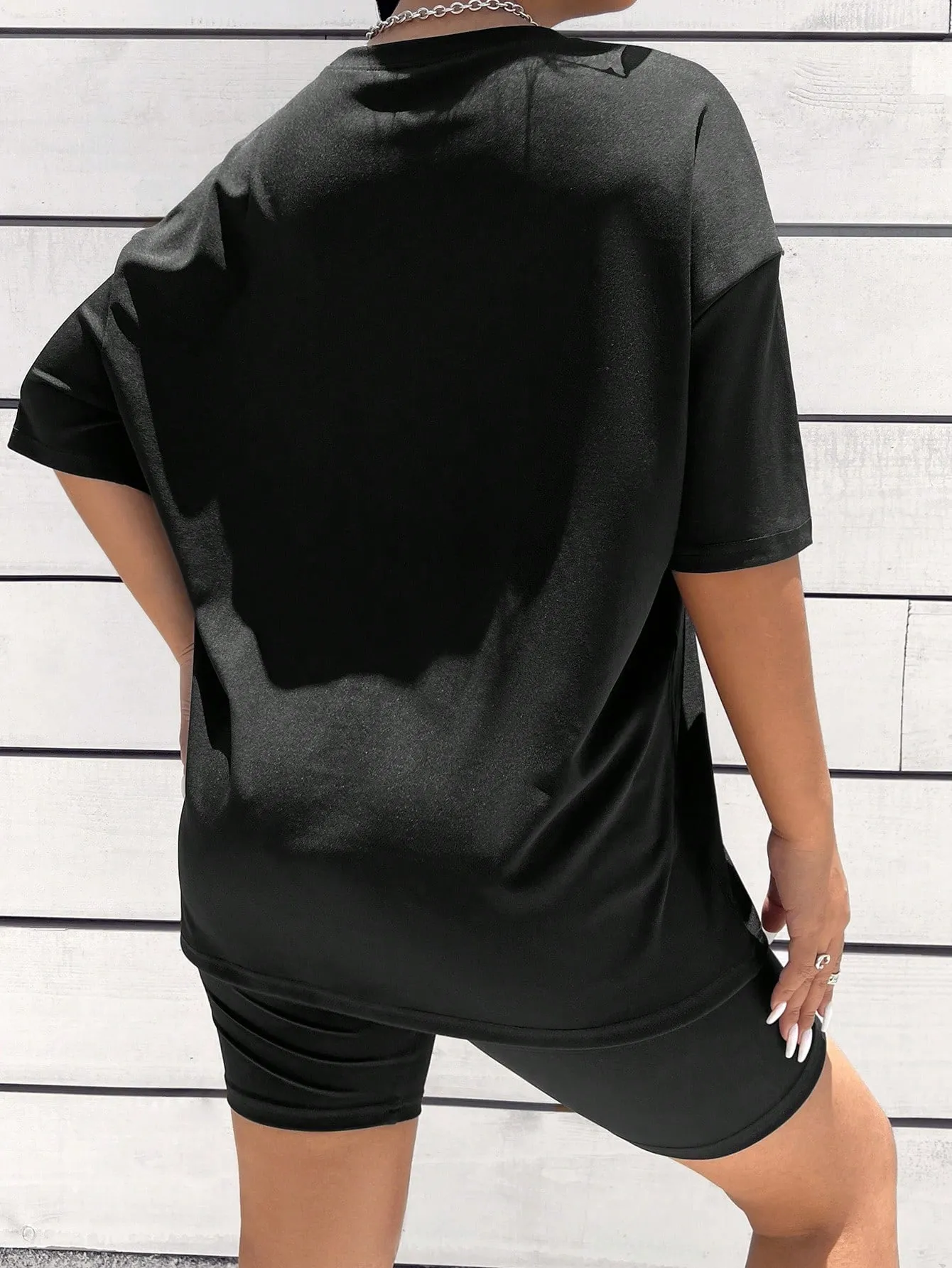 SMY Letter Pattern Drop Shoulder Tee & Biker Shorts