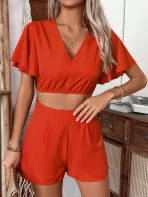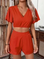 Be the first to review “SMY Casual Trend Small V-Neck Women’s Ruffle Edge Solid Color Simple V-Neck Casual Two-Piece Set” Cancel reply
