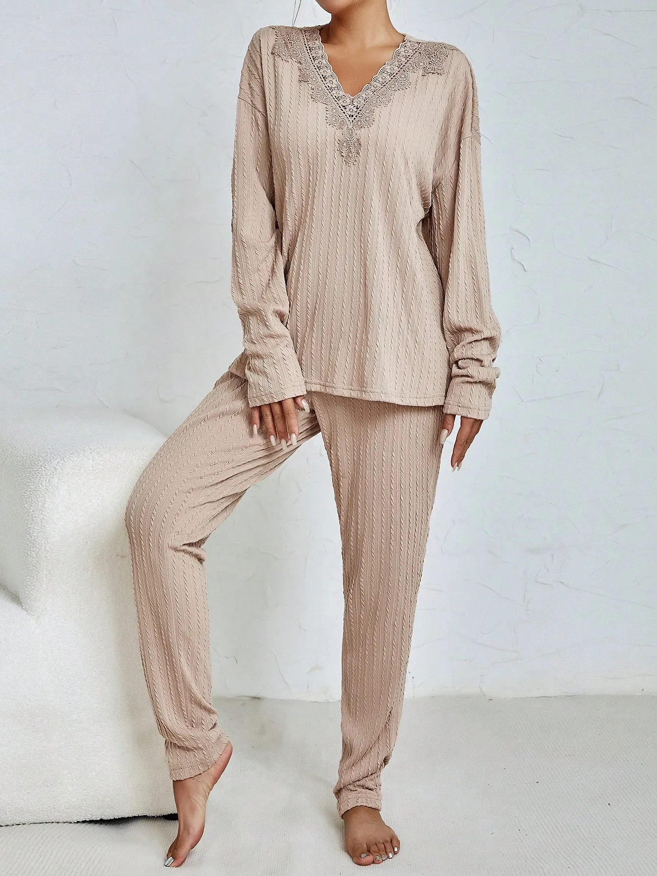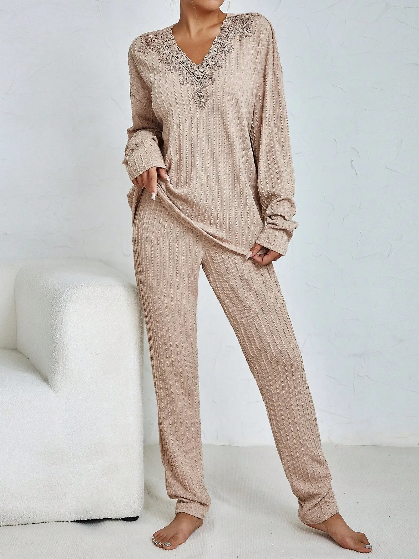 SMY Casual Trend Small V-Neck Women’s Two-Piece Set For Spring, Autumn