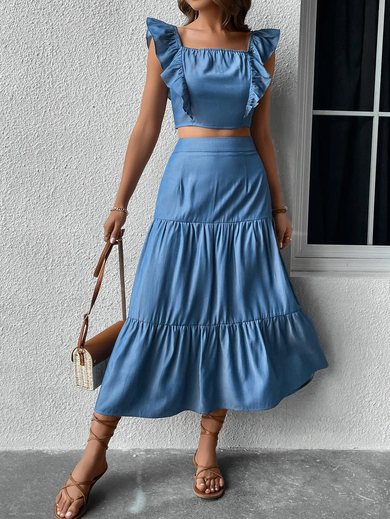 SMY Casual Trend Style Square Neck Women’s Two-Piece Set