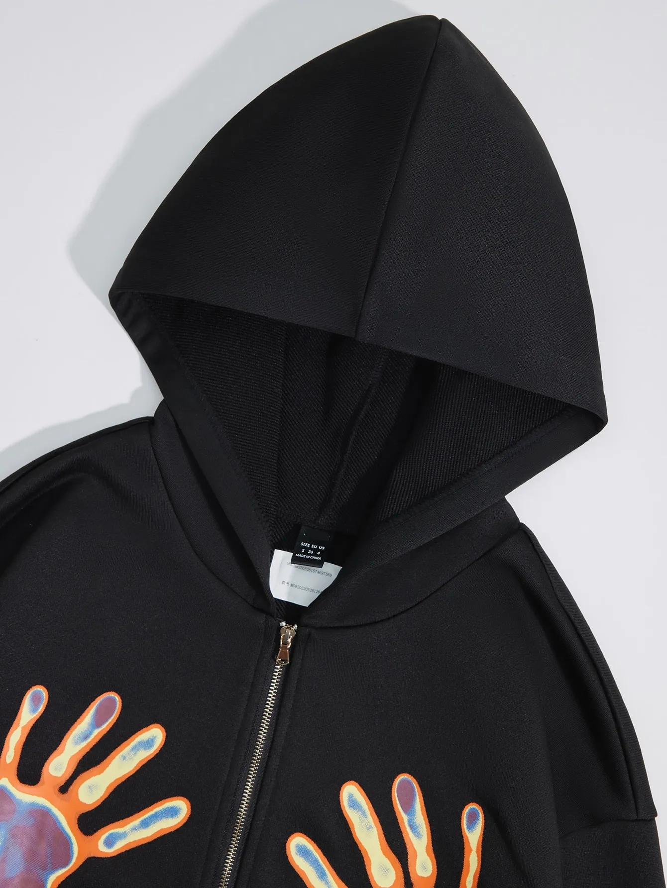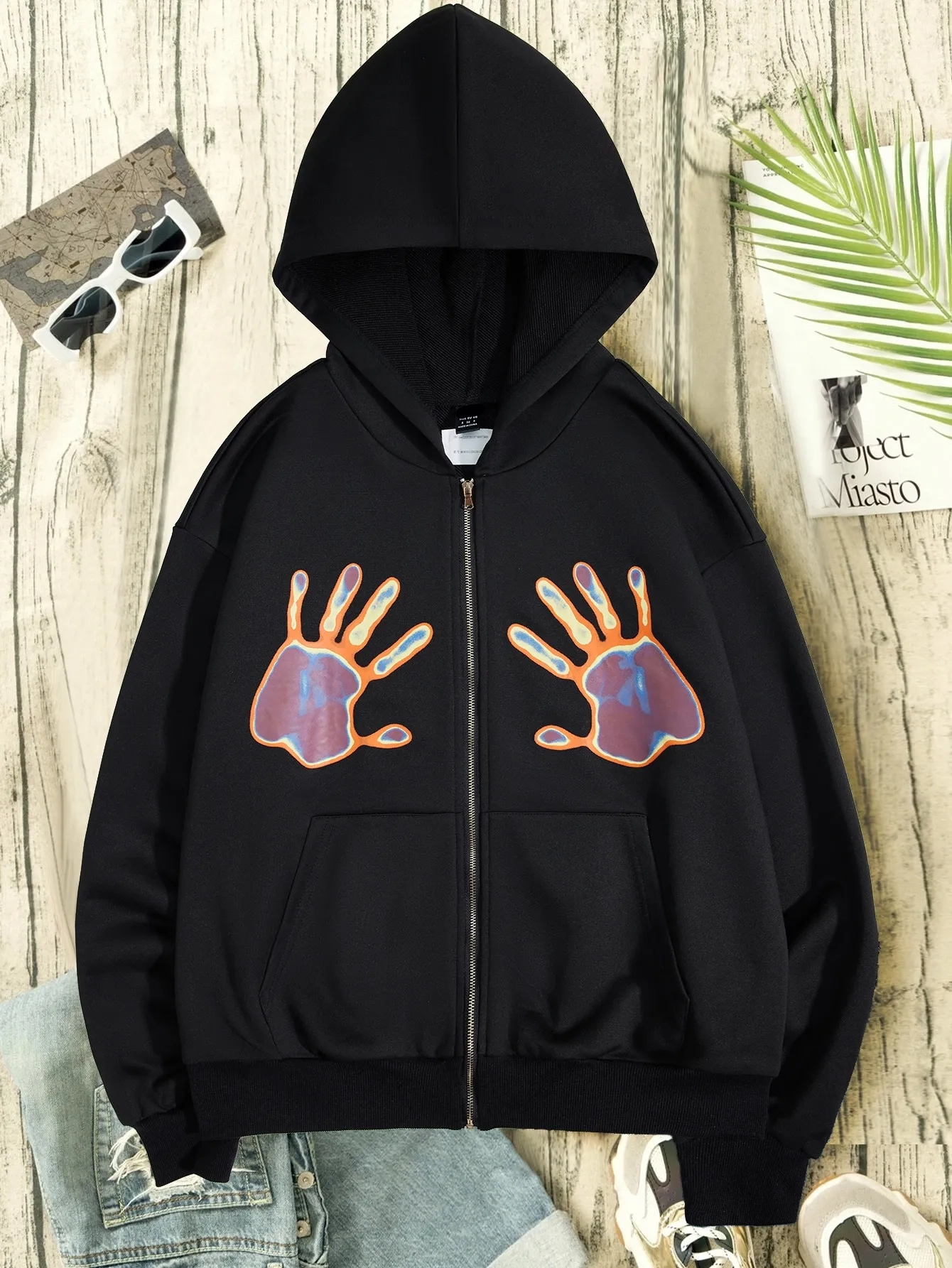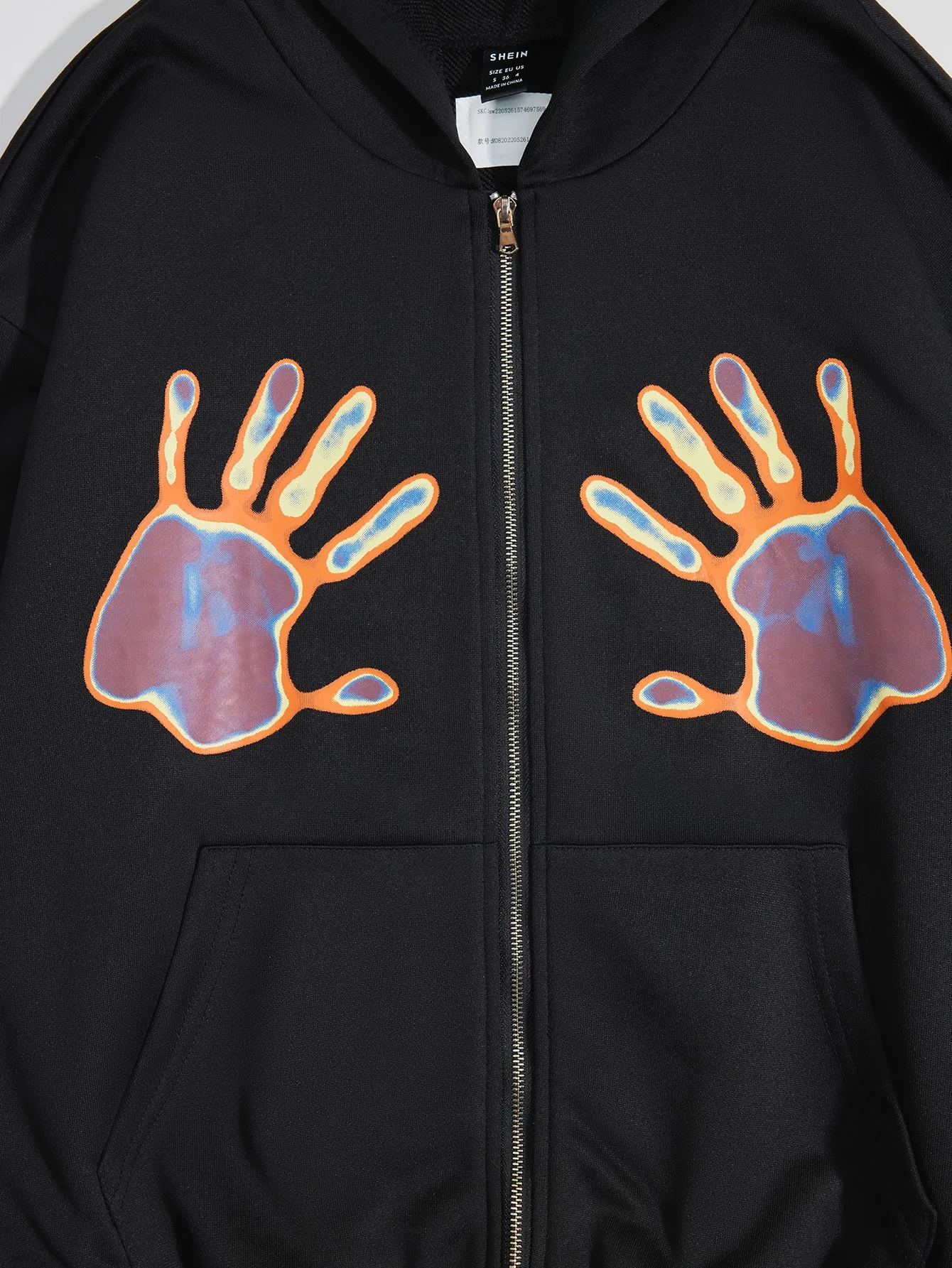 SMY Casual Two Hands Printed Hooded Long Hoodie