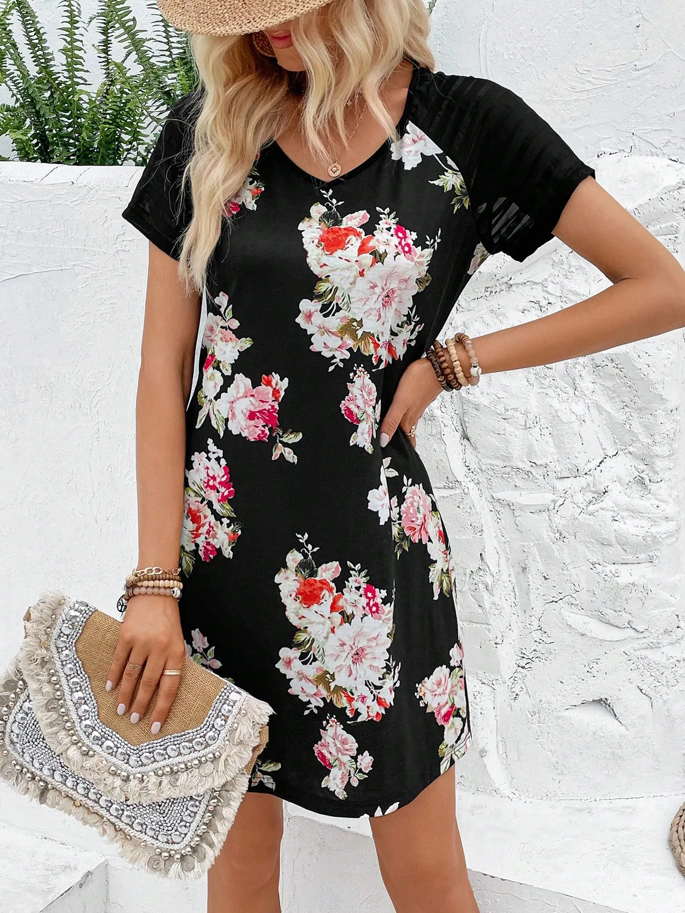 SMY Women’s Flora Print Mesh Short Sleeve Dress