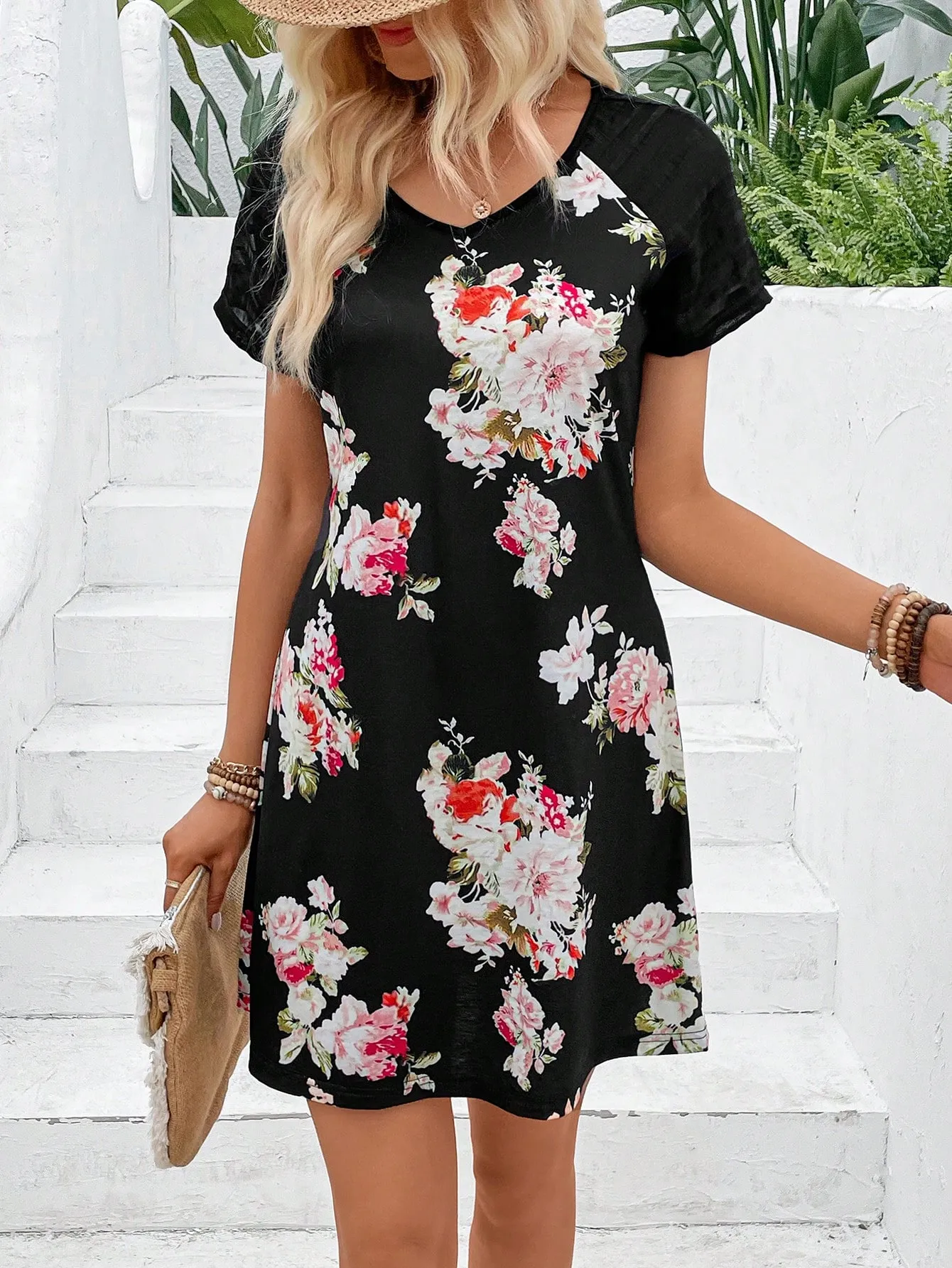 SMY Casual Vintage Flower Trend Small V-Neck Dress