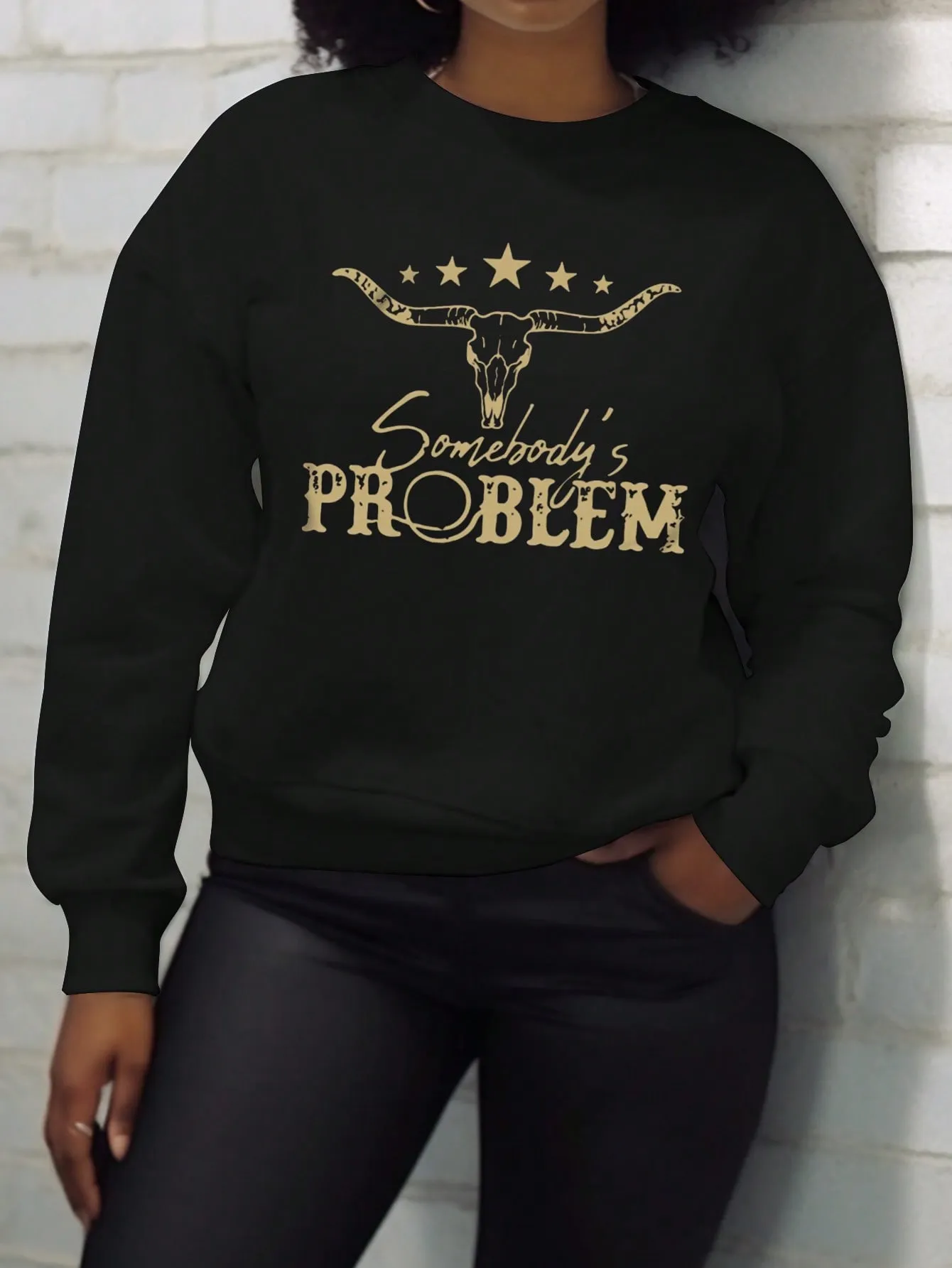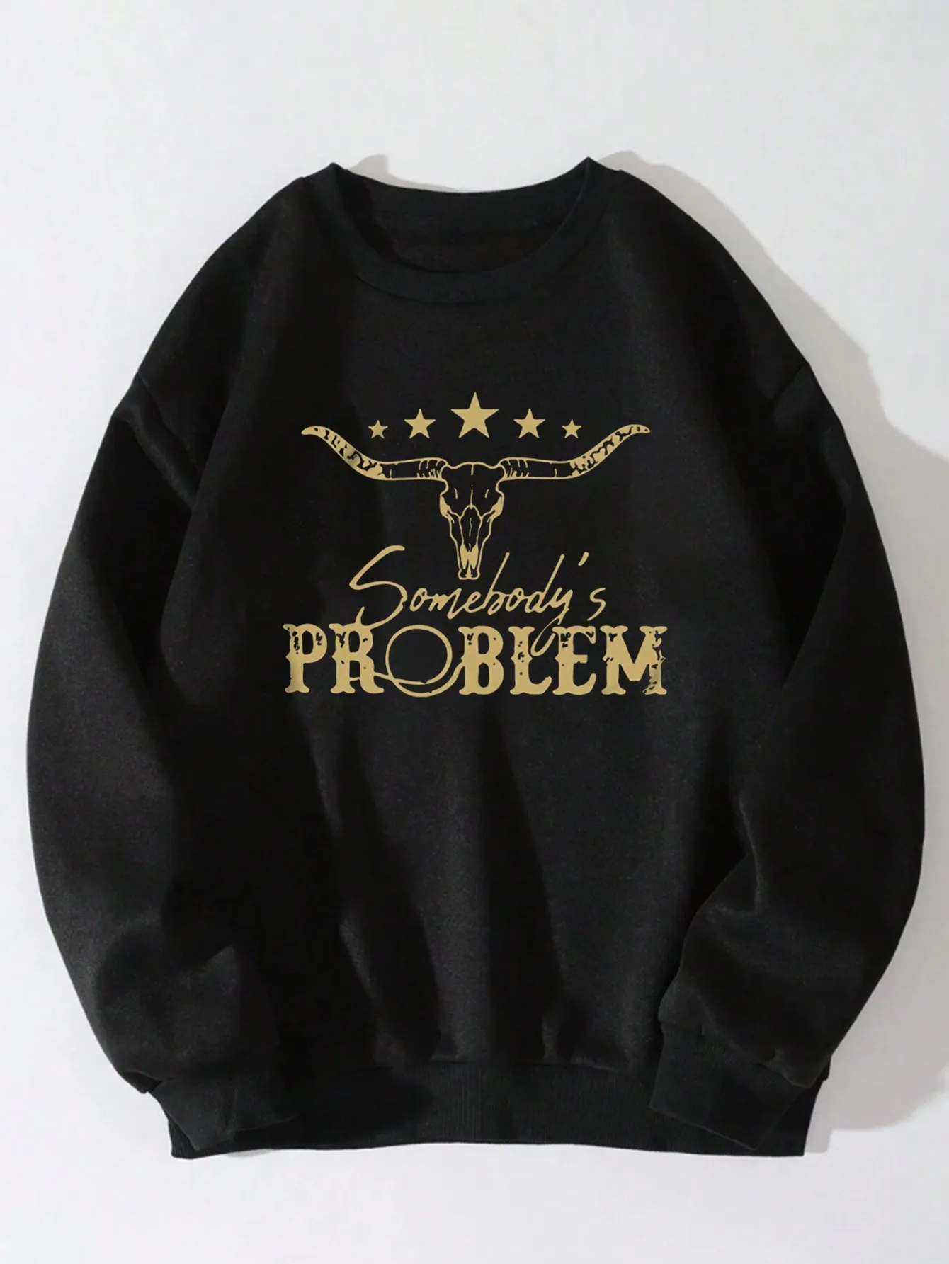 SMY Casual Round Neck Long Sleeved Graphic Sweatshirt