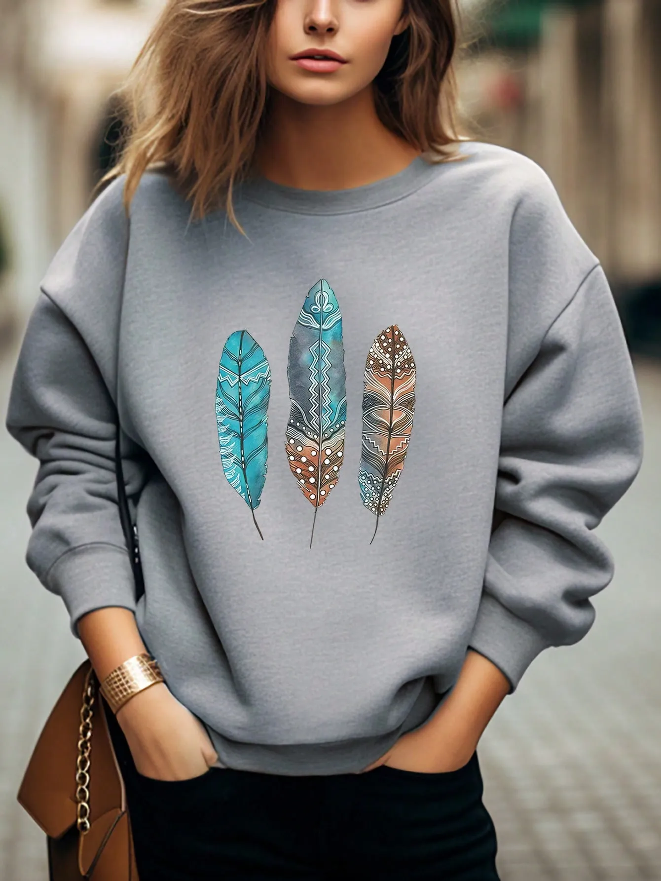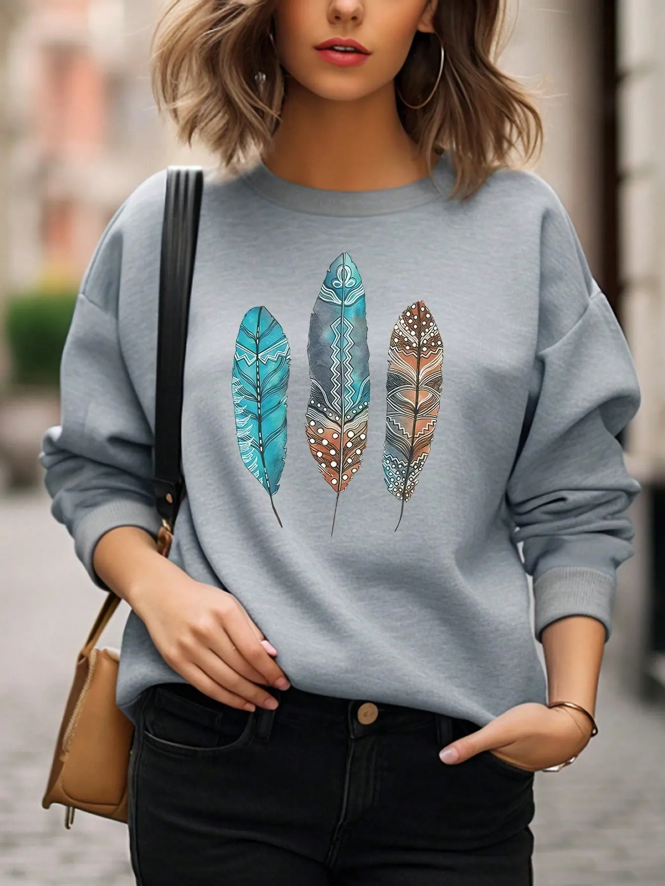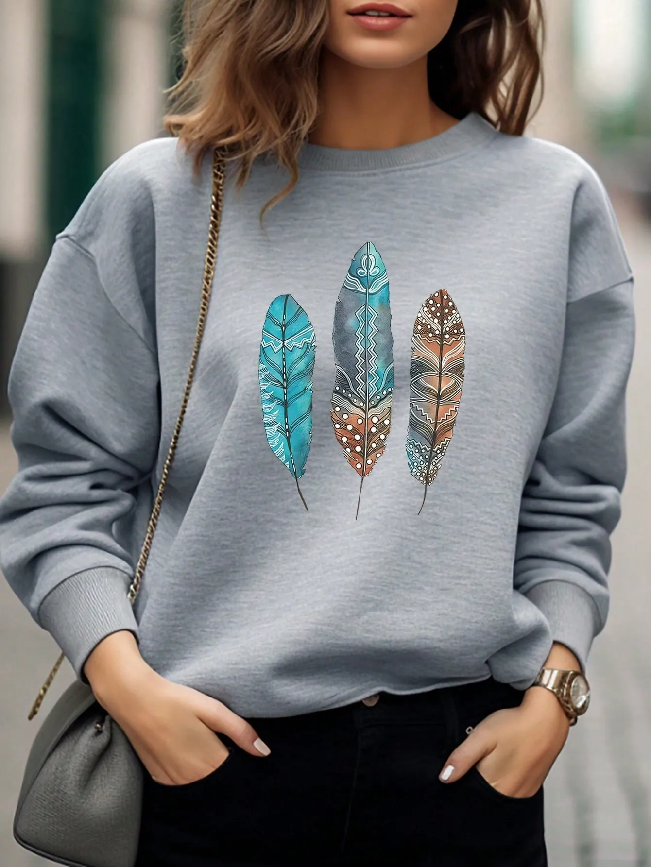 SMY Casual Round Neck Long Sleeved Graphic Sweatshirt