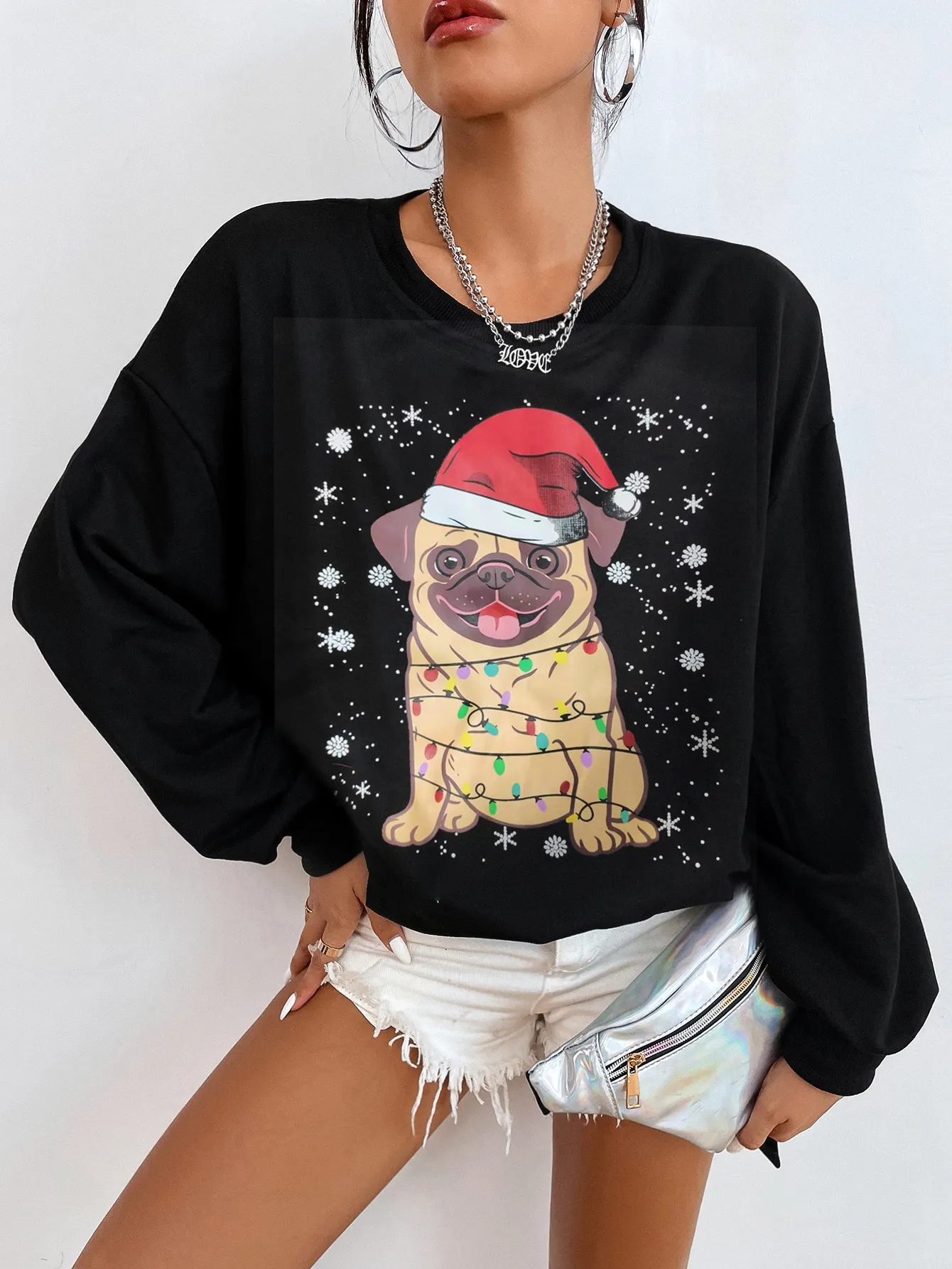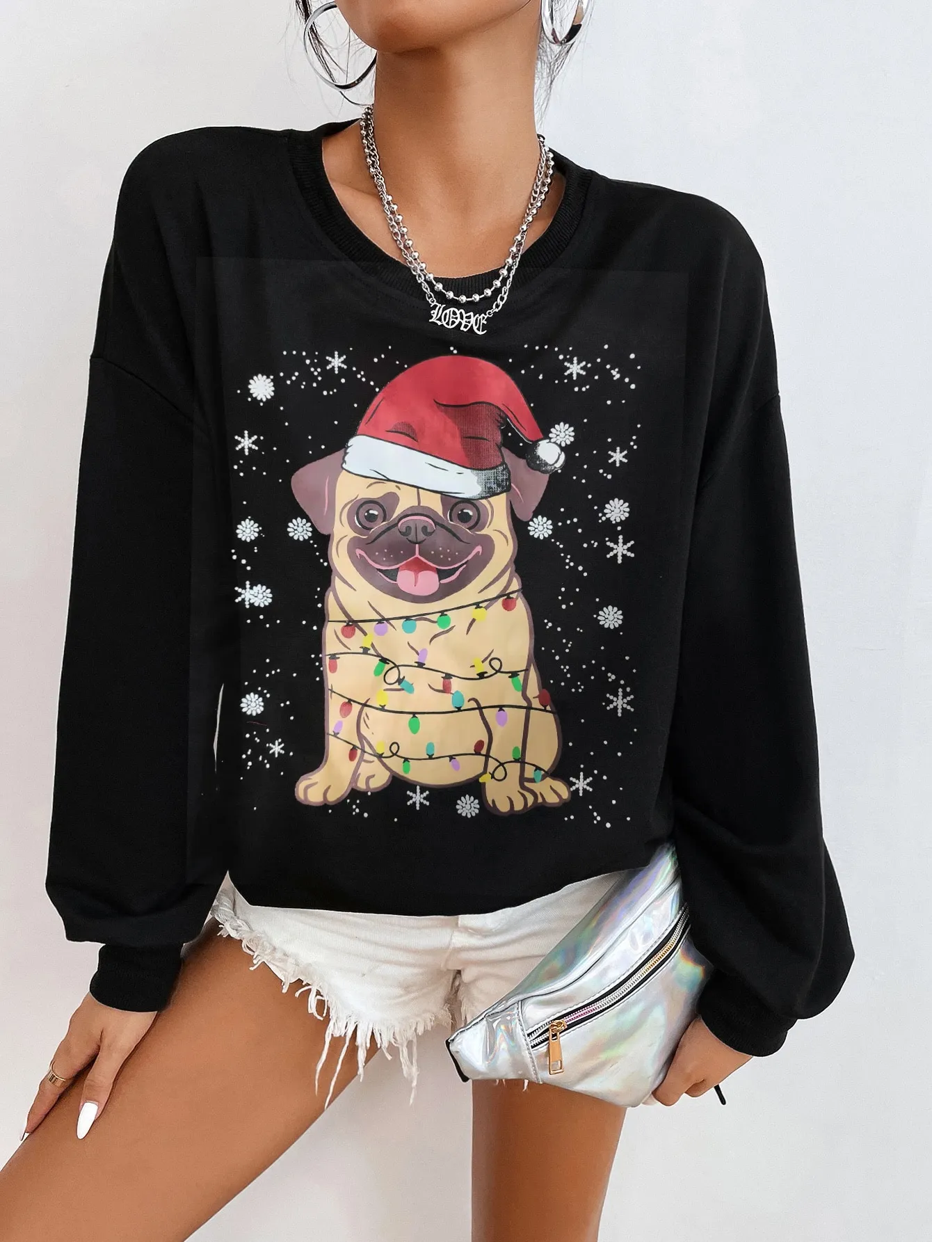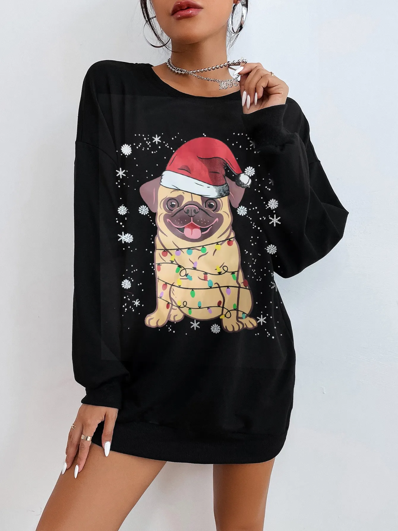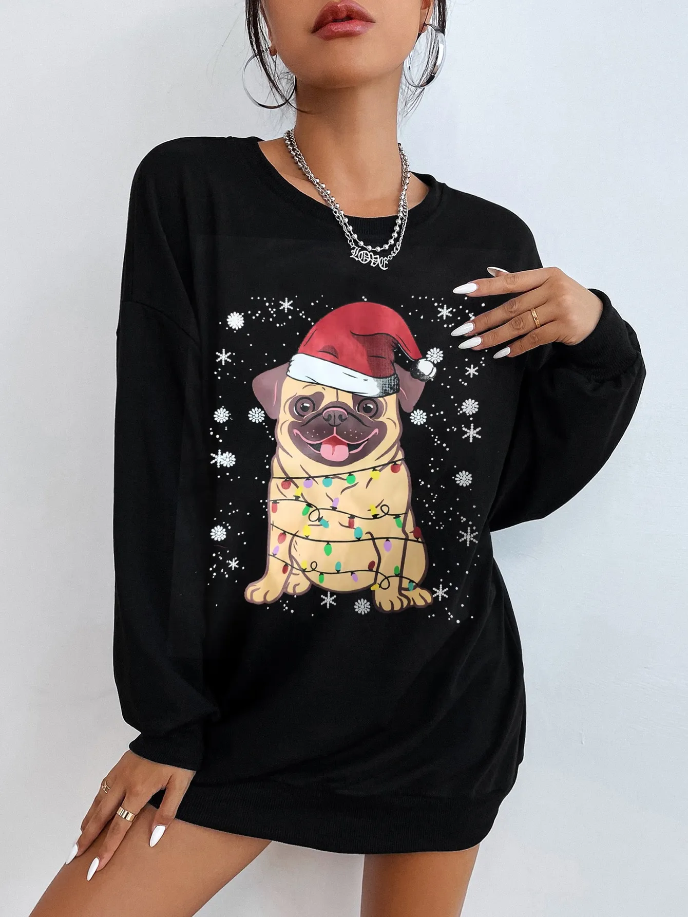 SMY Casual Women’s Christmas Print Round Neck Long Hoodie