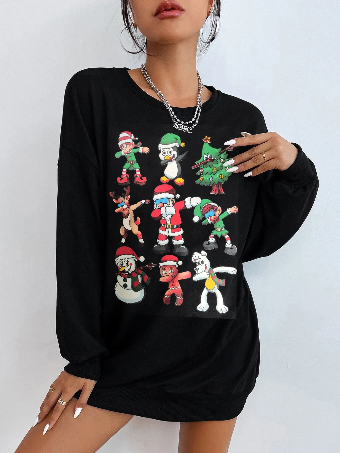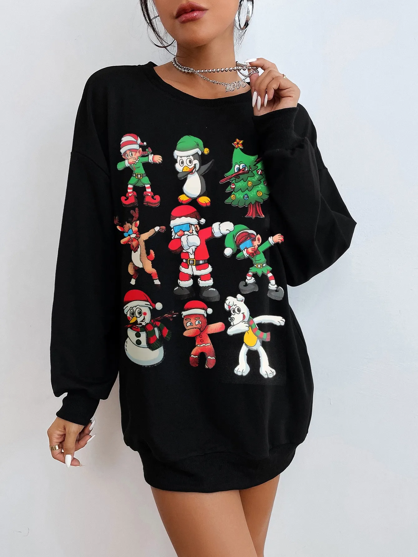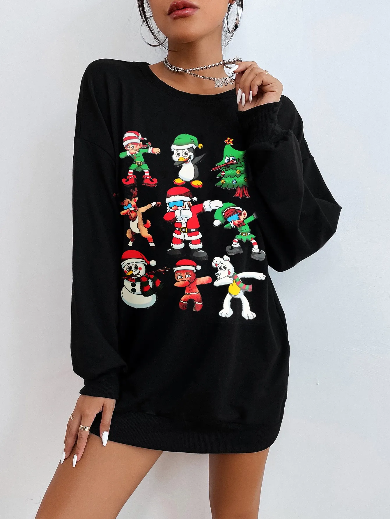 SMY Casual Women’s Christmas Print Round Neck Long Hoodie