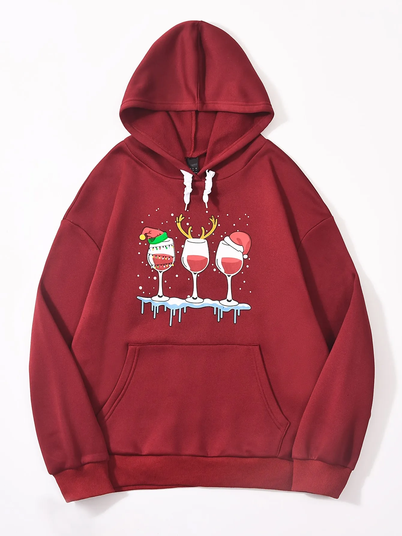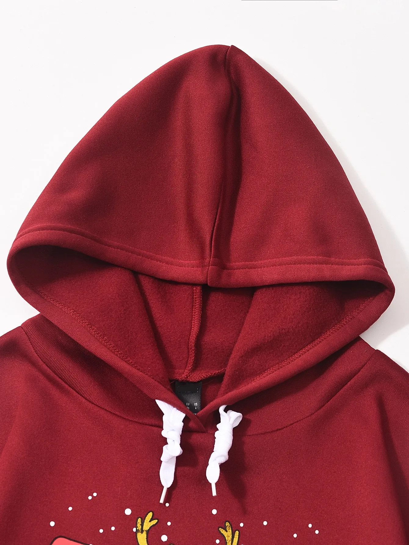 SMY Christmas Cartoon Print Casual Hooded Regular Hoodie