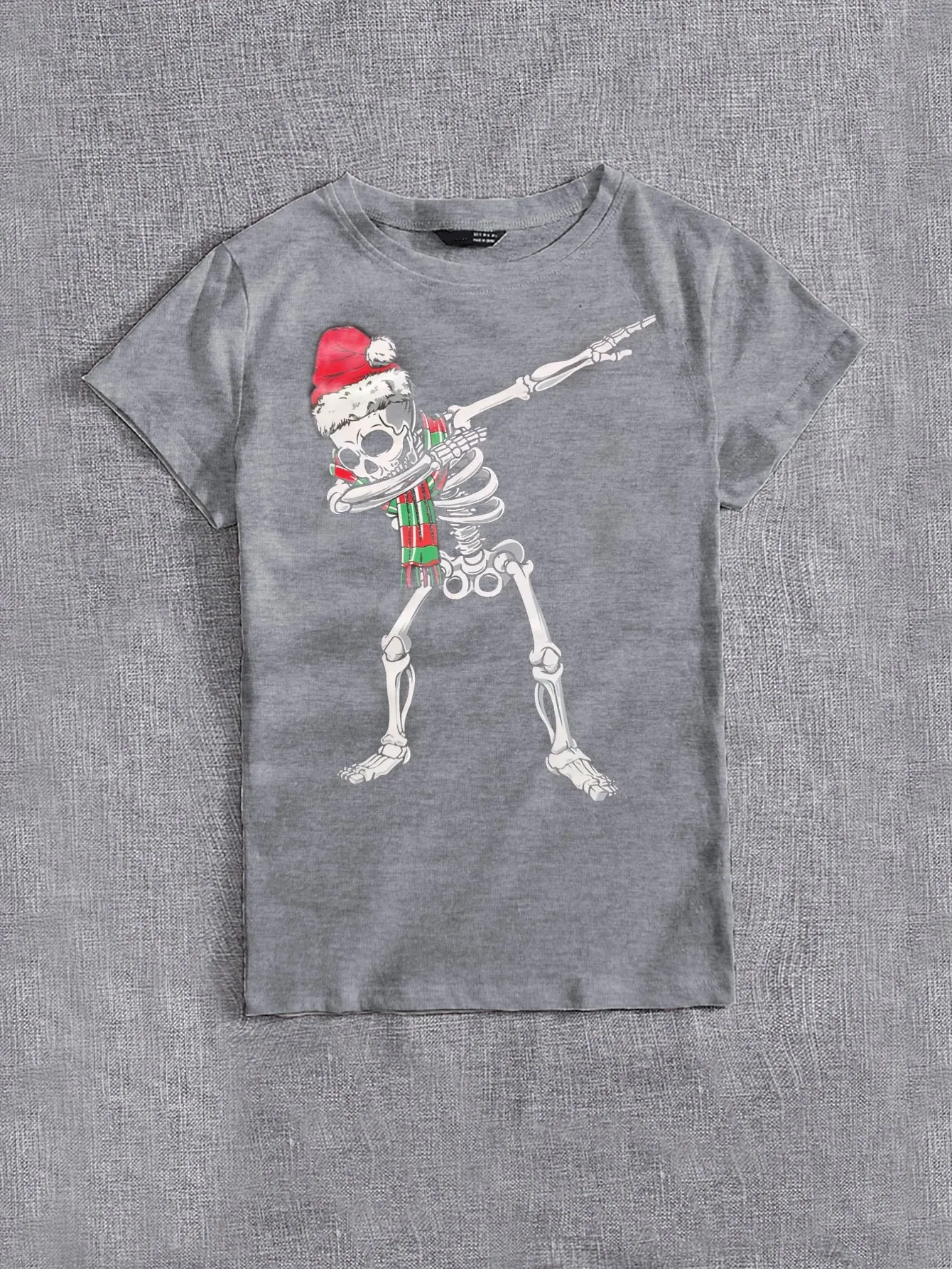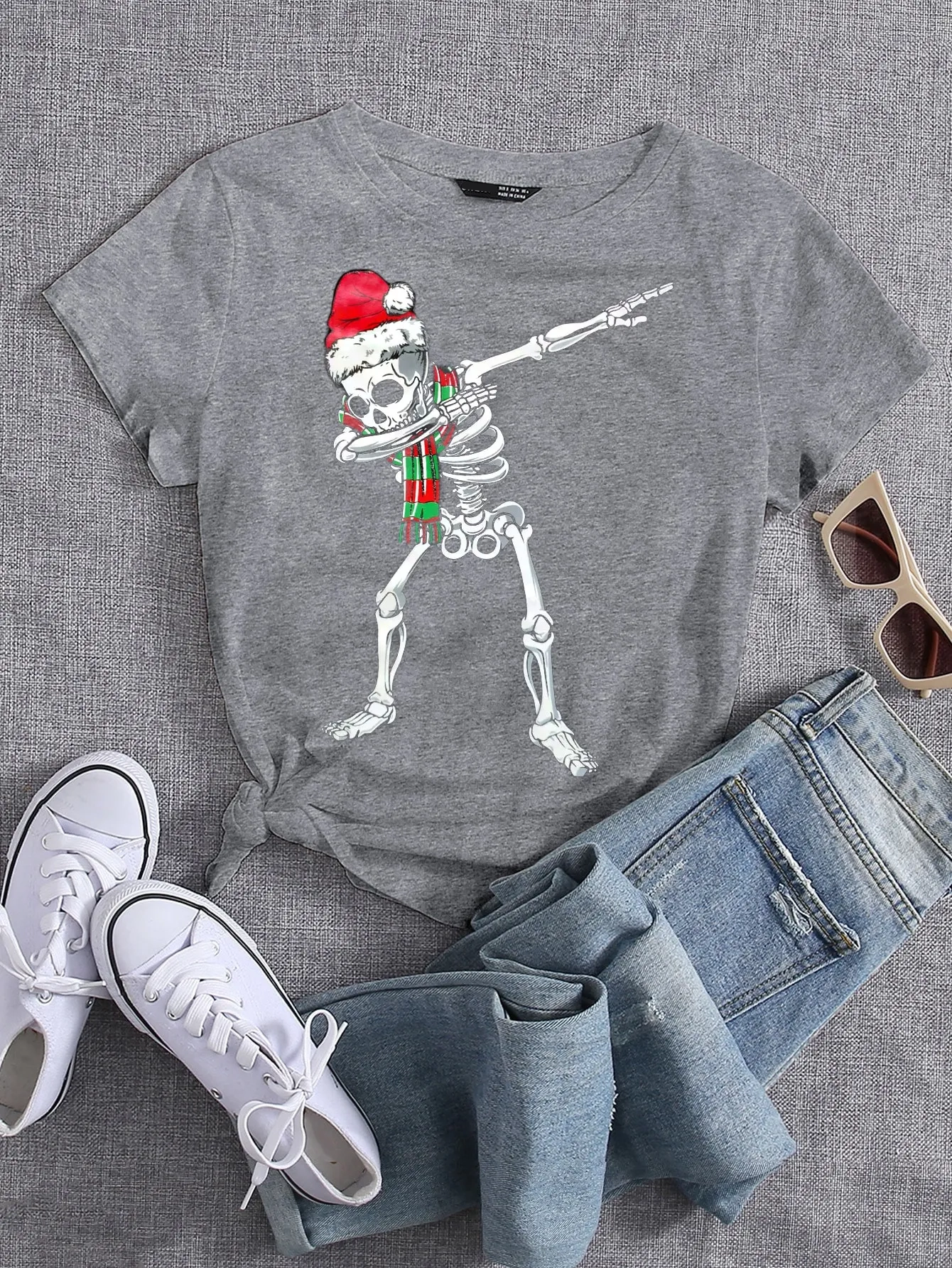 SMY Christmas Skull Pattern Casual Round Neck Simple Pattern Printed T-Shirt