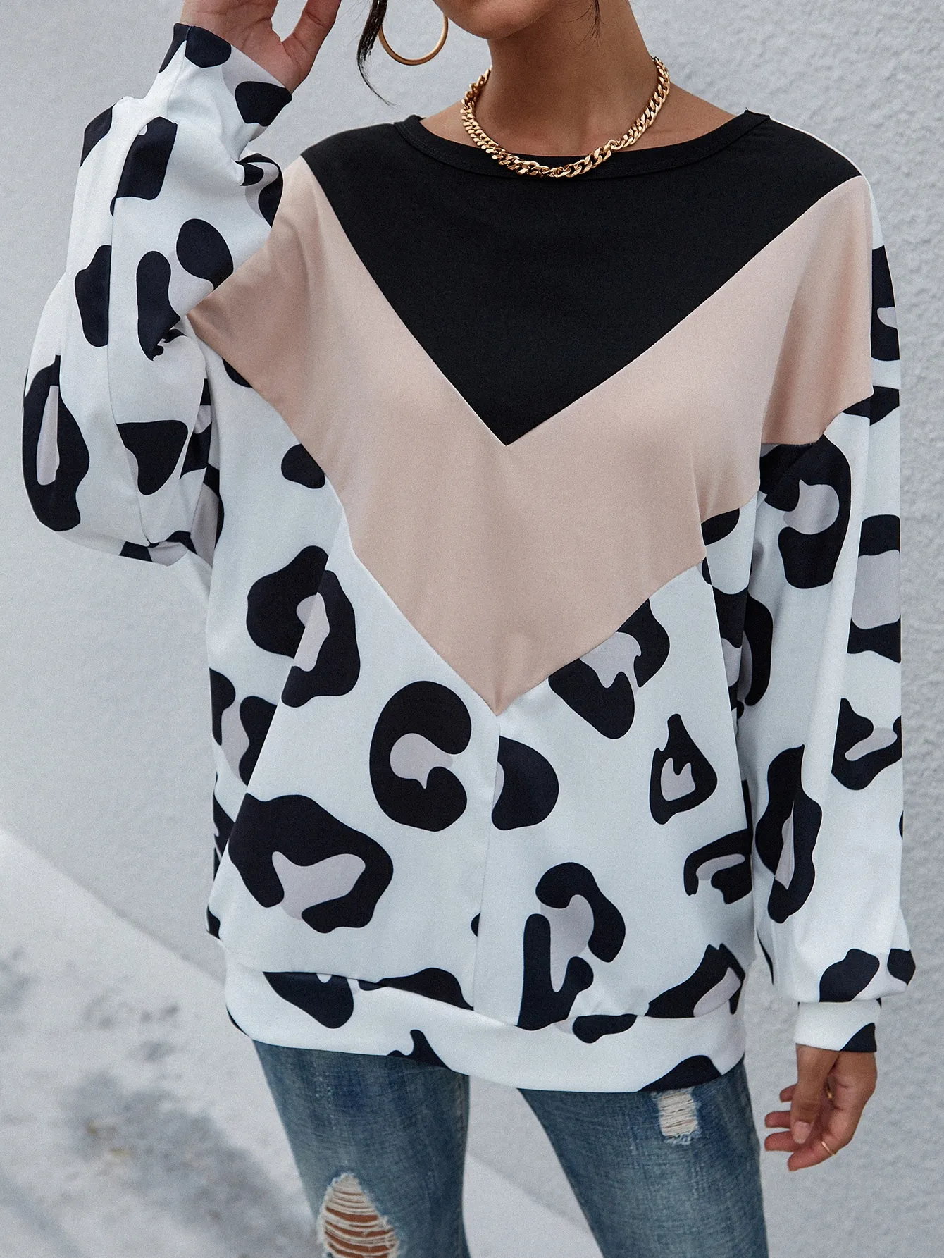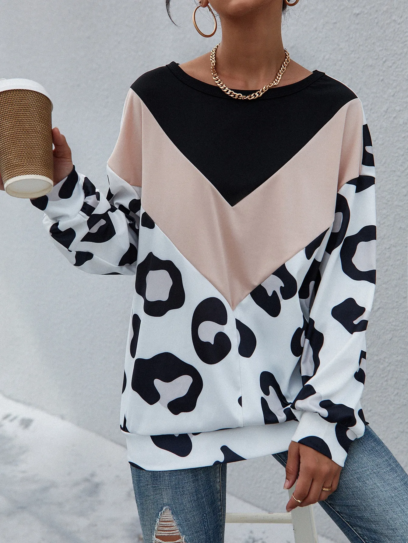 SMY Color Blocked Style Casual Round Neck Long Hoodie