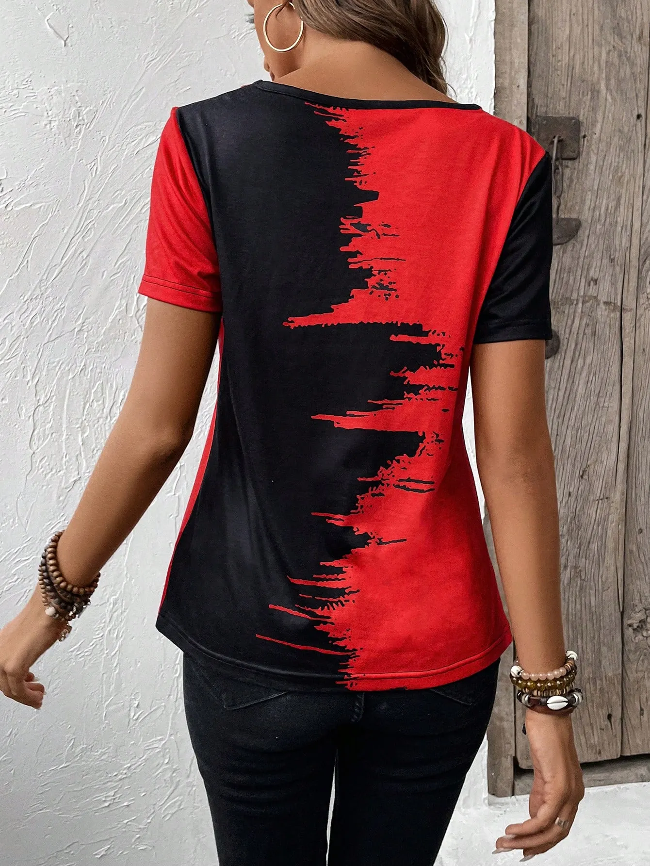 SMY Women’s V-neck Pleated Button Detail Casual T-shirt