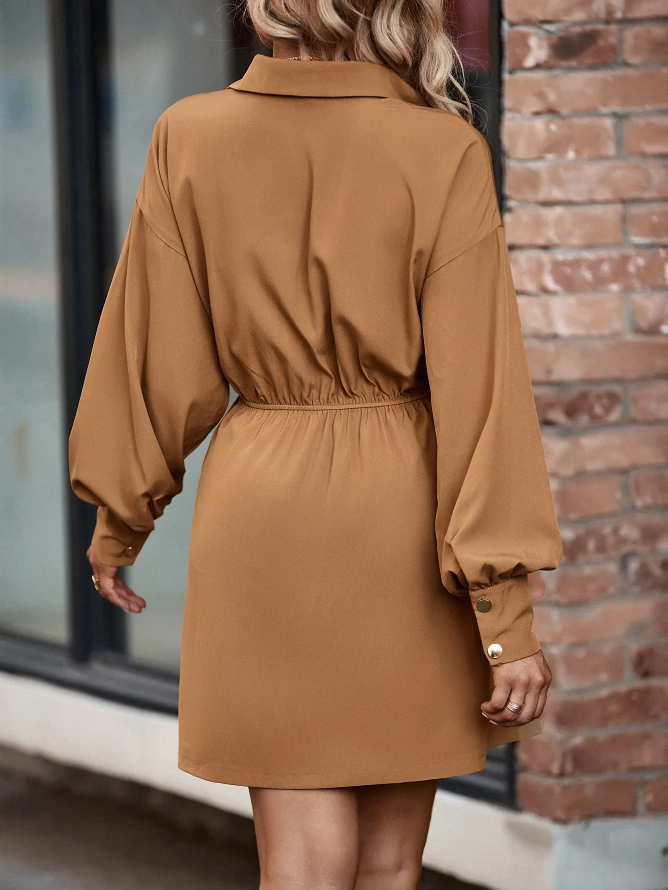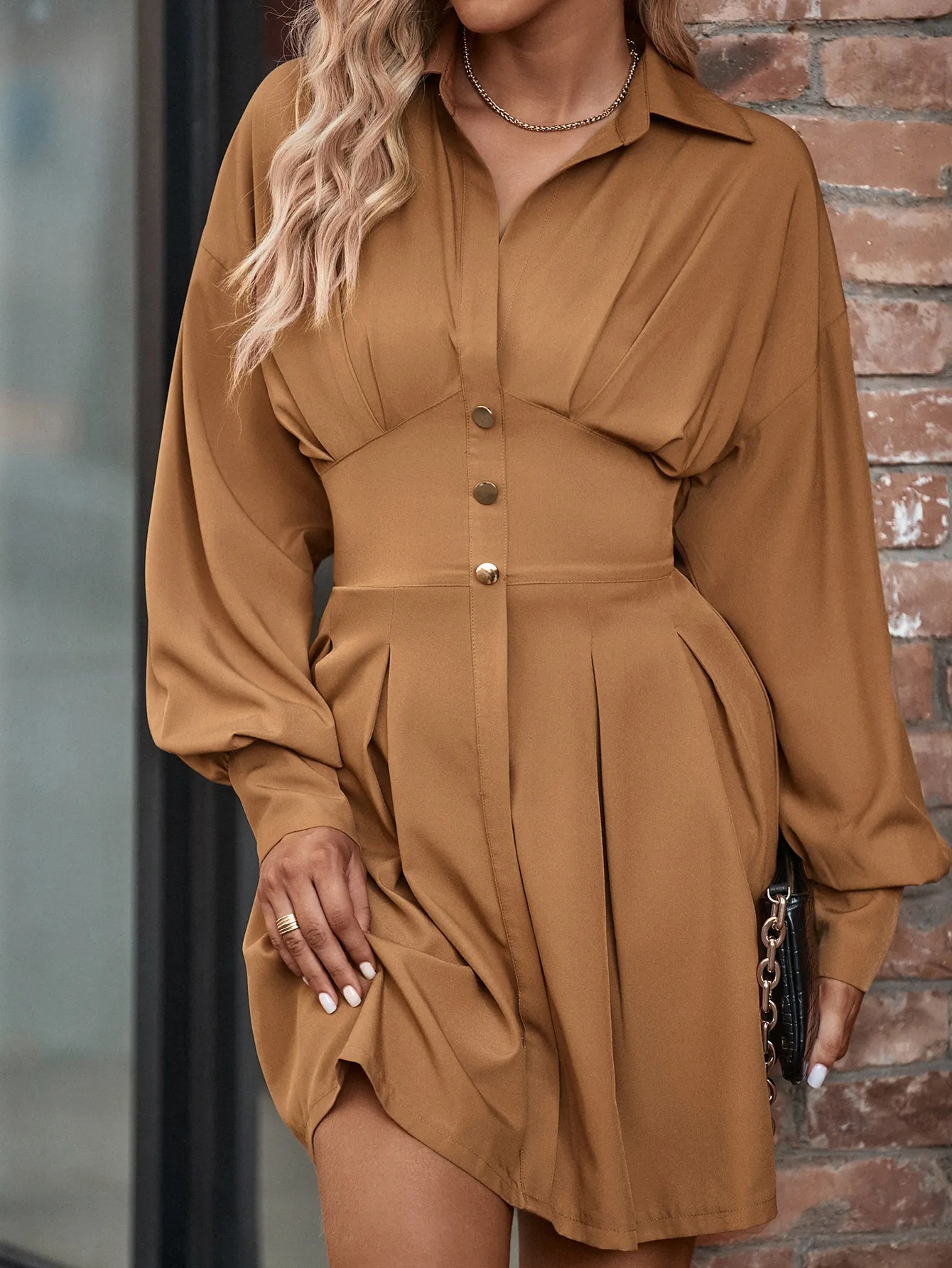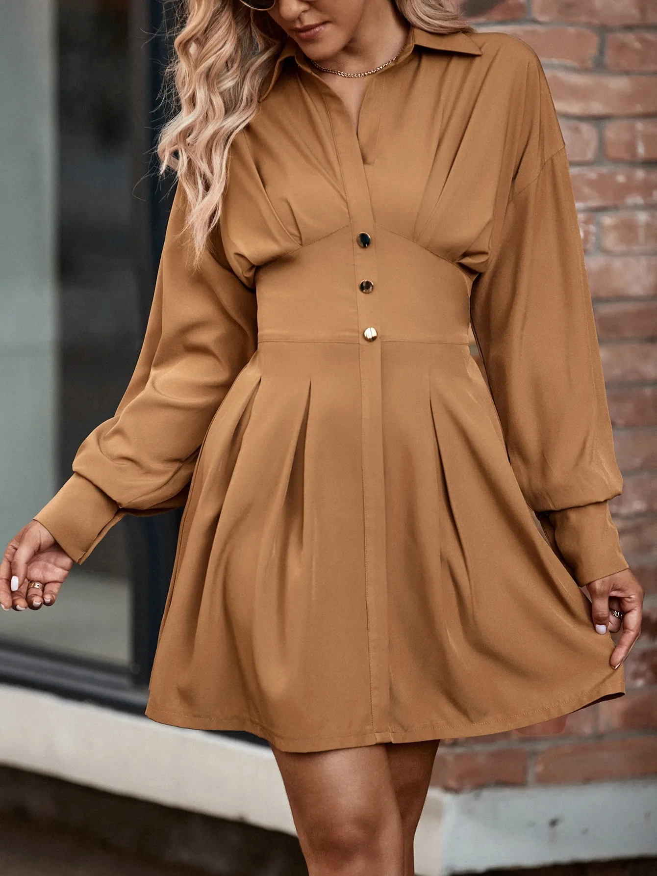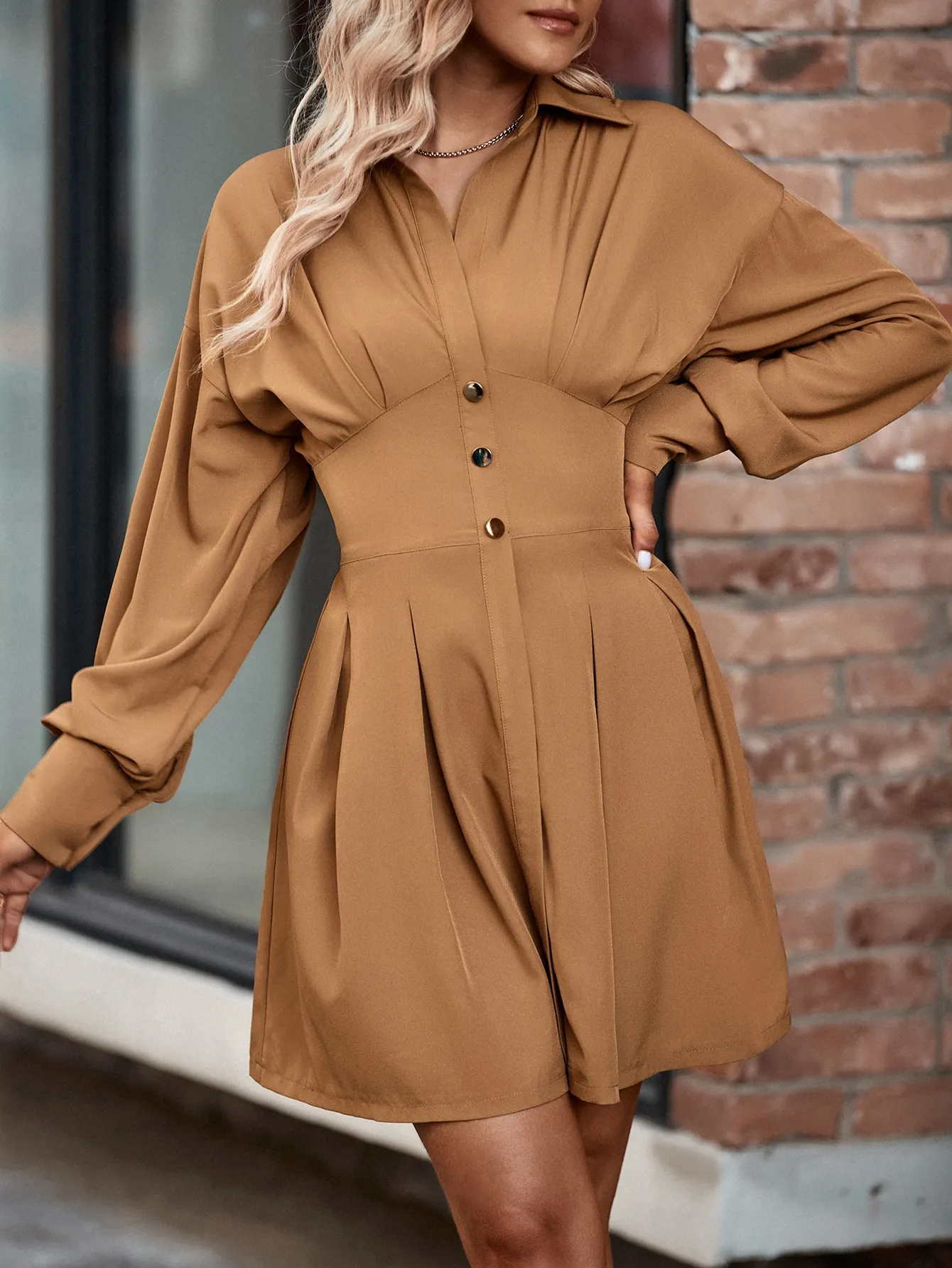 SMY Elegant Front Row Buckle Trend Lapel Dress