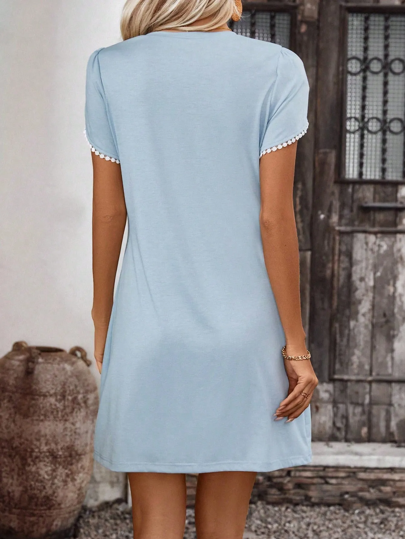 SMY Elegant Trend Lace Stitching Small Round Neck Women’s Dress