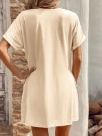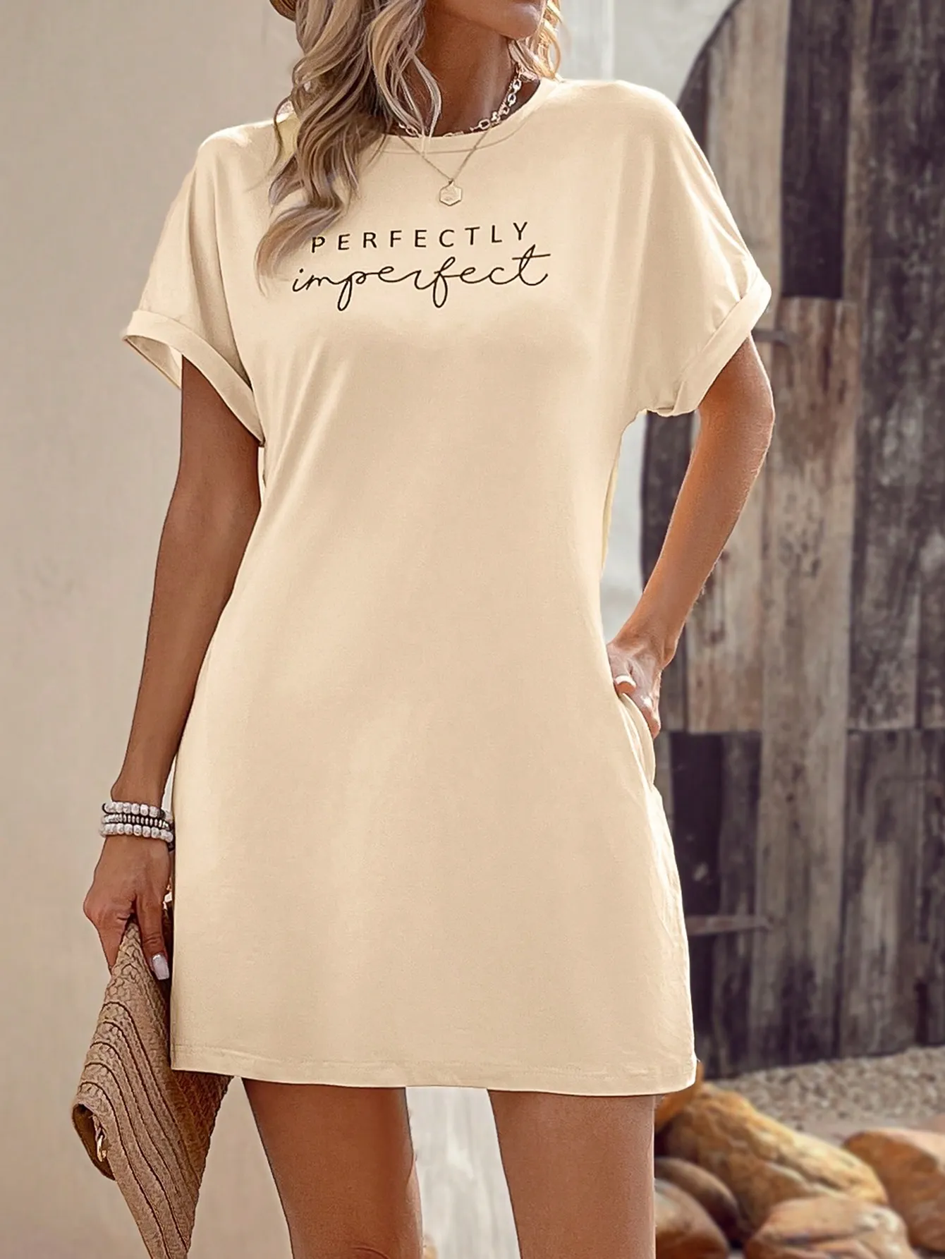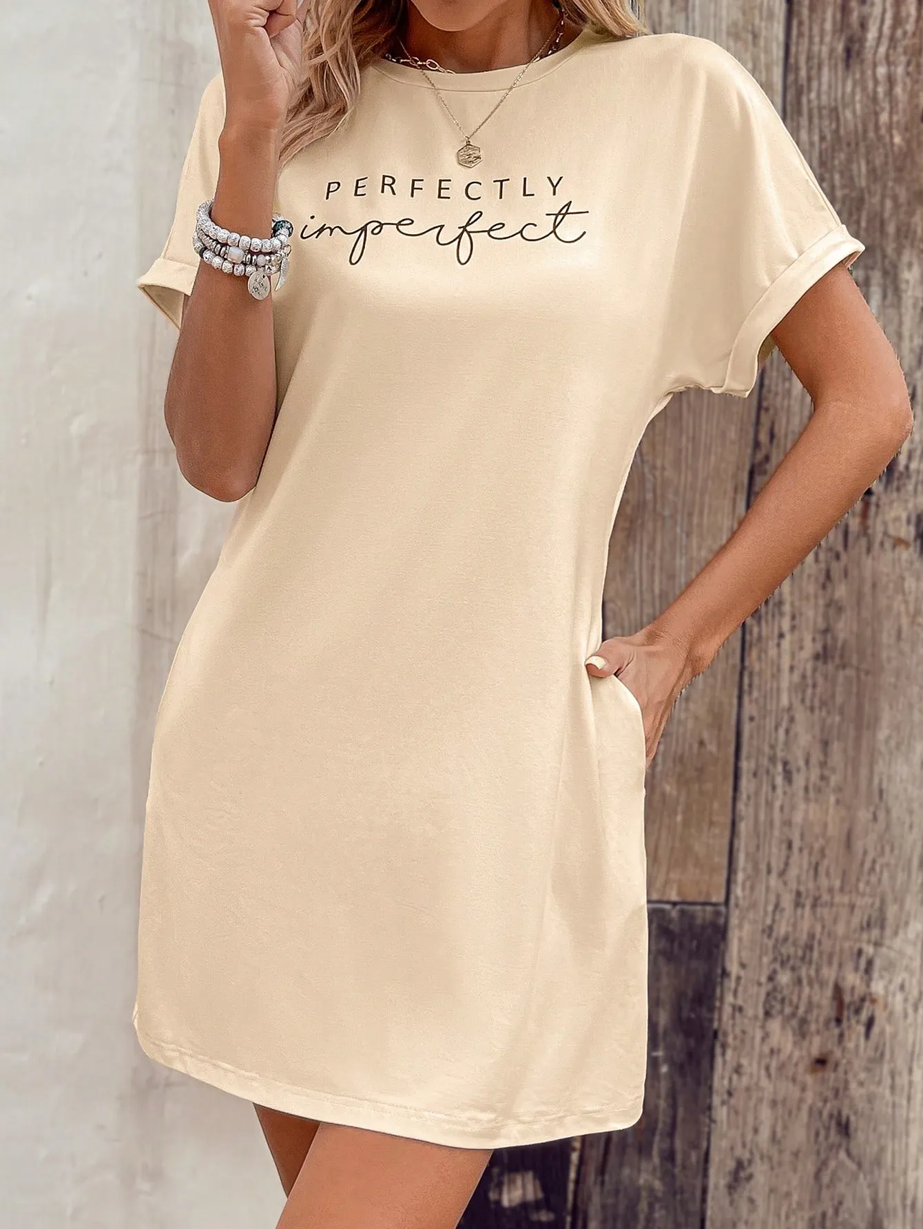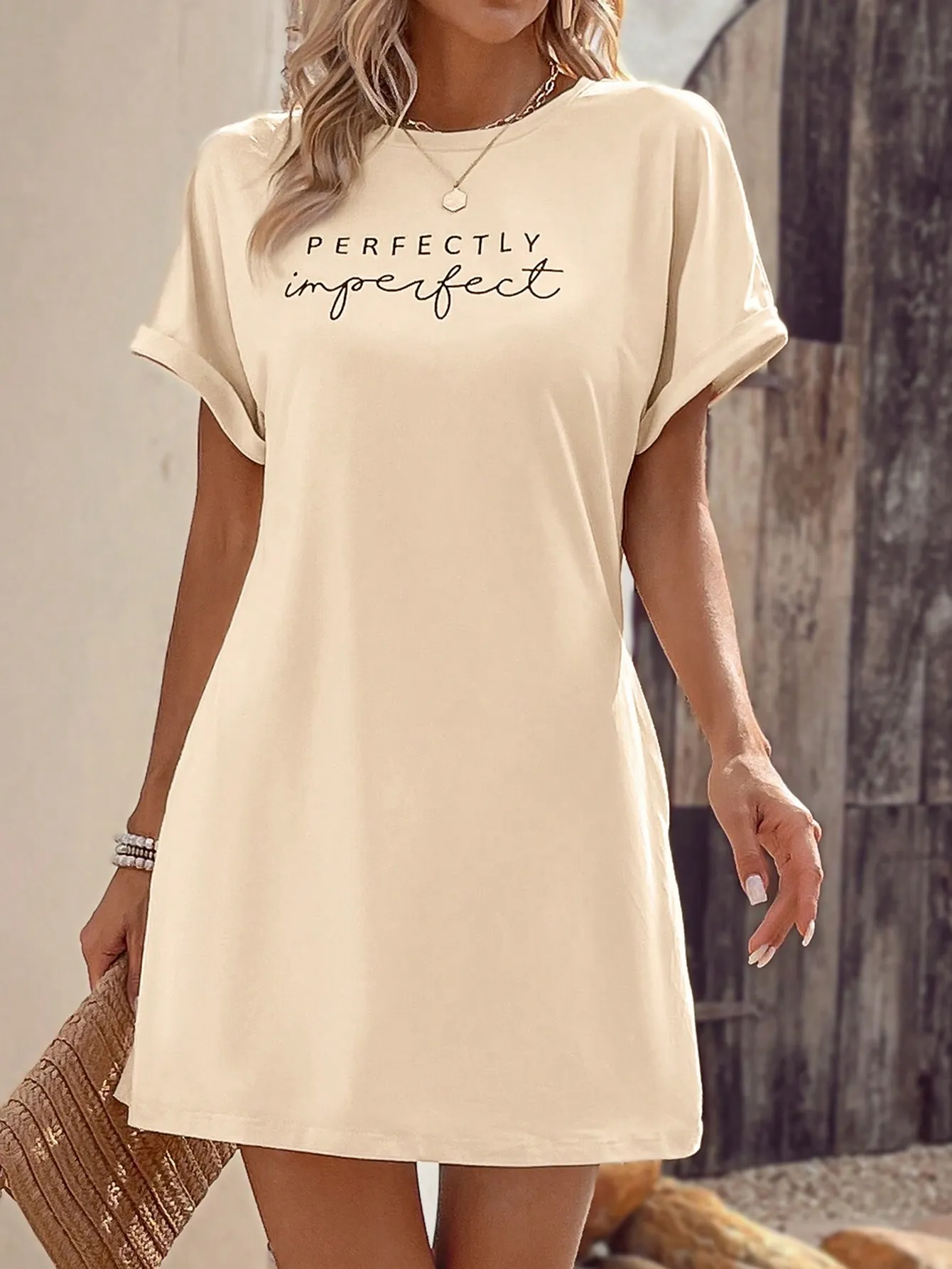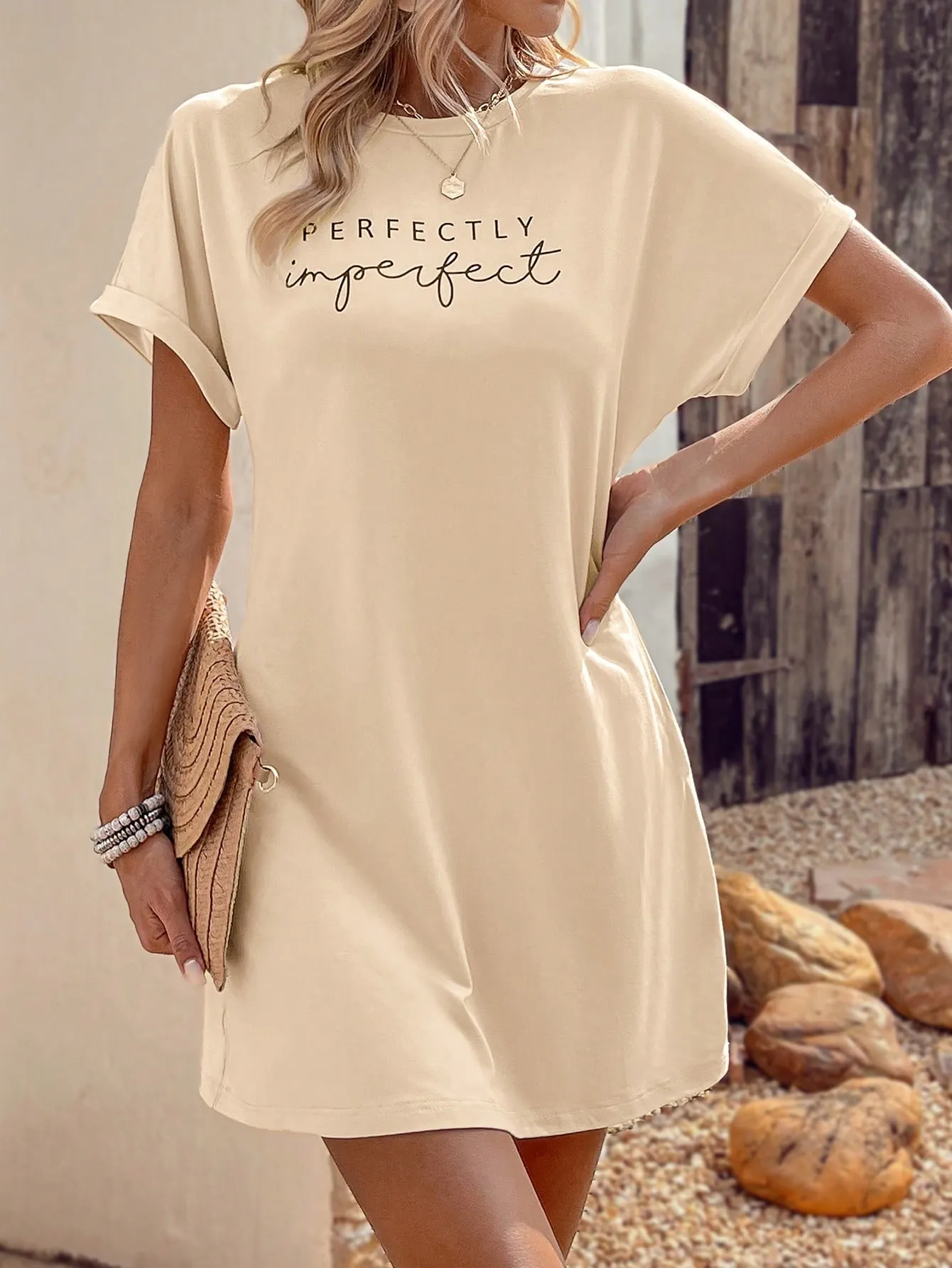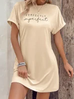 SMY Elegant Trend Letter Printing Imperfect Small Round Neck Women’S Dress