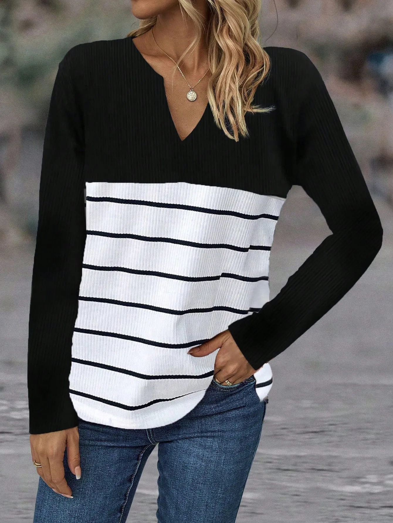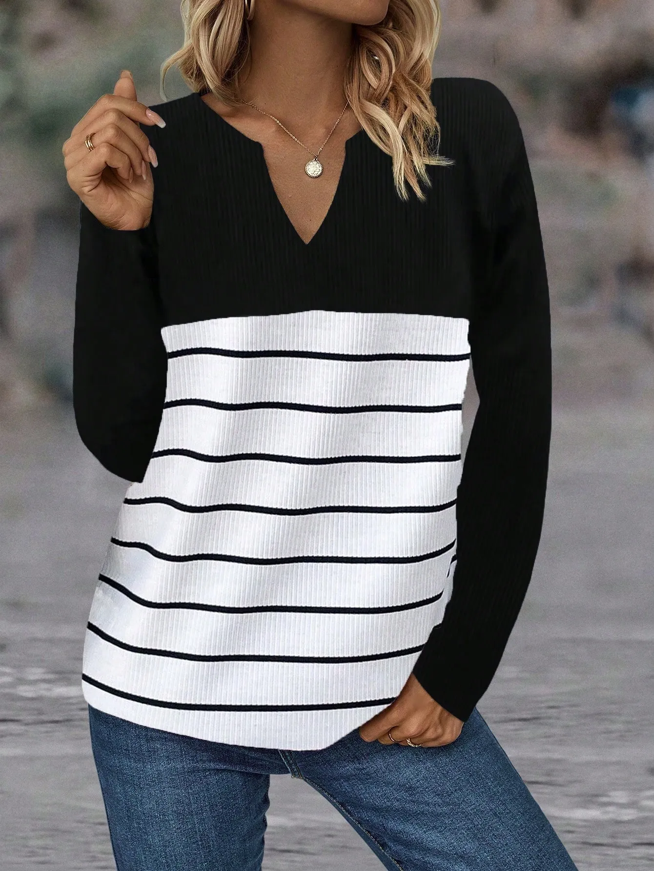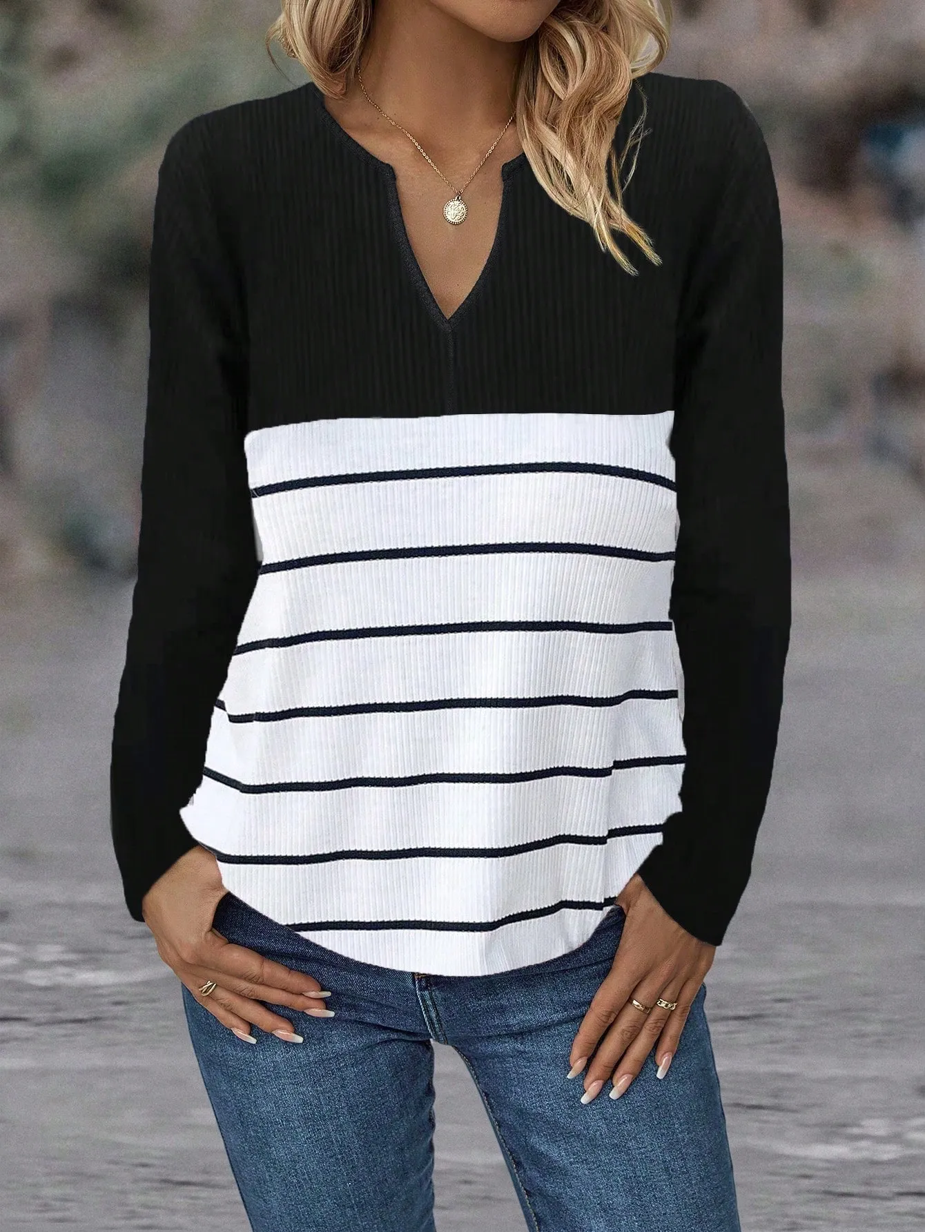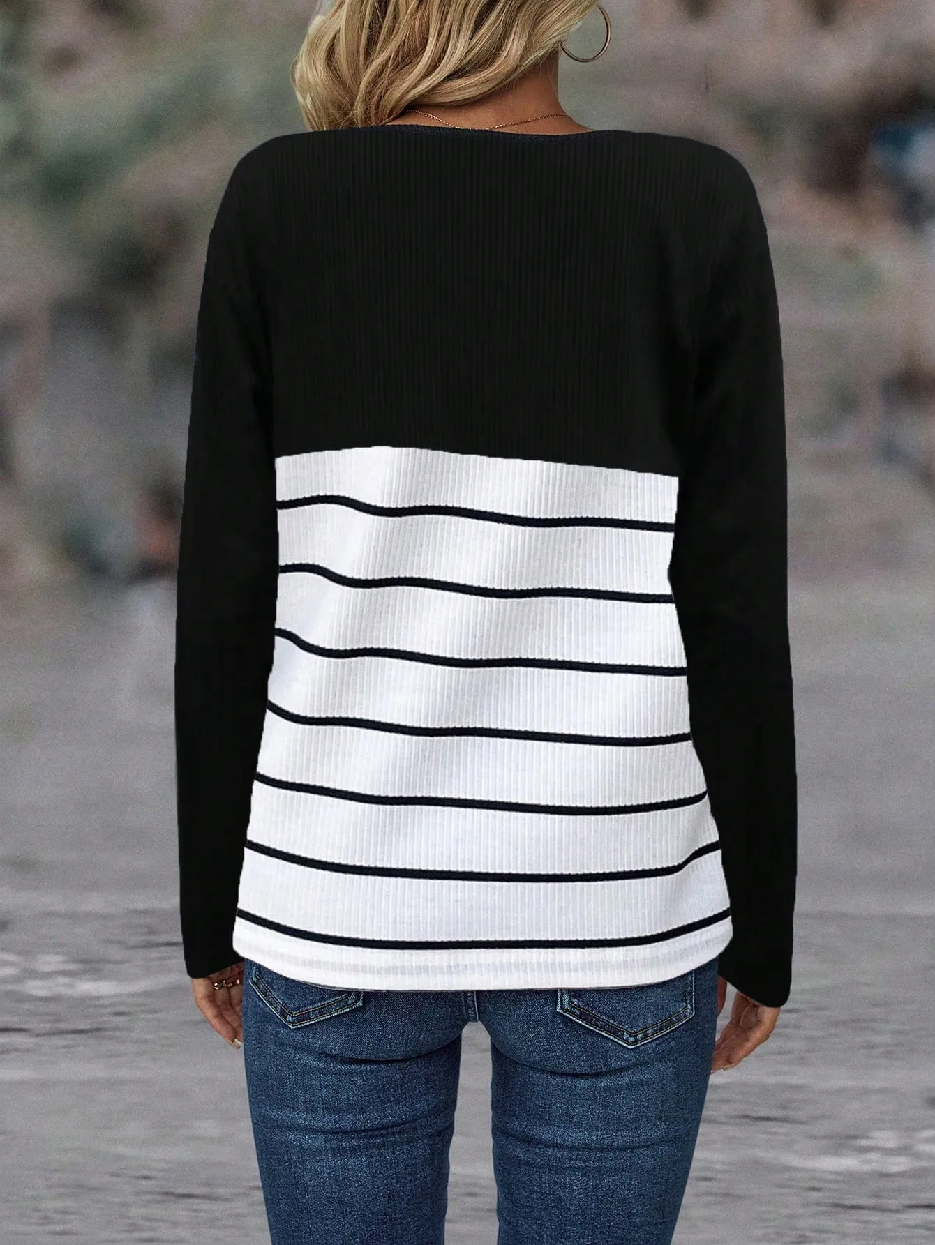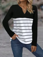 Tags: 2025 S/F, Casual Style, Daily Essentials, Elegant Fashion, Long Sleeve Tops, S/F, Stripe Print, Tops, Work Outfits