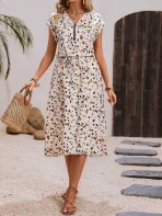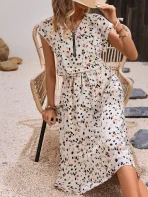SMY Frenchy Women’s Fitted Elegant A-Line All-Over Ditsy Floral Dress