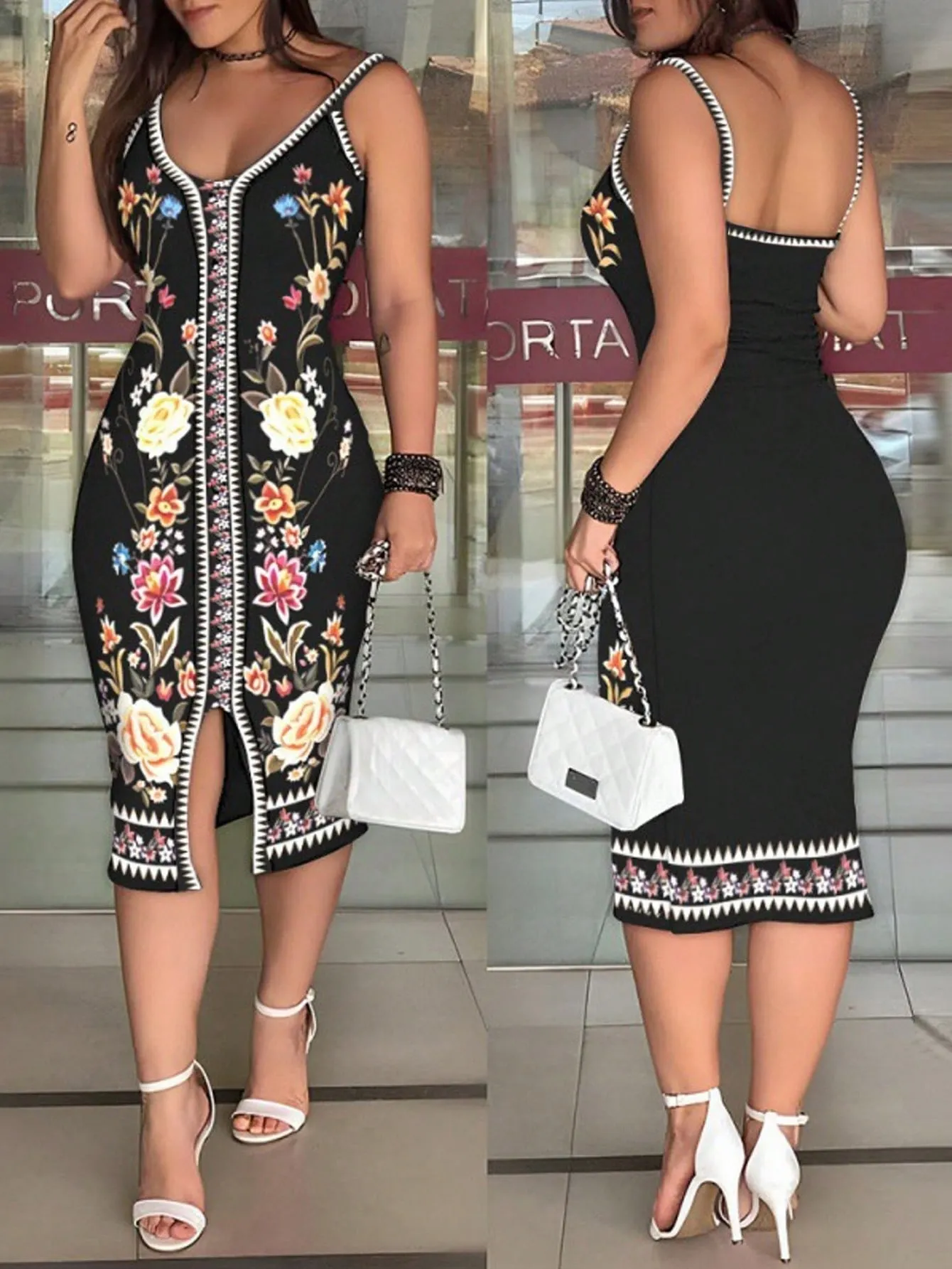 SMY Elegant Trend Thin Shoulder Strap Women’S Slim Fit Flat Ethnic Style Flower Suspender Knitted Dress