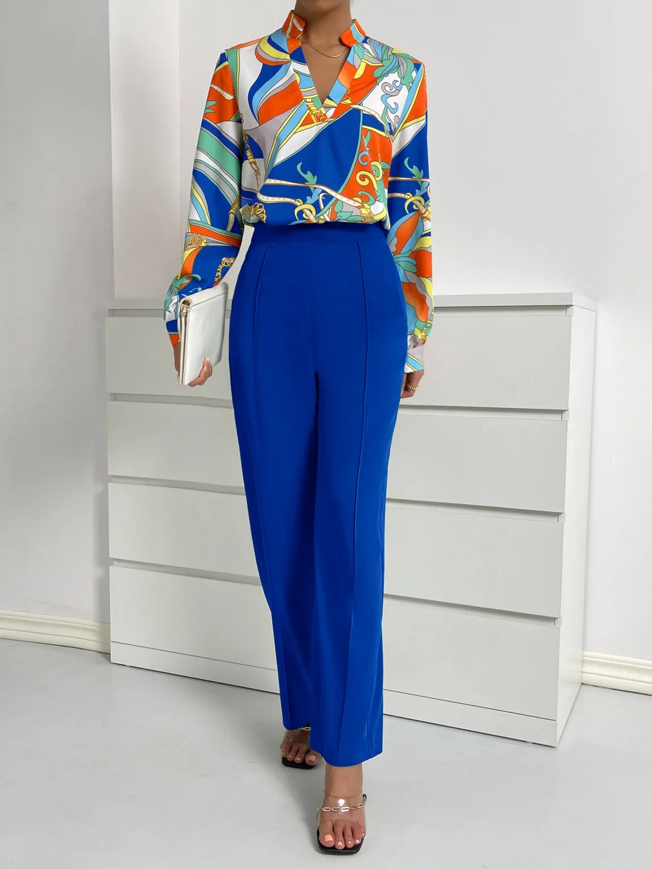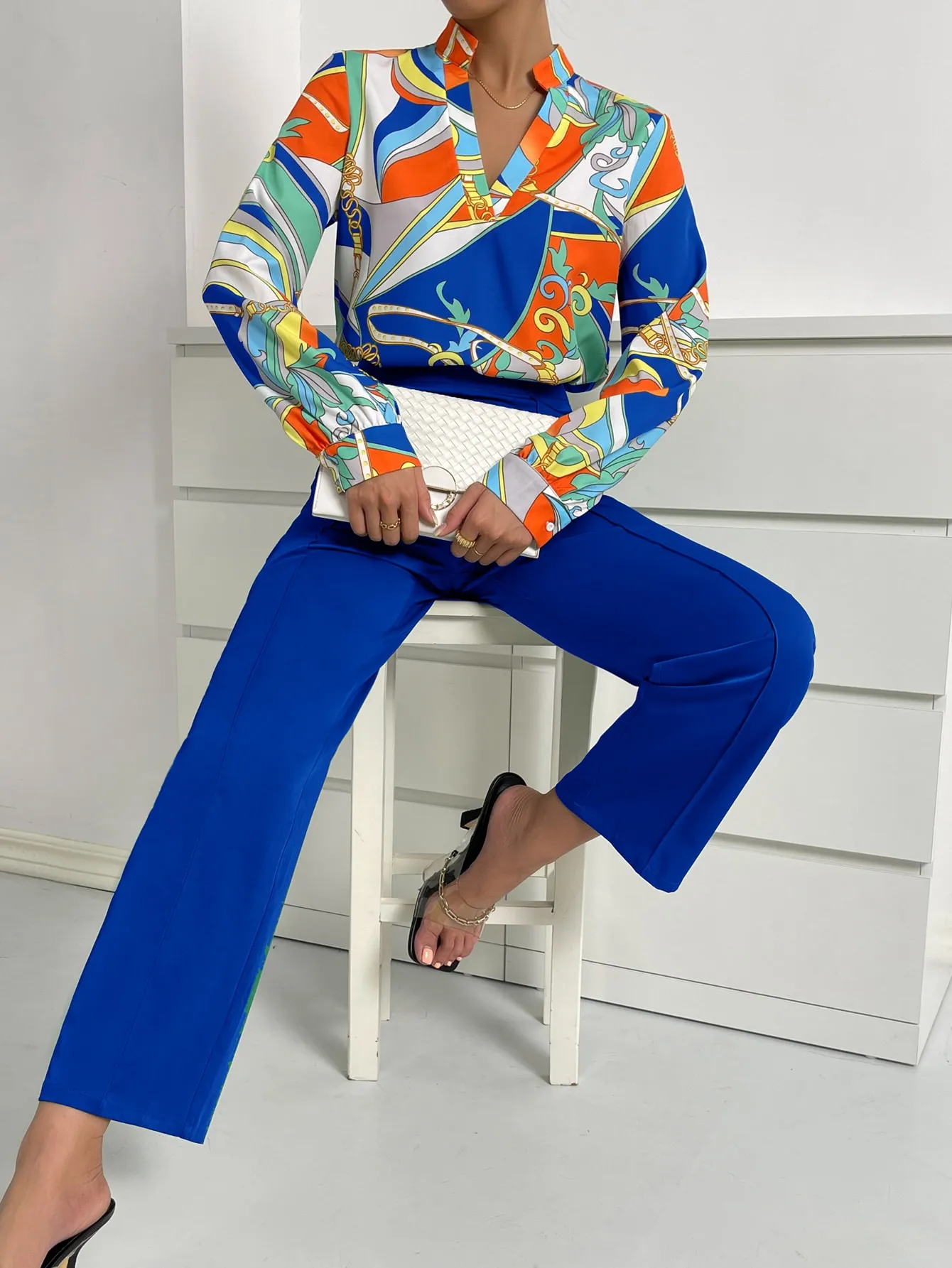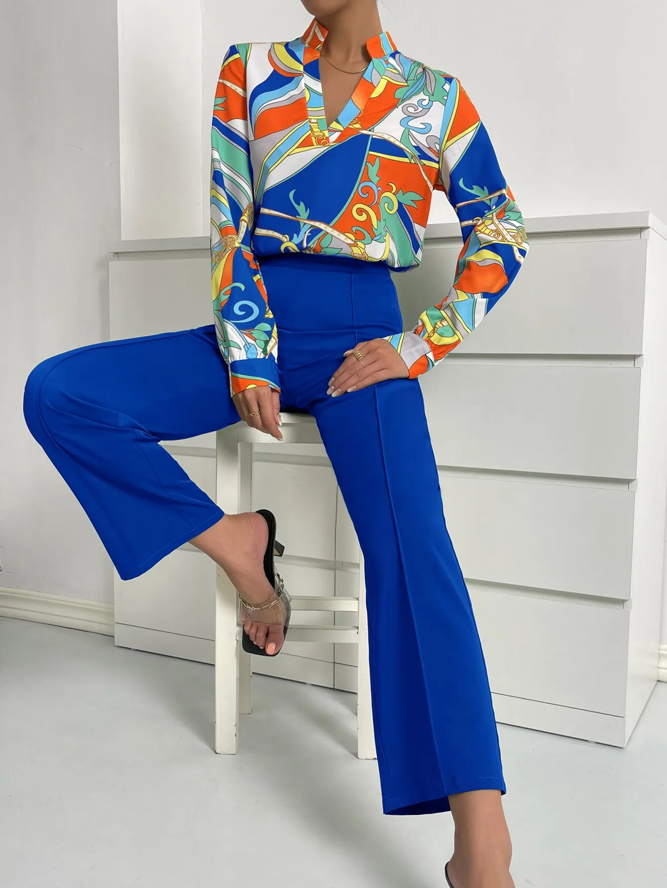 SMY Elegant Trendy Gap V-Neck Women’s Two Piece Set