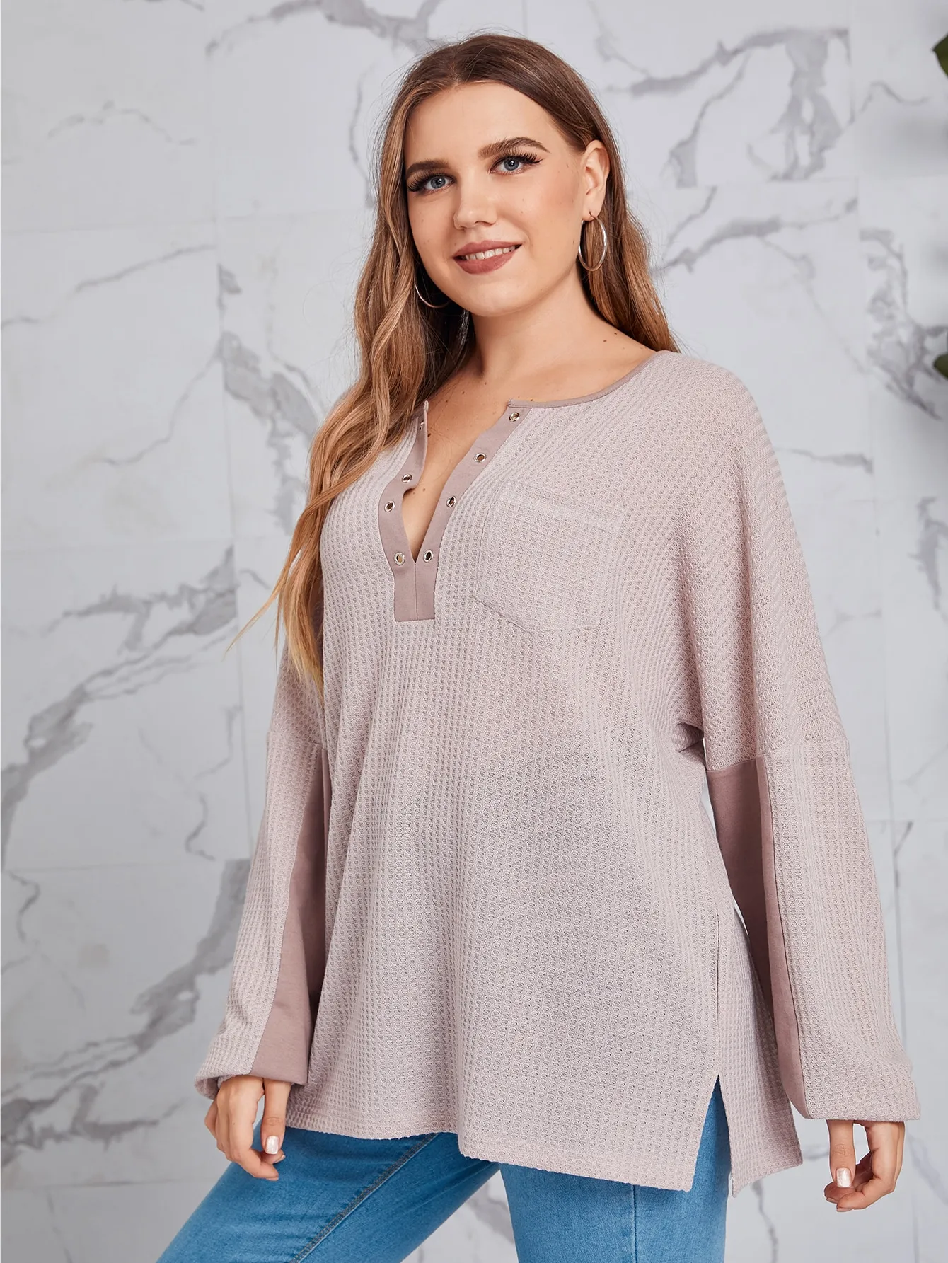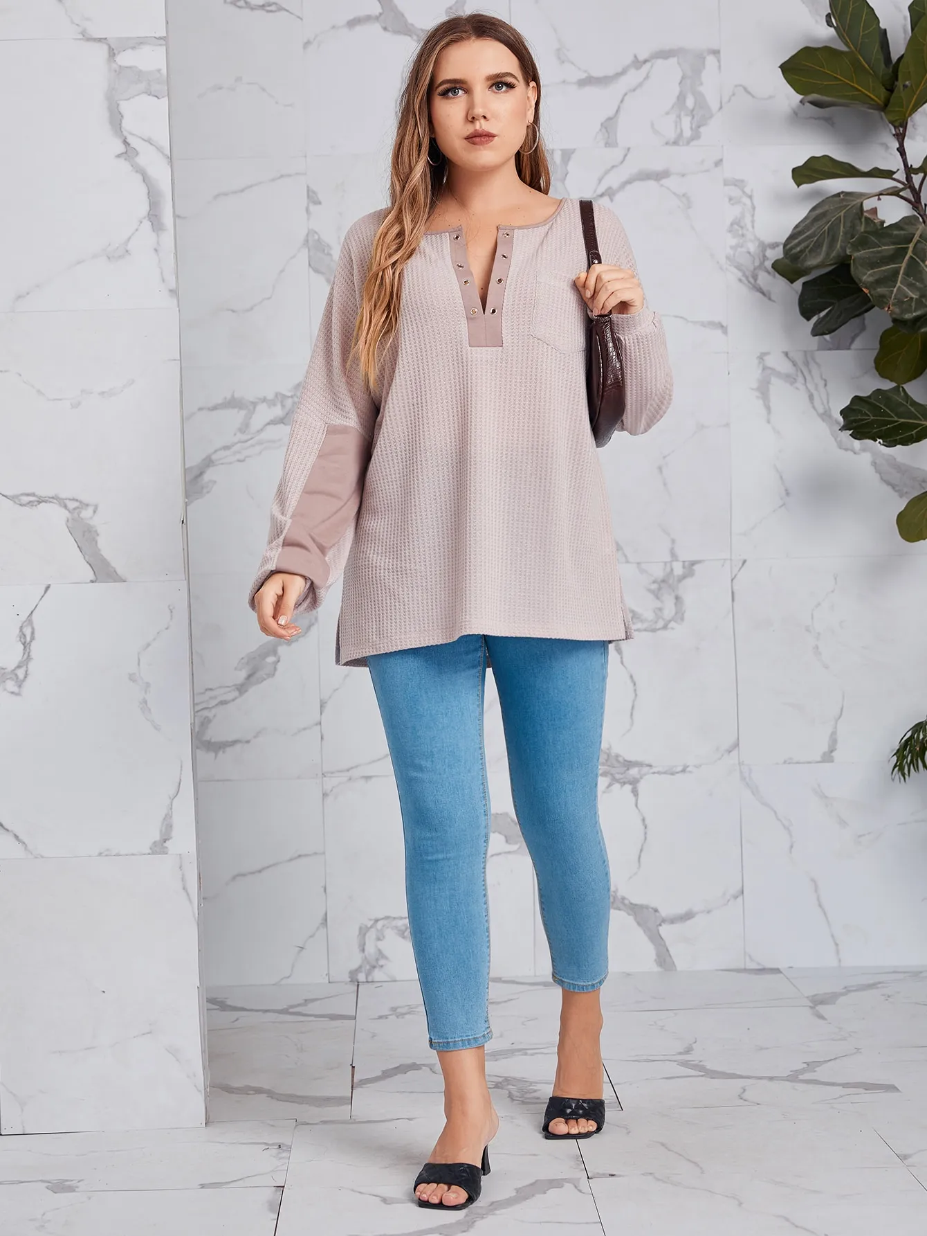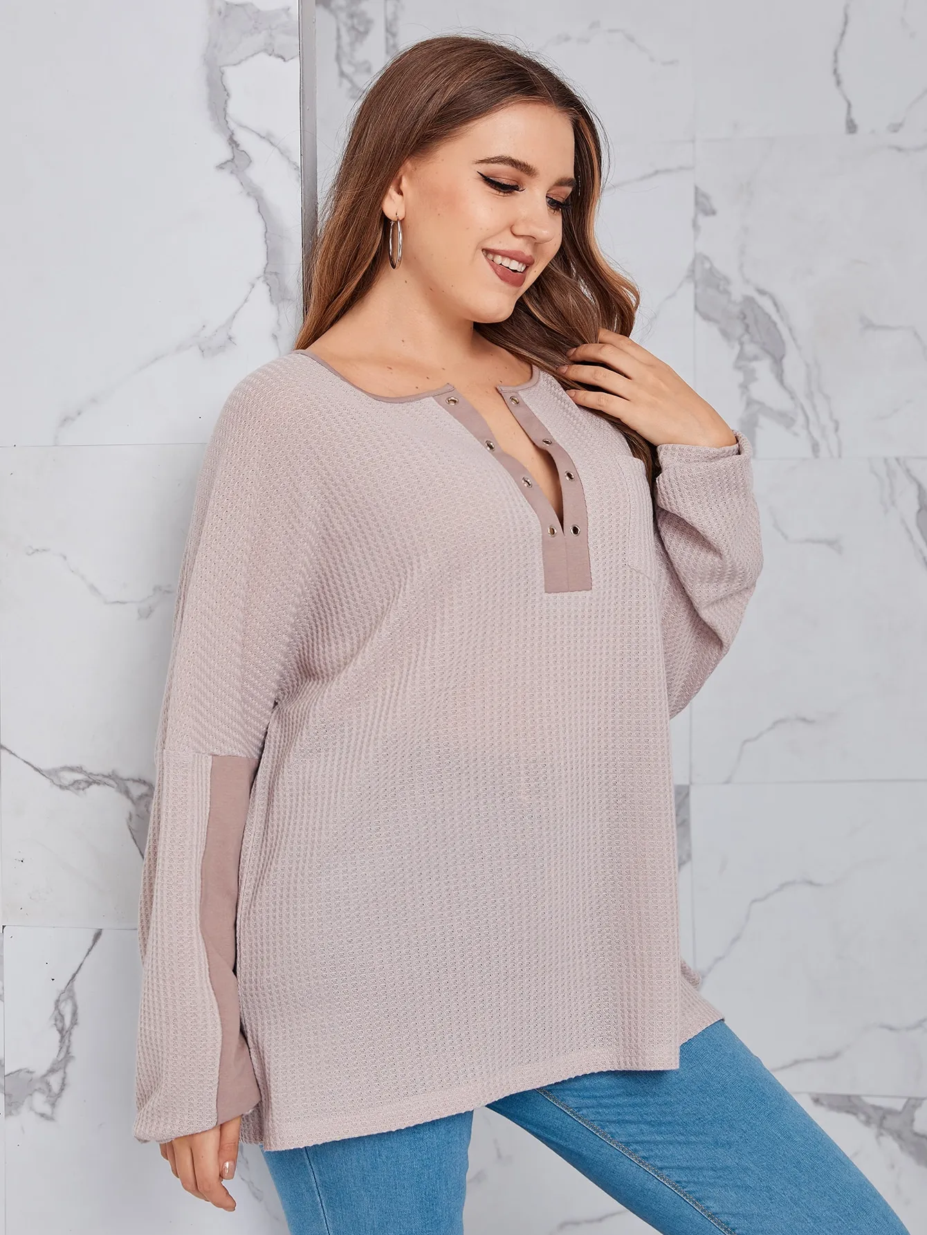 SMY Gap V-Neck Clean Color Plus Size T-Shirt