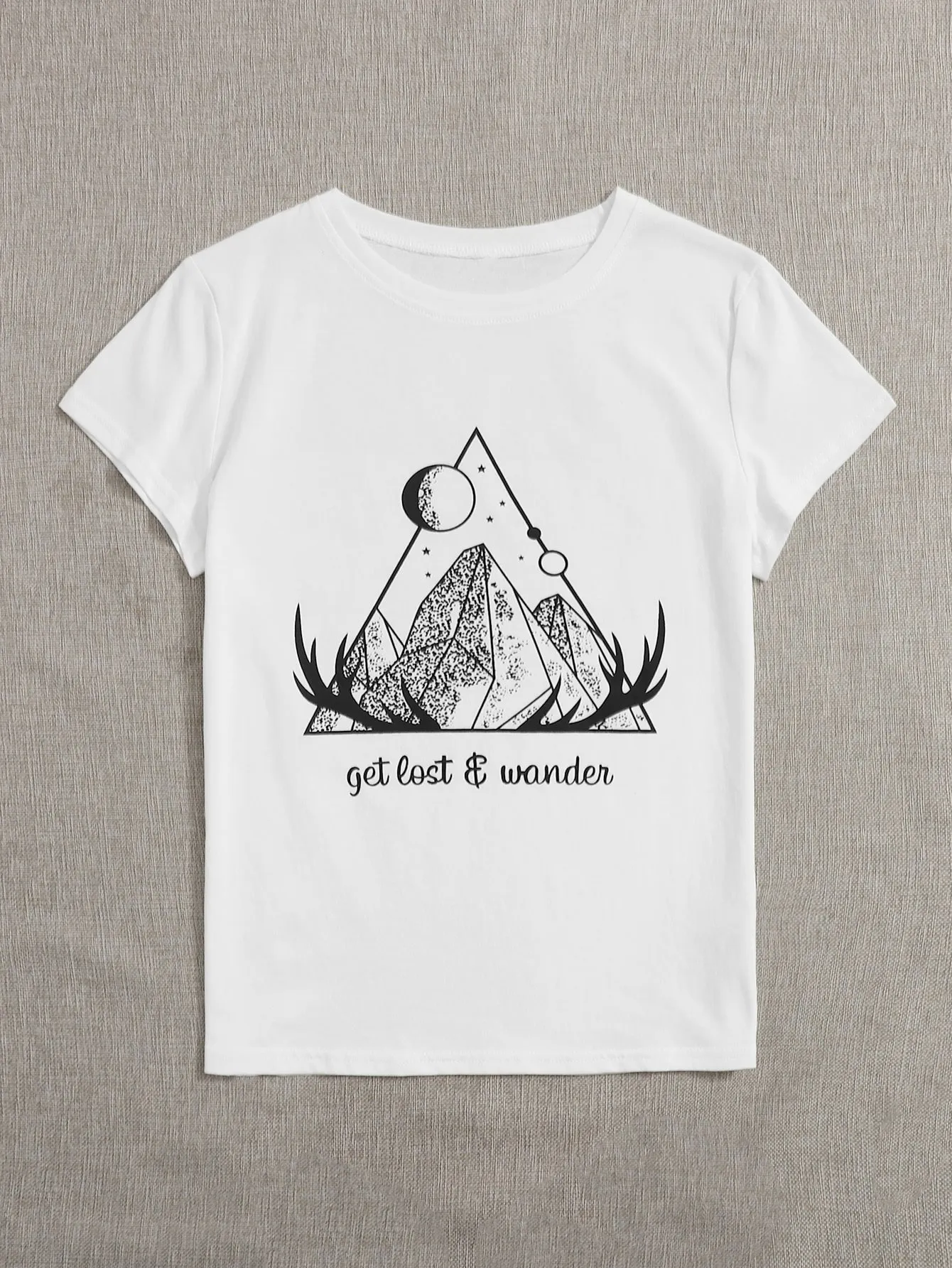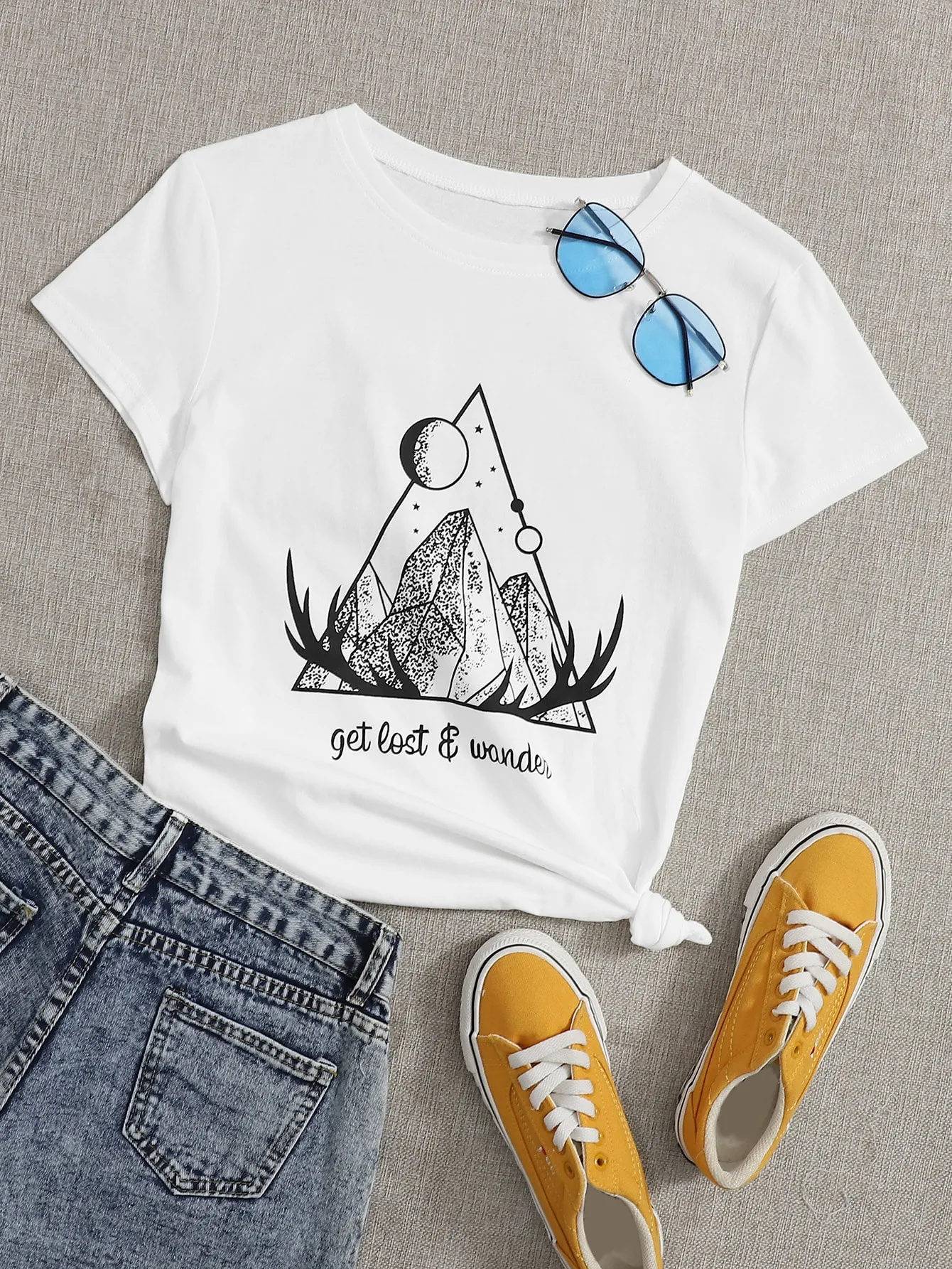 SMY Get Lost And Wander Pattern Small Round Neck Simple Pattern T-Shirt